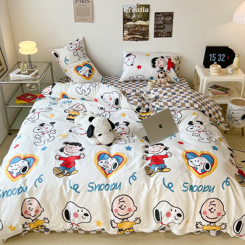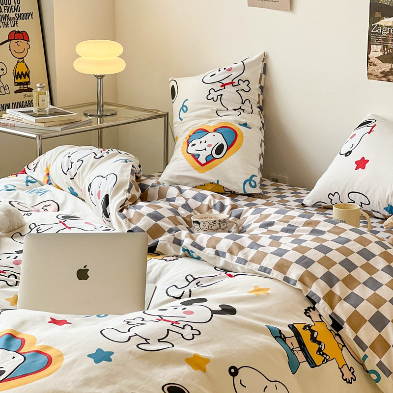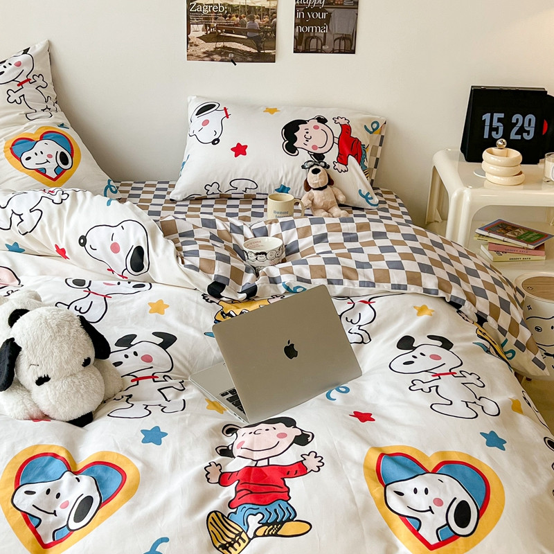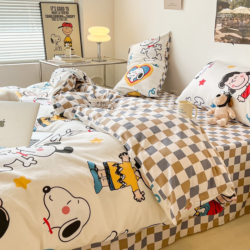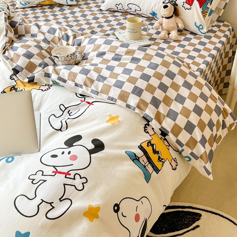 昔可家纺2022新款正版授权史努比全棉四件套 小玩伴白