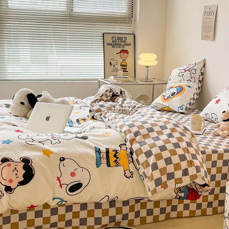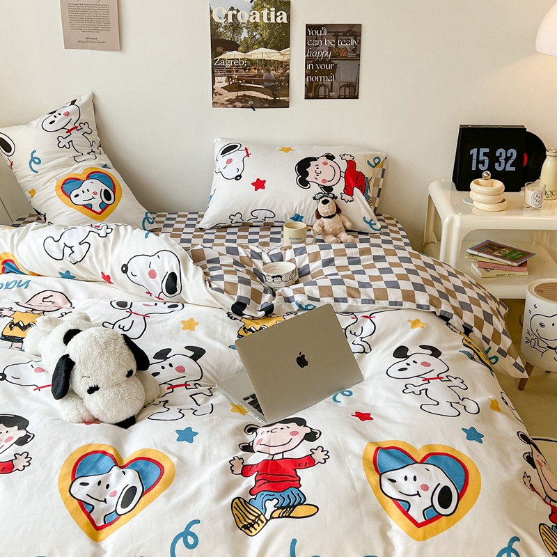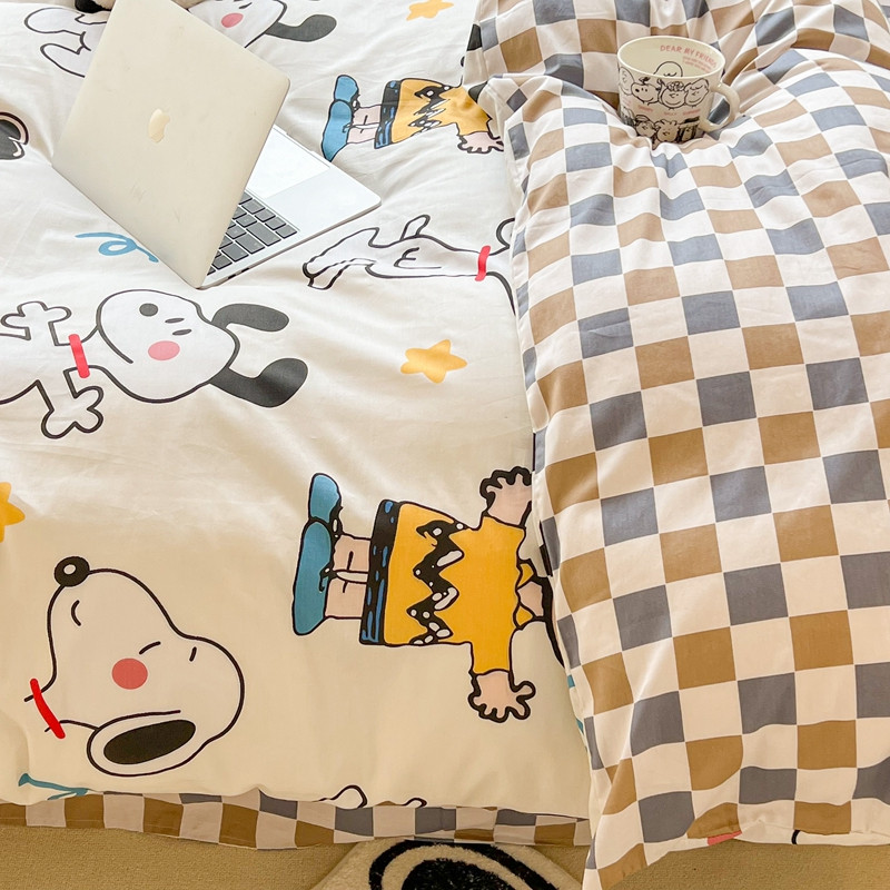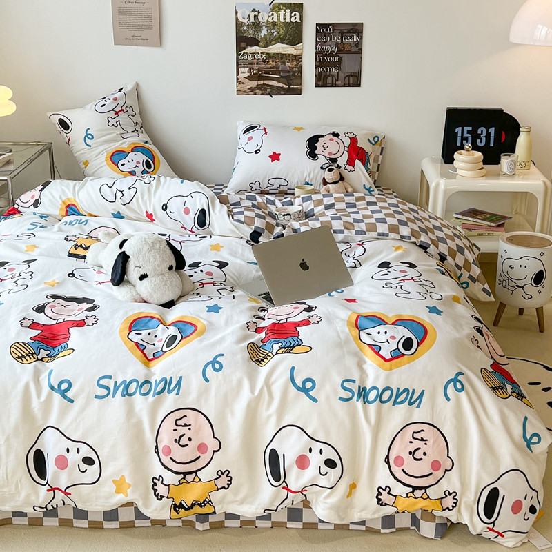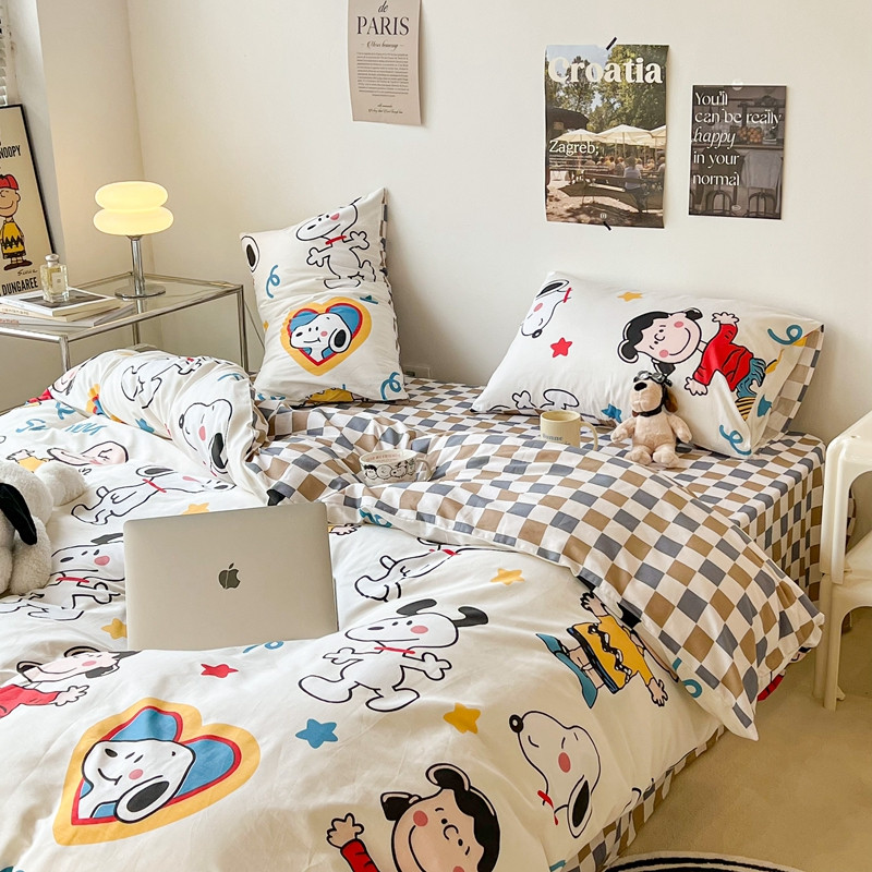 昔可家纺2022新款正版授权史努比全棉四件套 小玩伴白