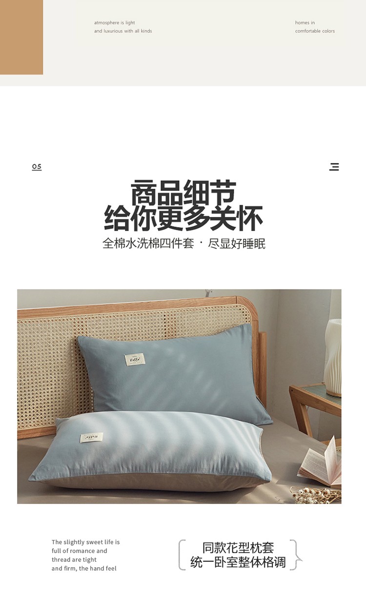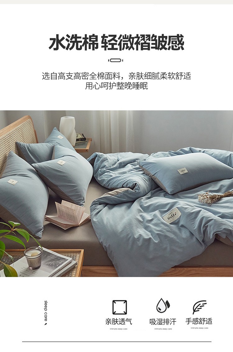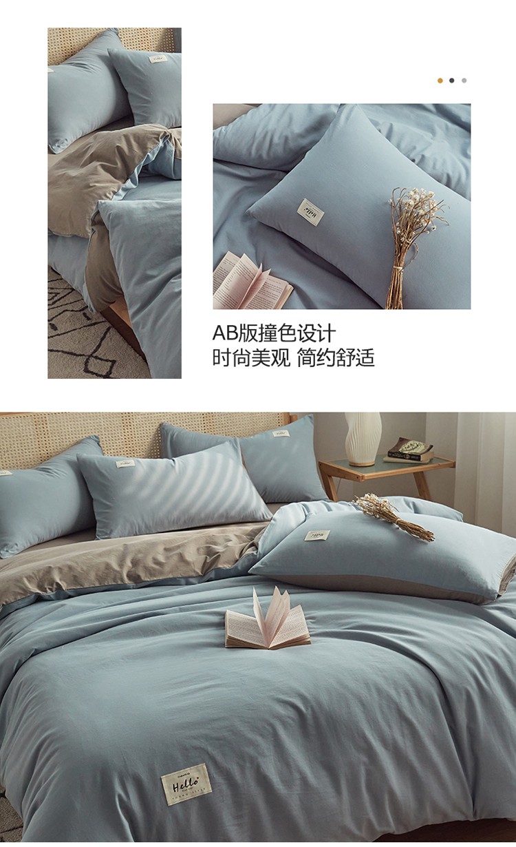 当前位置: 91家纺网 > 商品网购 > 床品套件 > 四件套 > 水洗棉四件套 > ab家纺 2022新款全棉水洗棉四件套(格子+素色) 浅蓝灰