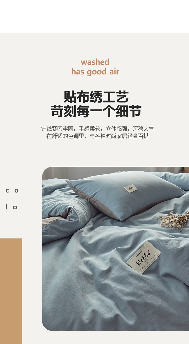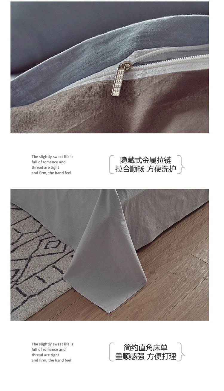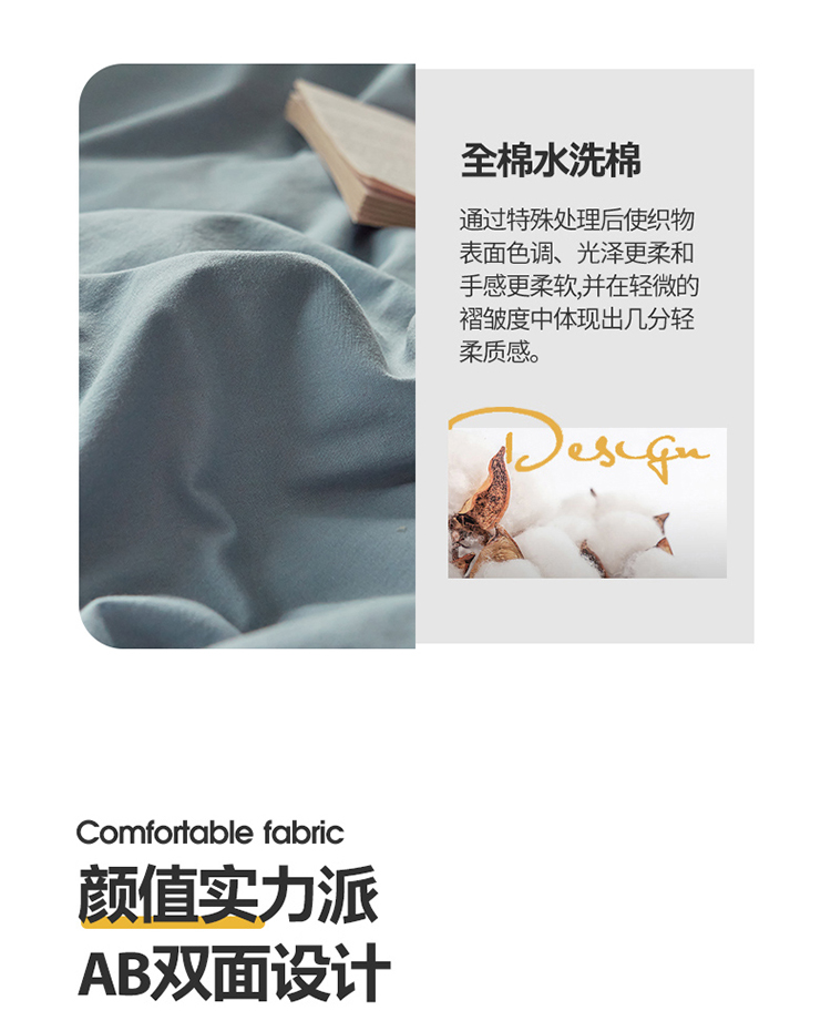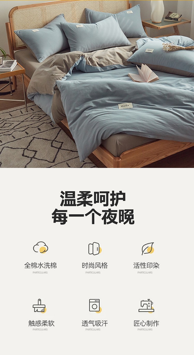 当前位置: 91家纺网 > 商品网购 > 床品套件 > 四件套 > 水洗棉四件套 > ab家纺 2022新款全棉水洗棉四件套(格子+素色) 浅蓝灰