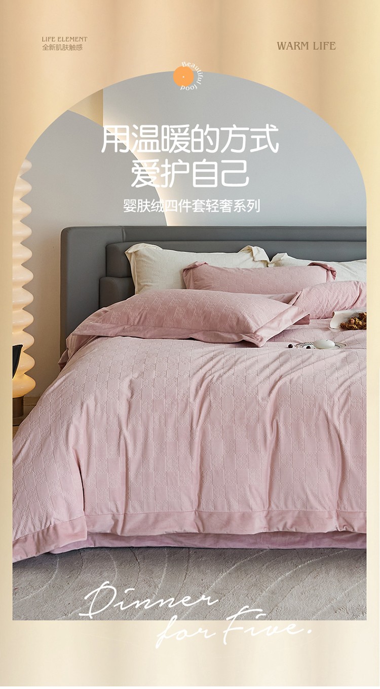 商品名称:名品优仓2022新款婴肤绒轻奢系列四件套-布加迪 爱恋粉