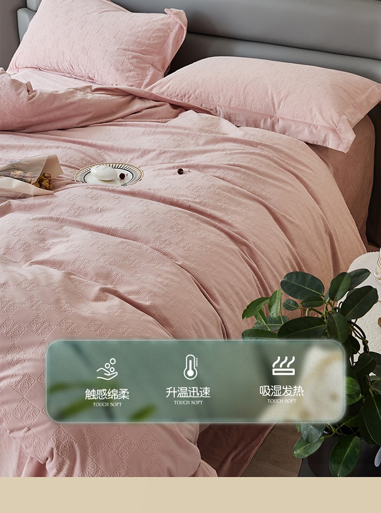 (总)名品优仓2023款水洗棉三层纱提花四件套-狡花系列,狡花白,狡花豆粉,狡花黄,狡花蓝色,狡花绿,狡花少女粉