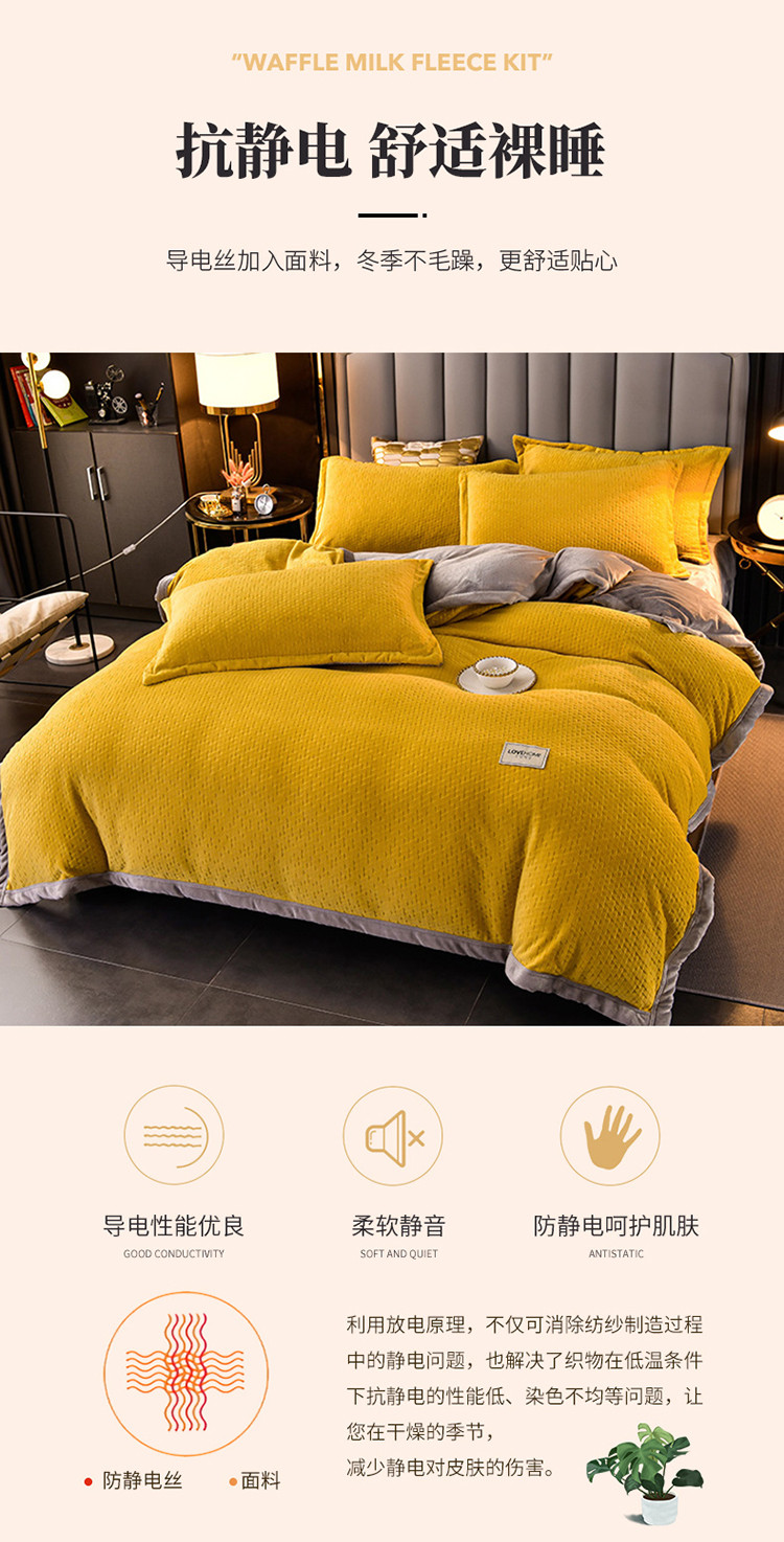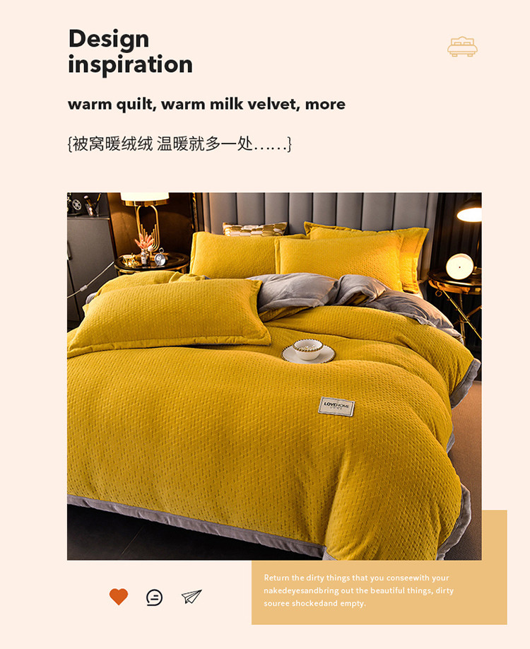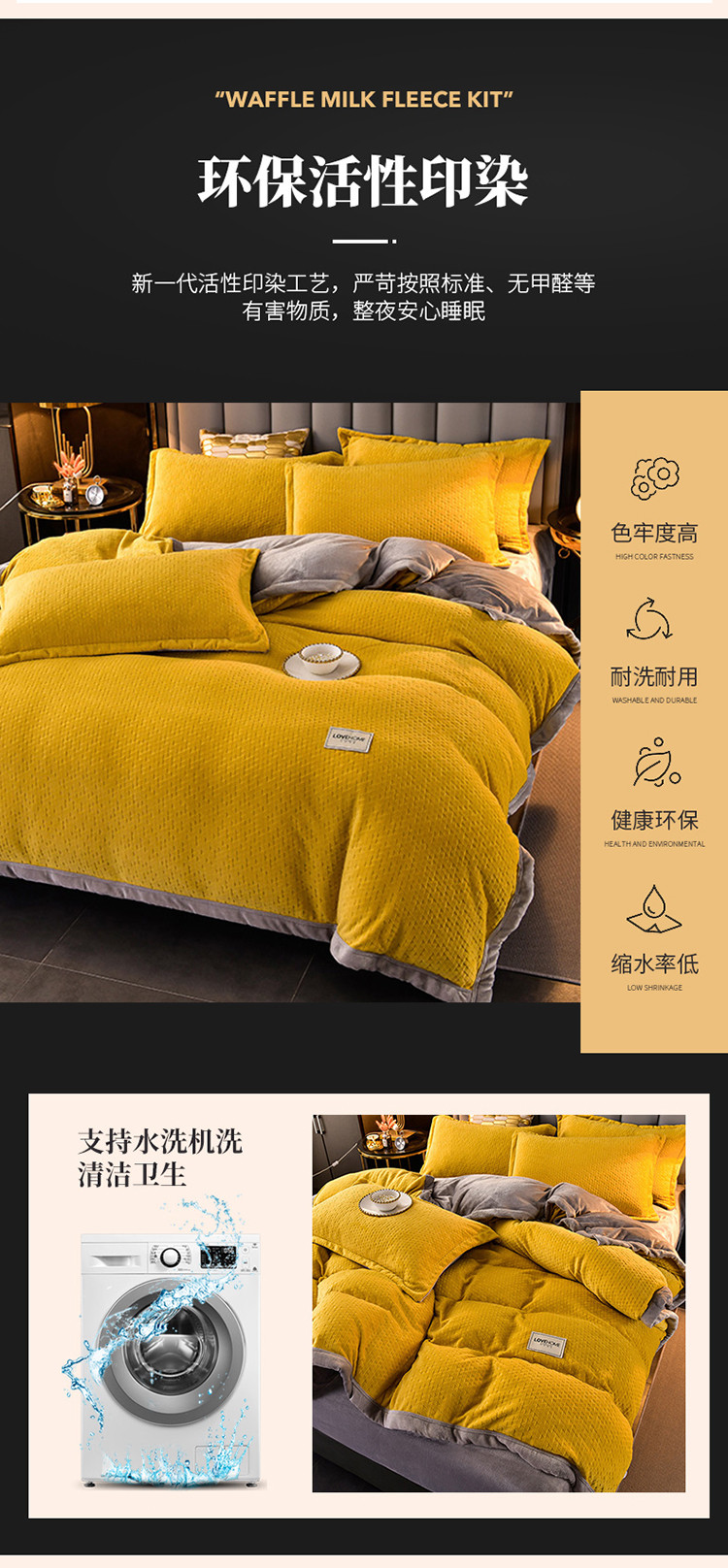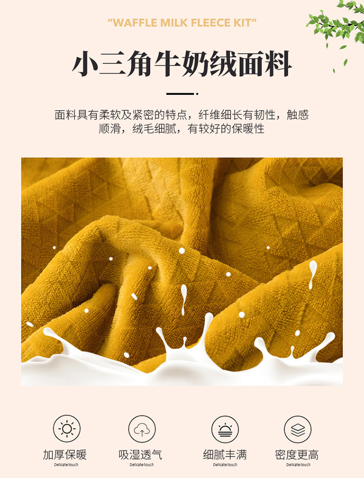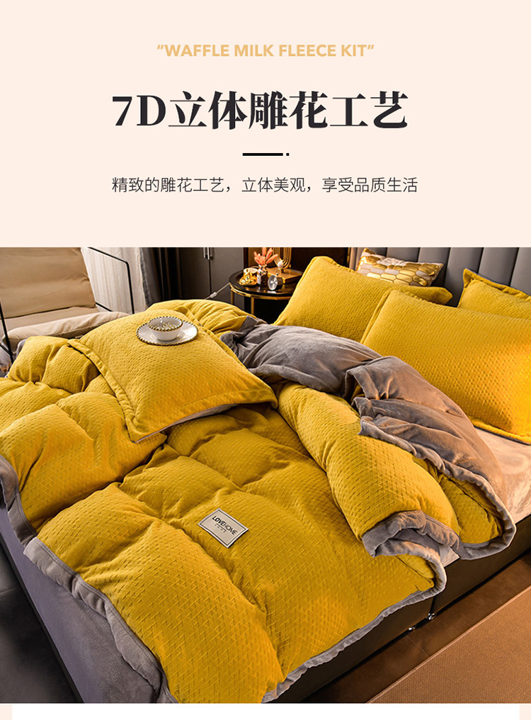 当前位置: 91家纺网 > 商品网购 > 床品套件 > 四件套 > 牛奶绒四件套 > 小牛席业 2022新款雕花牛奶绒四件套 小三角牛奶绒(姜黄)