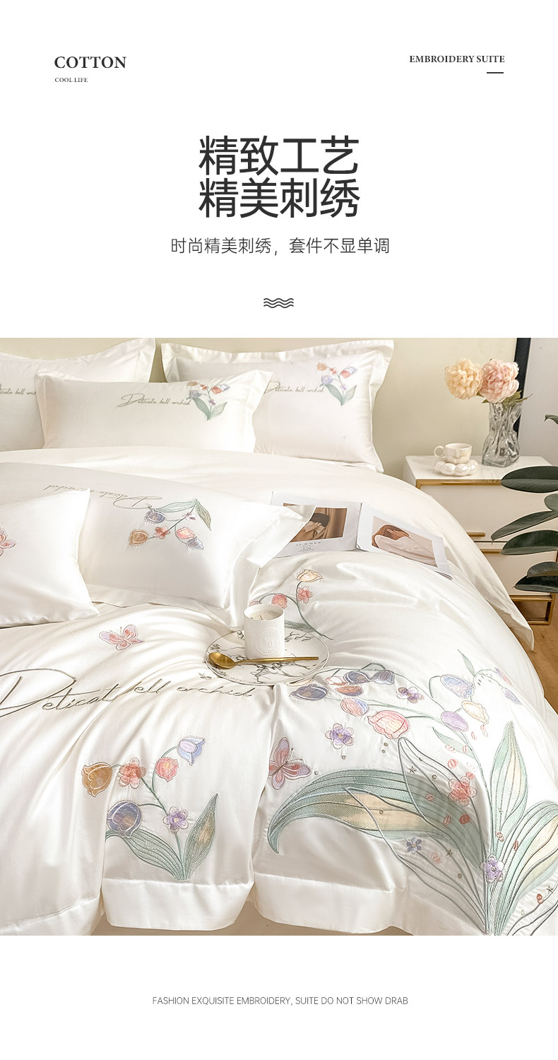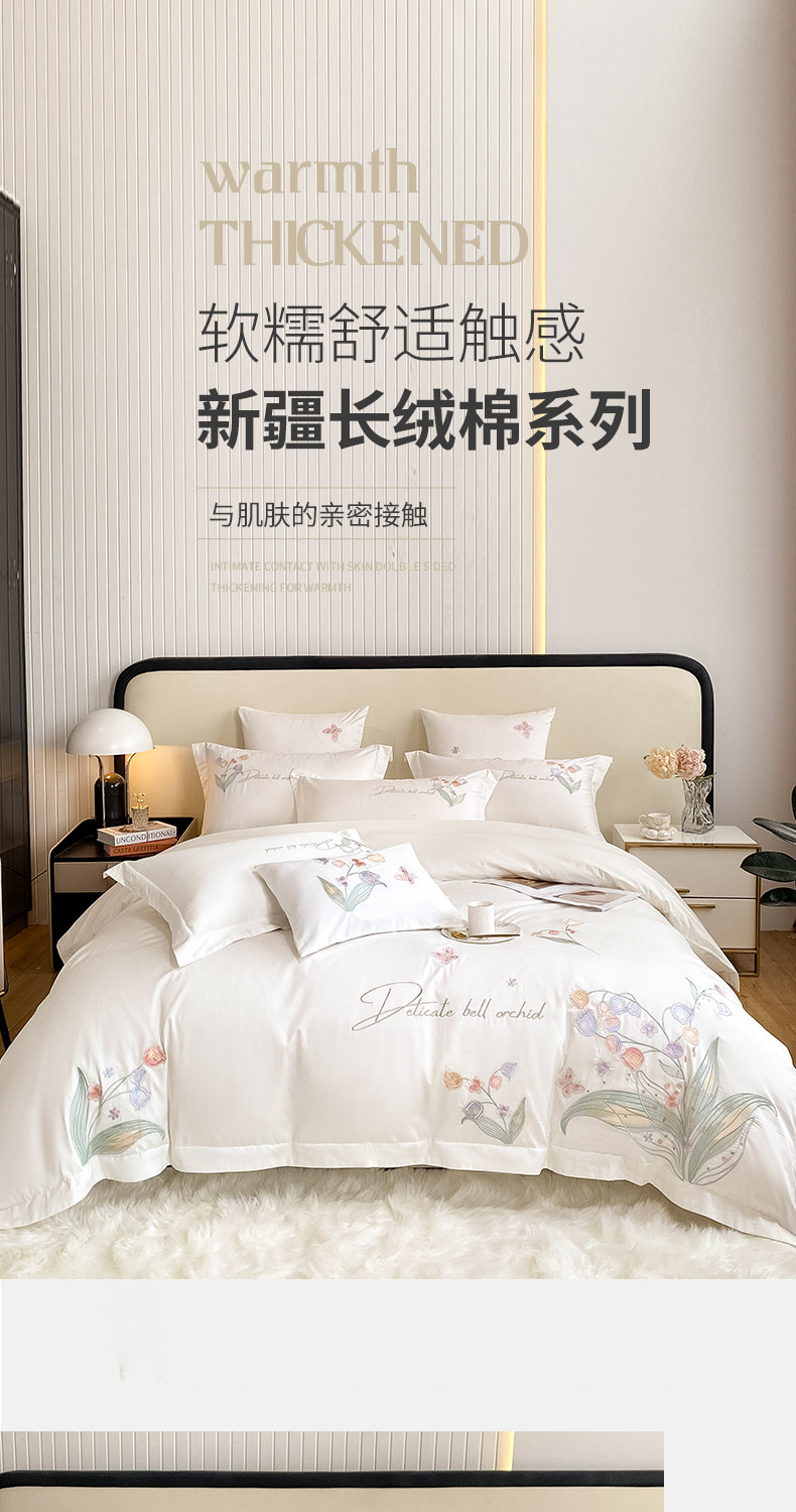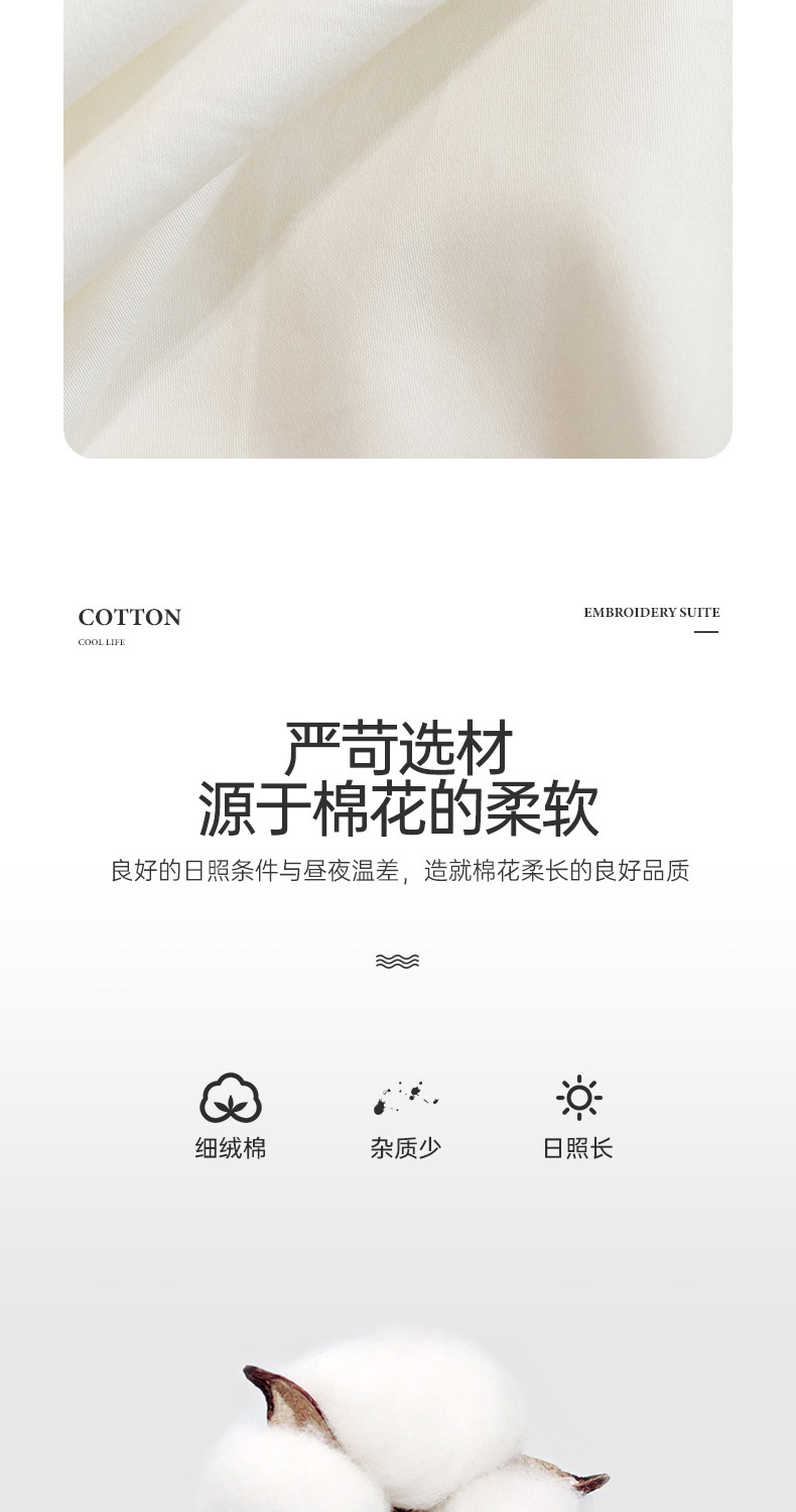 当前位置: 91家纺网 > 商品网购 > 床品套件 > 四件套 > 长绒棉四件套 > 100支新疆长绒棉少女心四件套全棉纯棉简约刺绣床单被套床笠款
