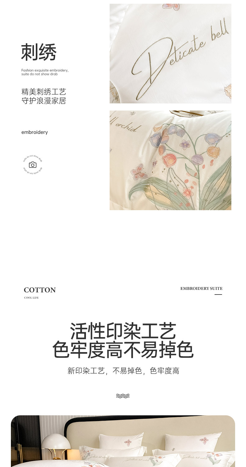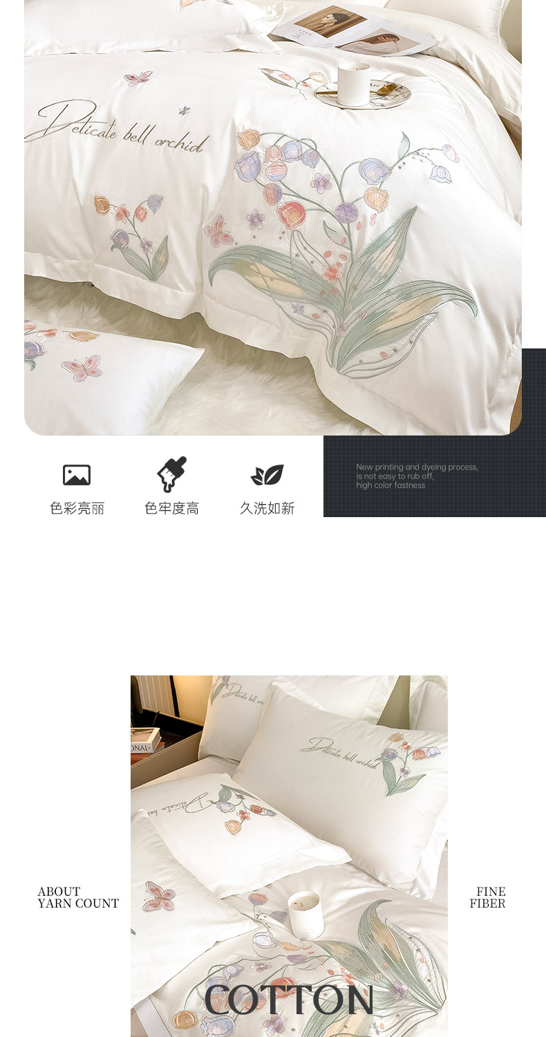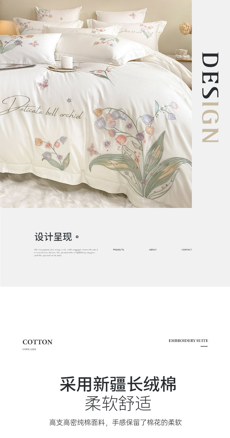 当前位置: 91家纺网 > 商品网购 > 床品套件 > 四件套 > 长绒棉四件套 > 100支新疆长绒棉少女心四件套全棉纯棉简约刺绣床单被套床笠款