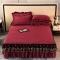 美达水晶绒纯色夹棉床裙盛世皇朝系列床裙三件套 盛世皇朝-酒红