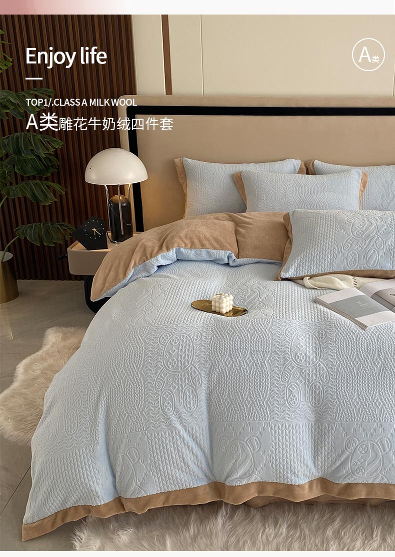 (总)铠畅家纺 2025新款丰眠系列牛奶绒床盖四件套,丰眠-粉玉,丰眠-海藻青,丰眠-灰紫,丰眠-奶油咖,丰眠-雾蓝