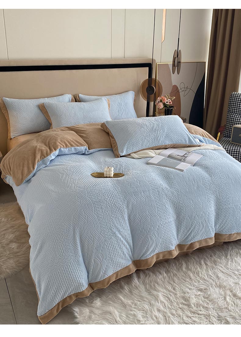 铠畅 2022新款230克轻奢简约烂花绒牛奶绒剪花四件套 魅力熊-浅蓝