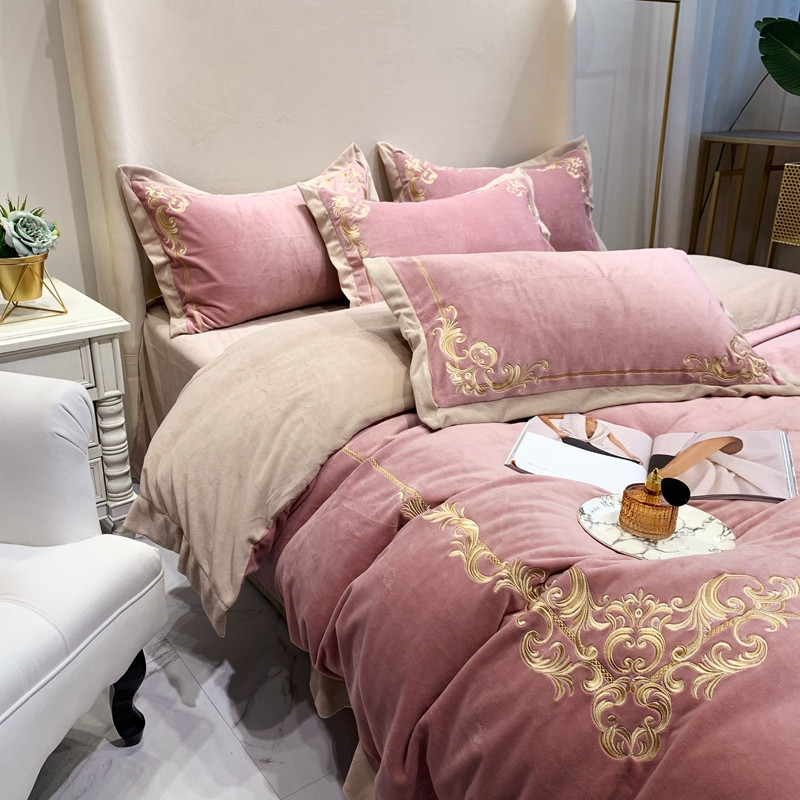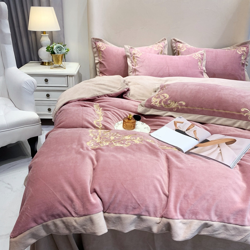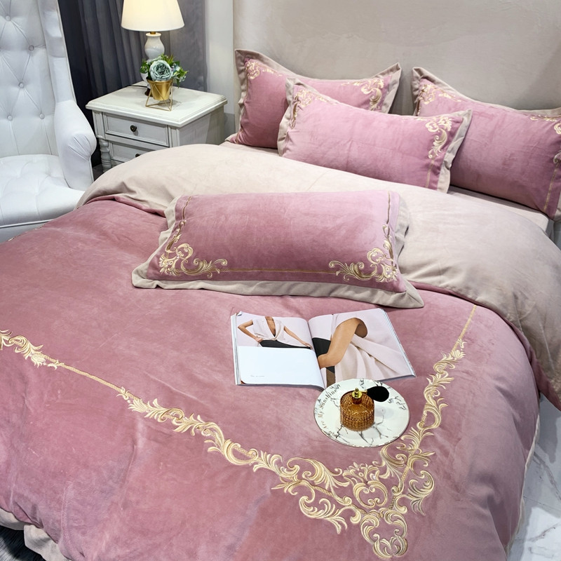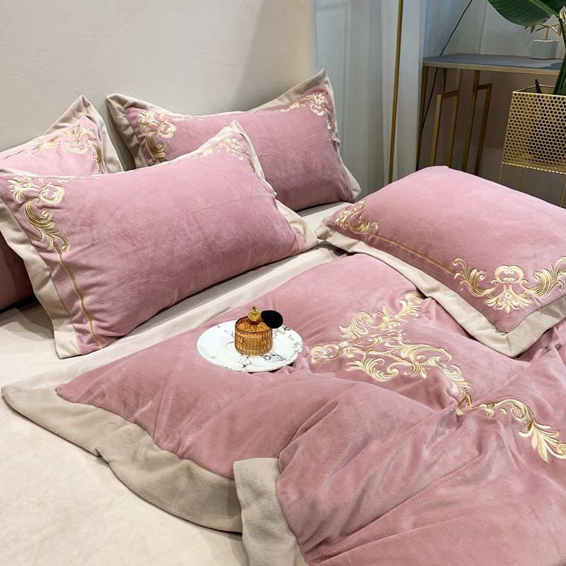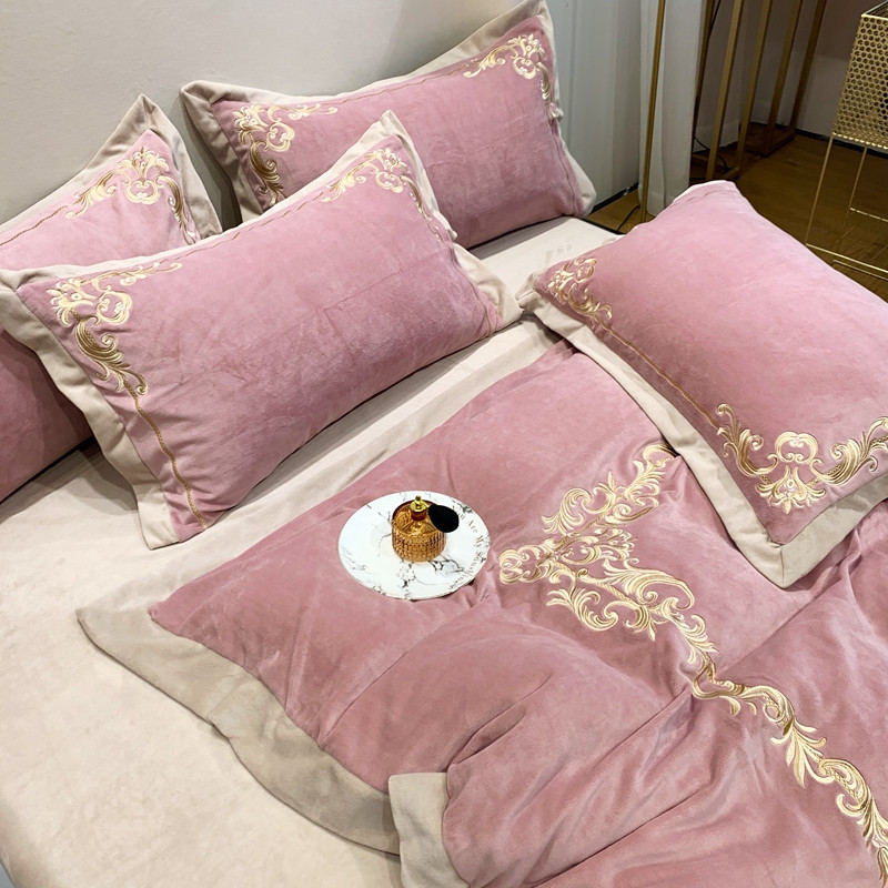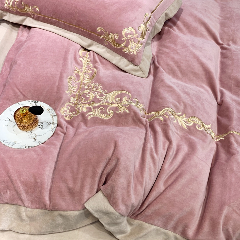 商品名称:馨蕊2022新款秋冬轻奢煦暖绒系列四件套 巴比伦-粉豆沙