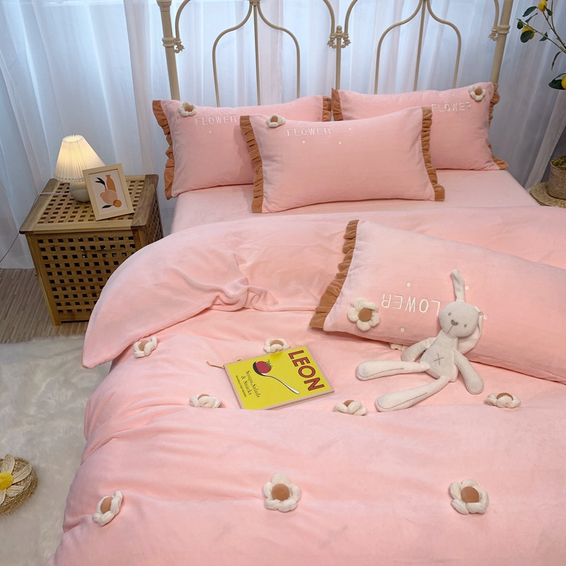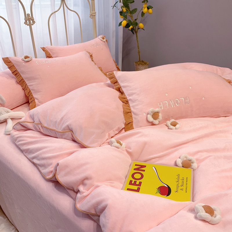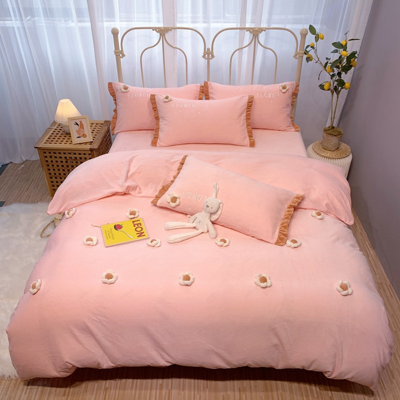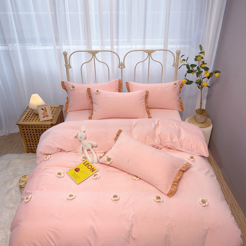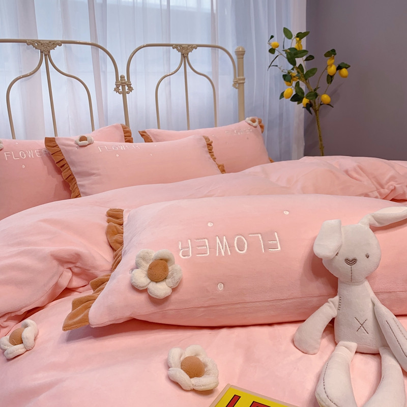 馨蕊 2022新款秋冬轻奢煦暖绒那时花开系列四件套 那时花开-仙女粉