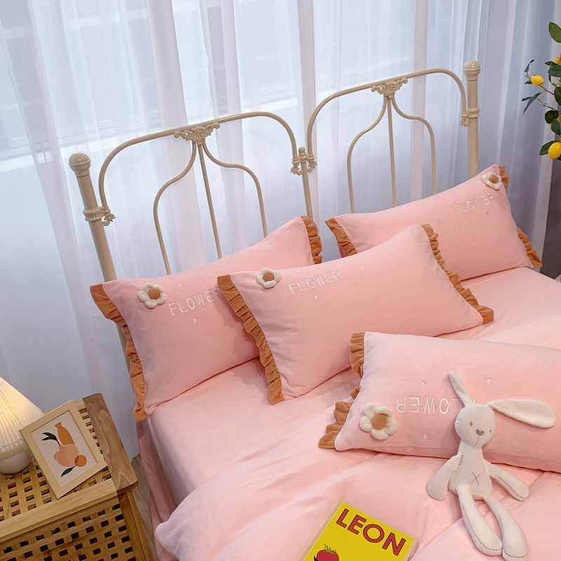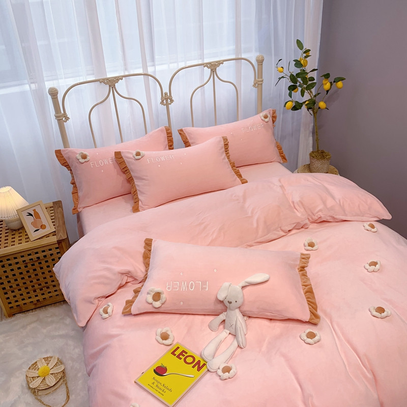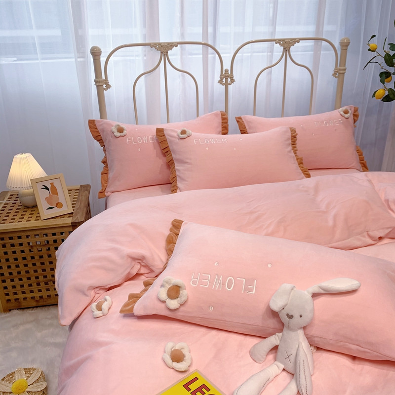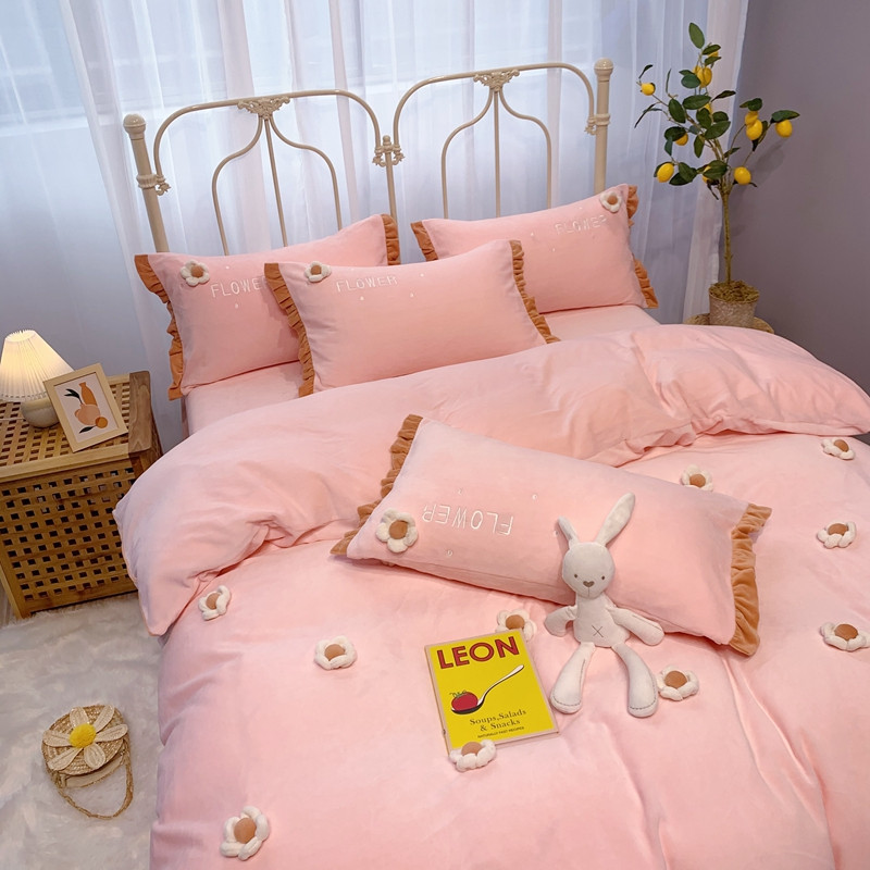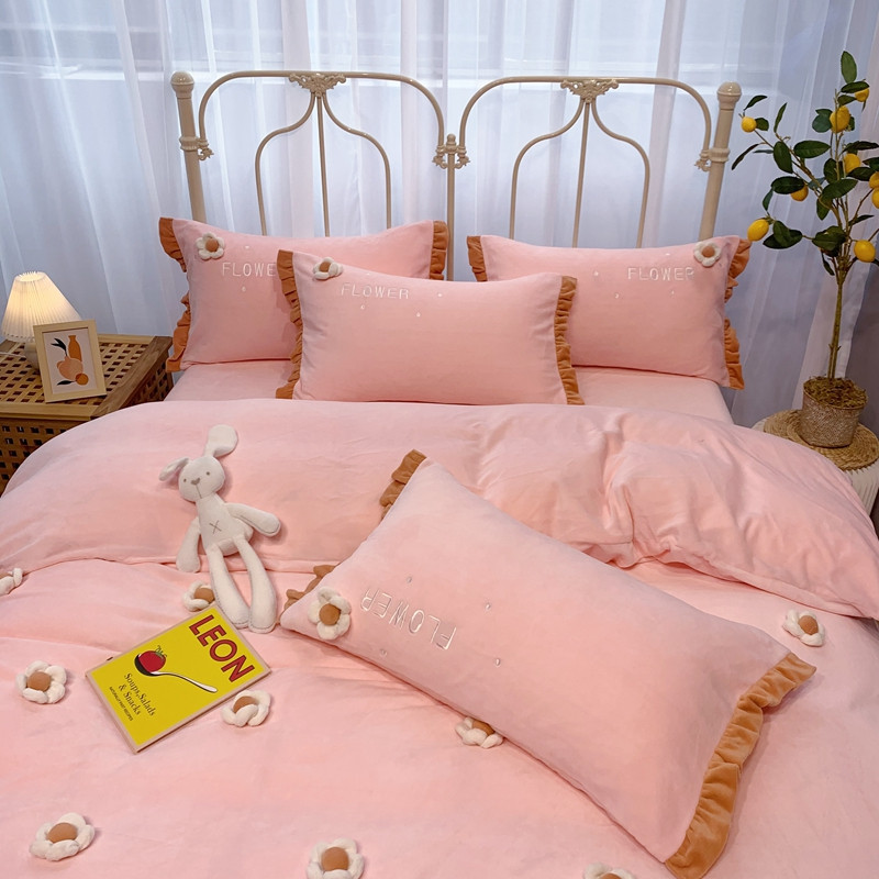 馨蕊 2022新款秋冬轻奢煦暖绒那时花开系列四件套 那时花开-仙女粉