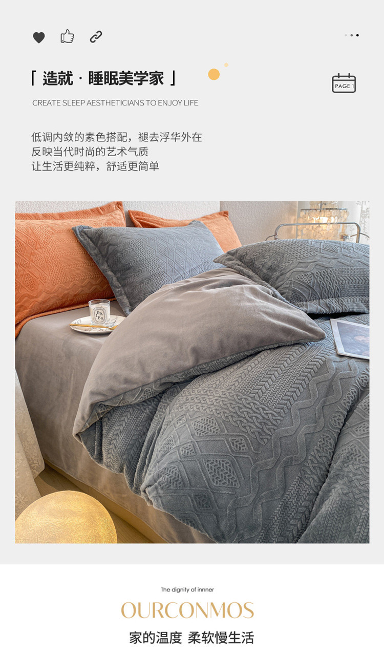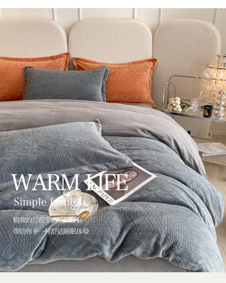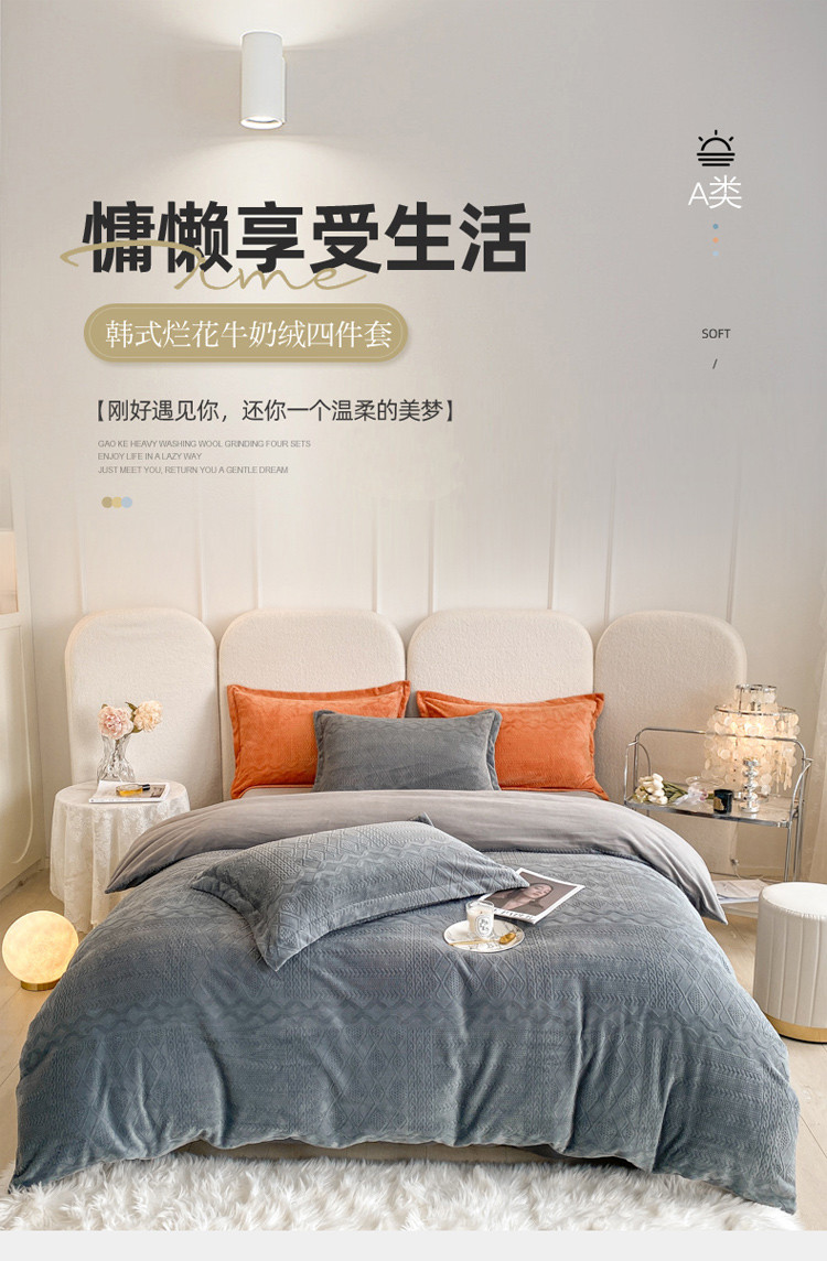 当前位置: 91家纺网 > 商品网购 > 床品套件 > 四件套 > 牛奶绒四件套 > 寐居 2022新款高克重烂花牛奶绒四件套 韩式烂花-深灰