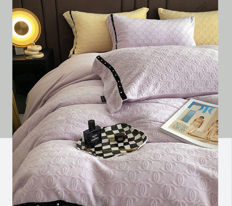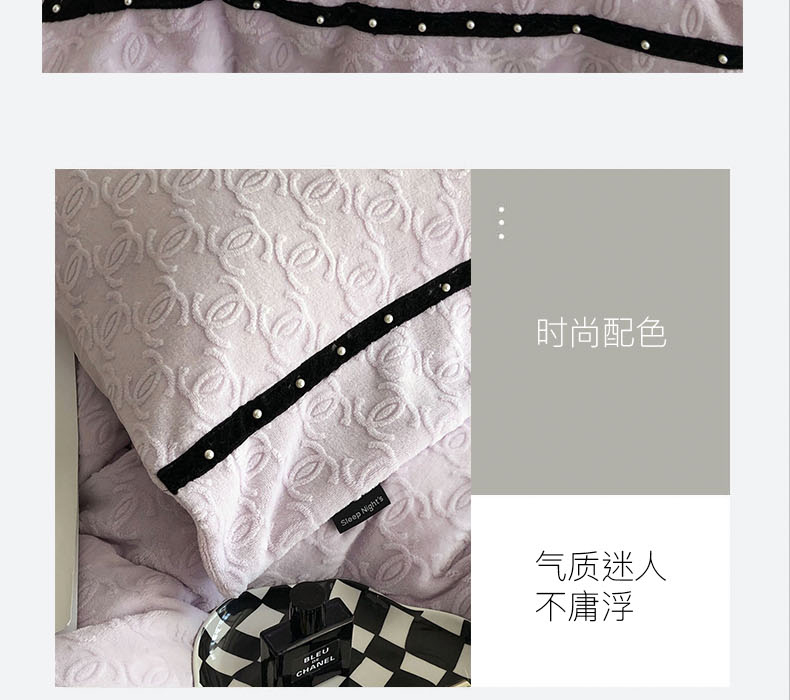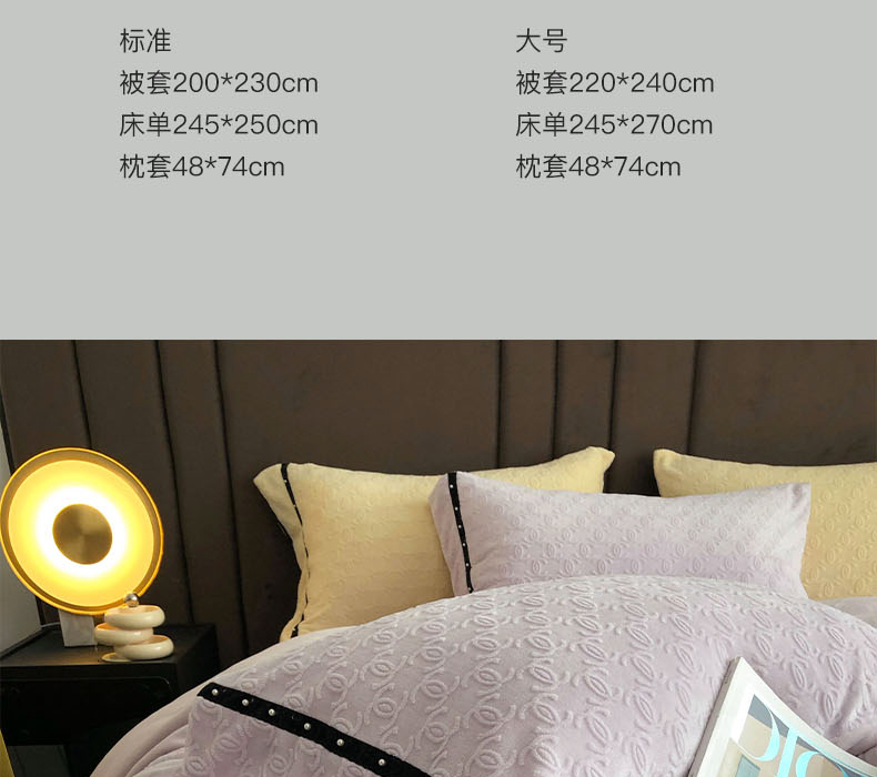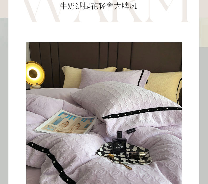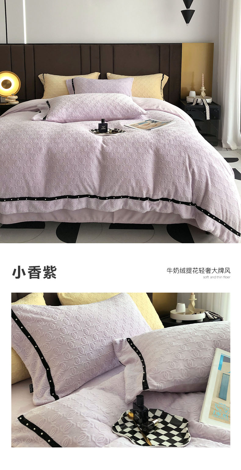 商品名称:卡姿 2022新款牛奶绒提花轻奢大牌风四件套 小香紫