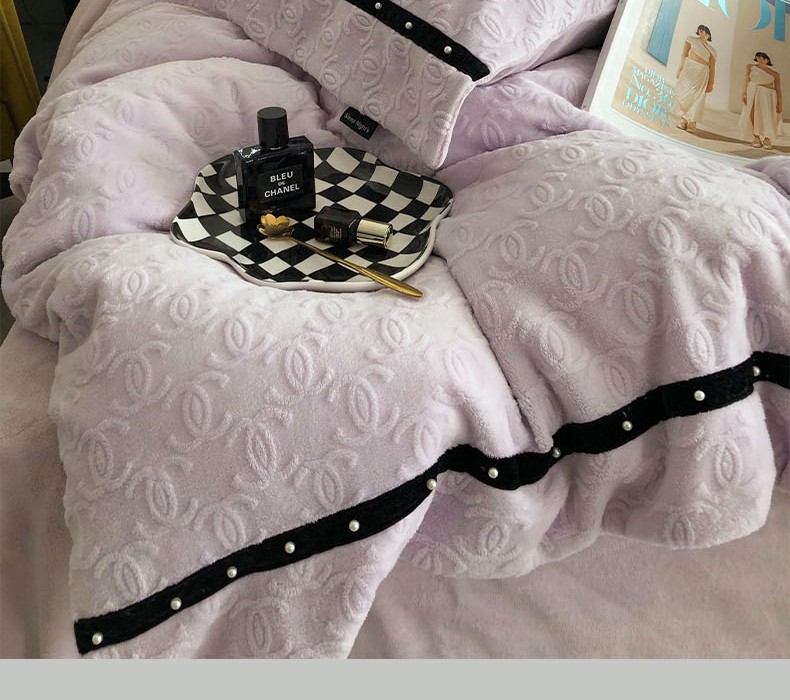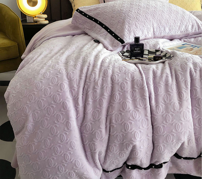 卡姿 2022新款牛奶绒提花轻奢大牌风四件套 小香紫