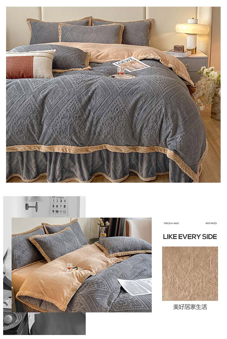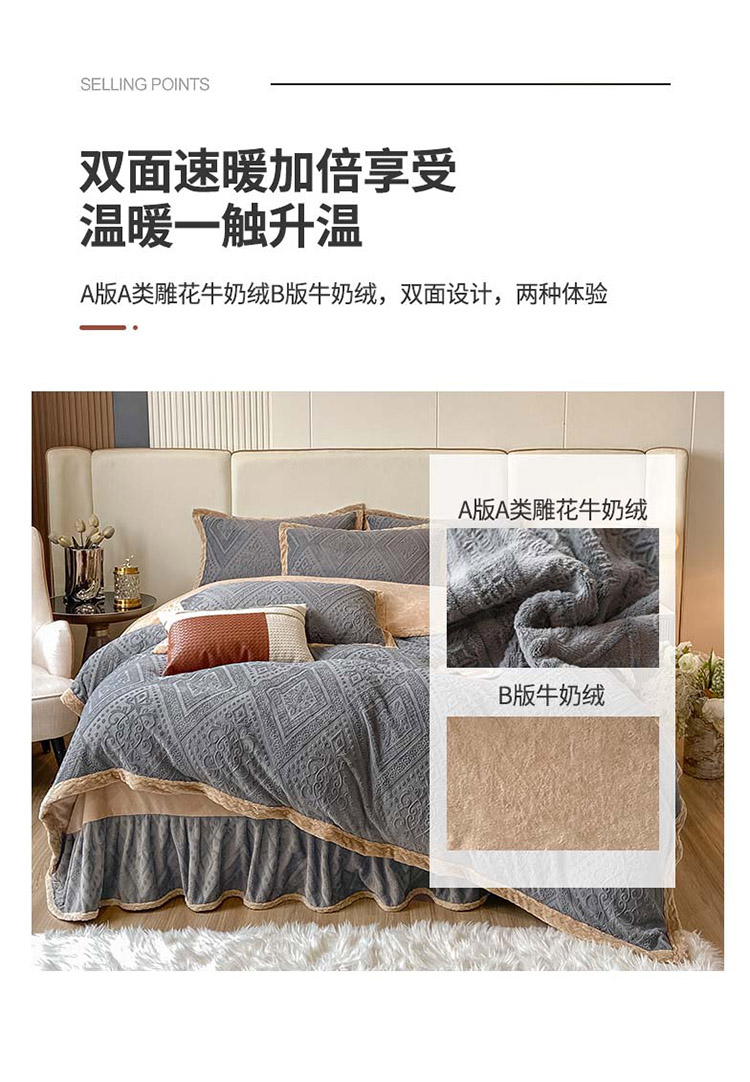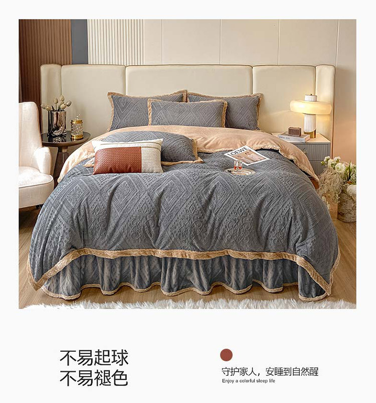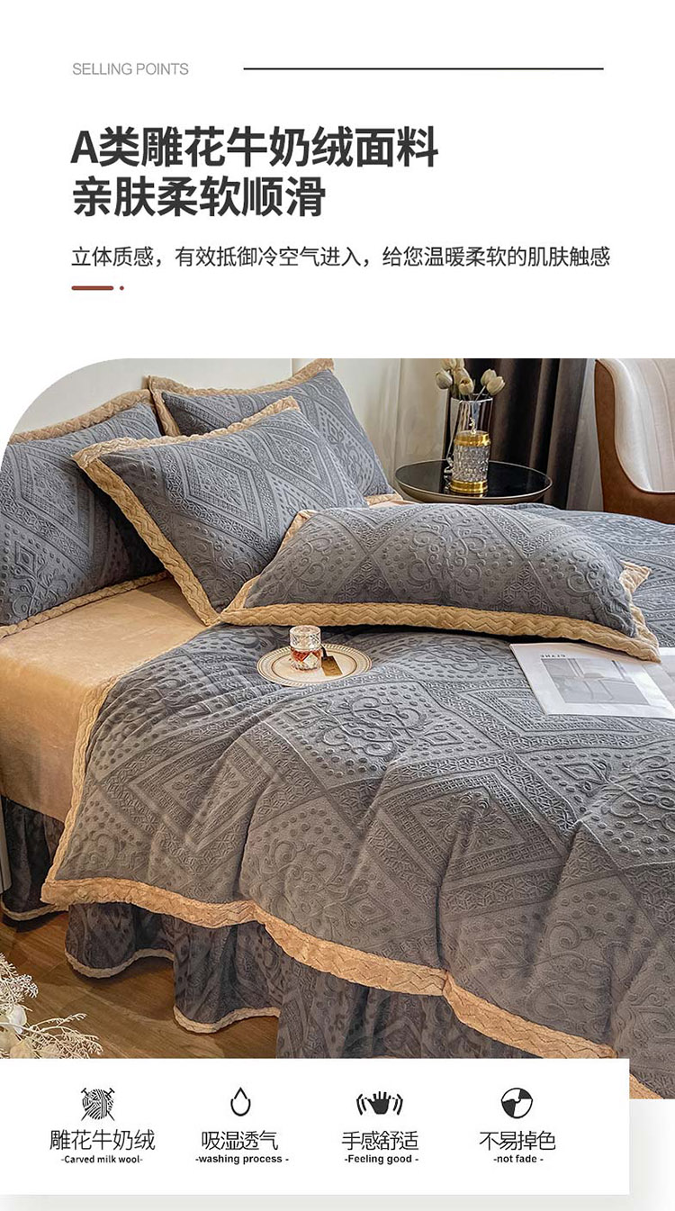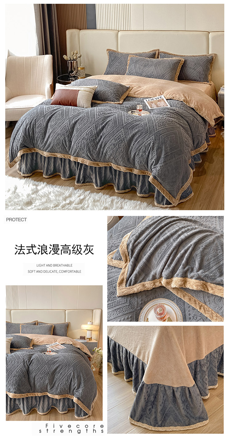 商品名称:铠畅 2022新款A类烂花牛奶绒床裙四件套 法式浪漫高级灰