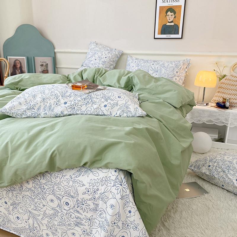 商品名称:一米阳光 新款蝴蝶结色织水洗棉小碎花撞色四件套-情怀系列 清新绿