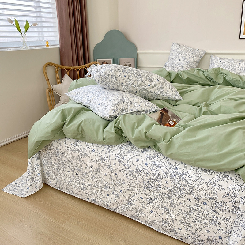 一米阳光 新款蝴蝶结色织水洗棉小碎花撞色四件套-情怀系列 清新绿