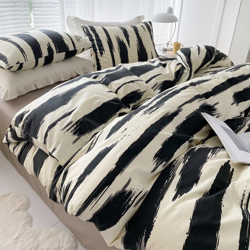 商品名称:珺柔 2022新款13070全棉四件套 黑条纹