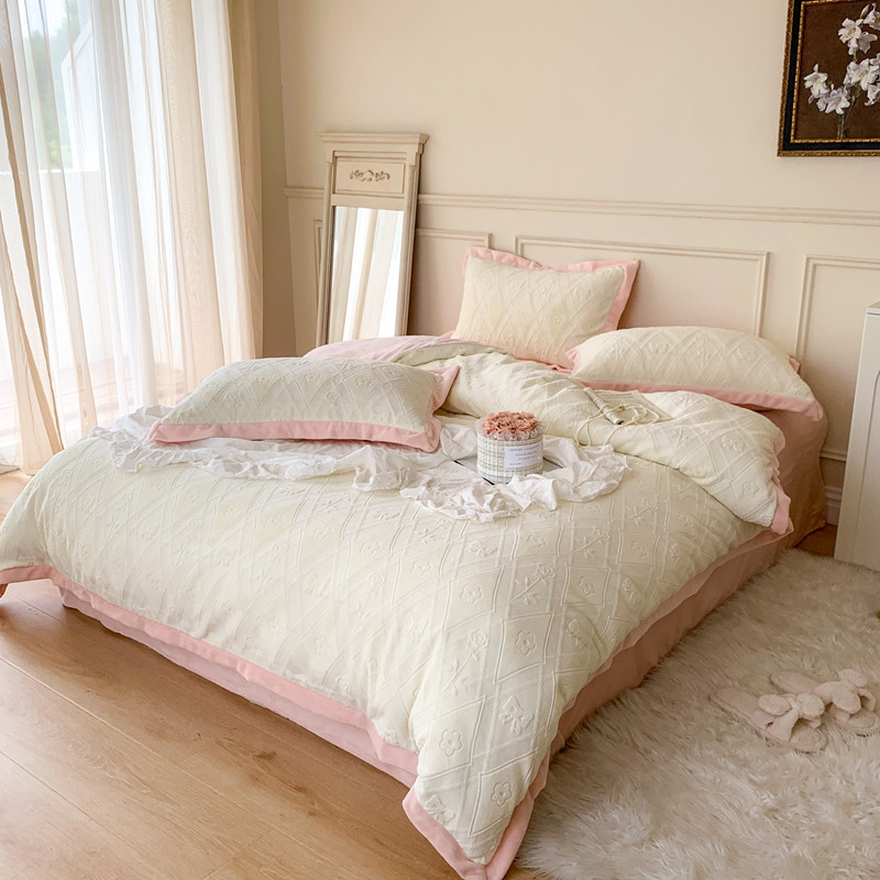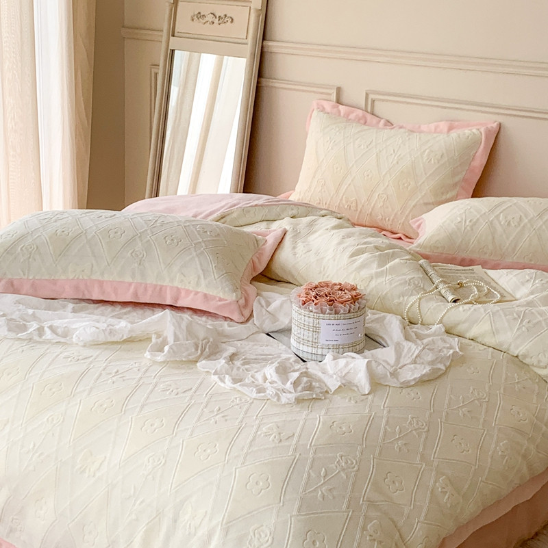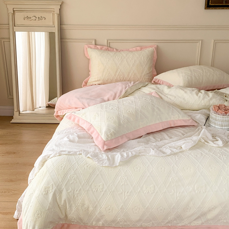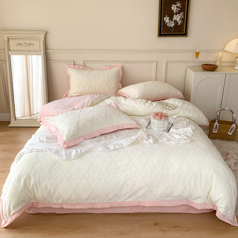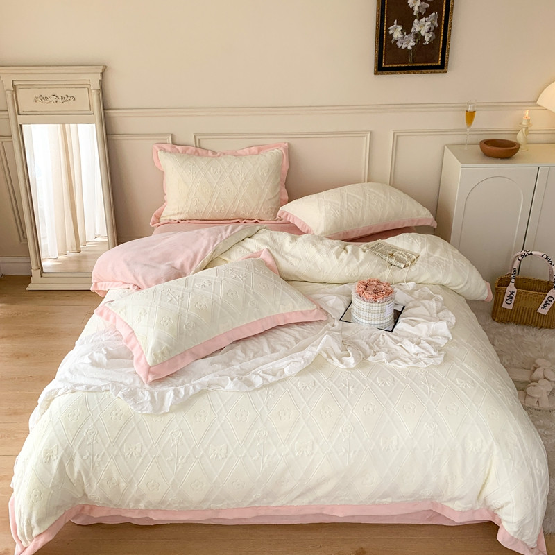 商品名称:圆岛 2022新款四色入3D雕花牛奶绒保暖四件套 风格二 蜜粉