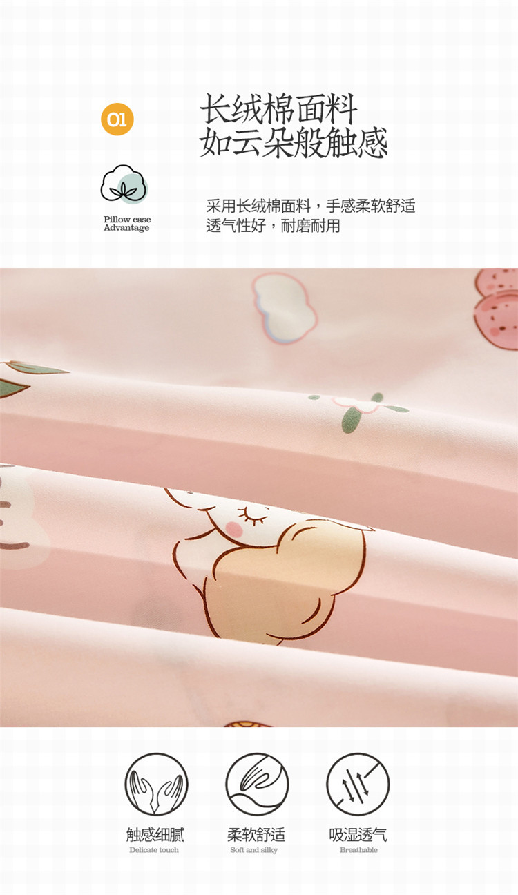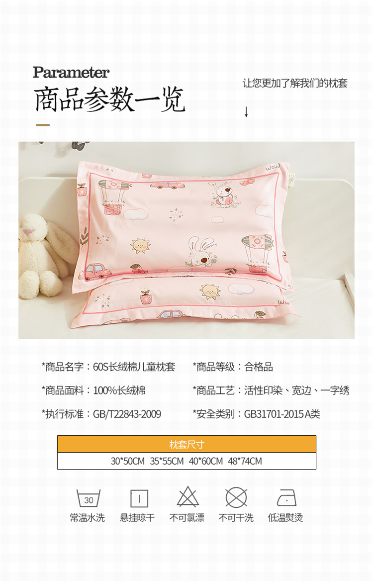 商品名称:荷马之梦 2022新款60长绒棉儿童枕套一只装 奶味小兔