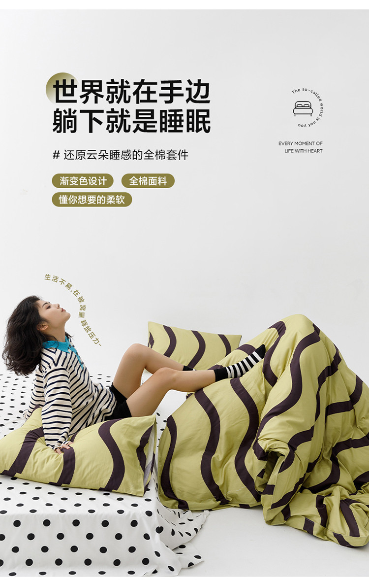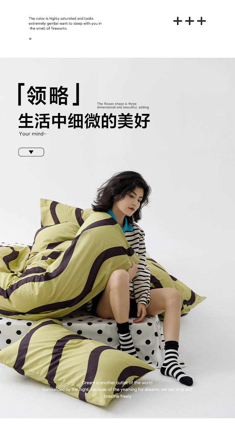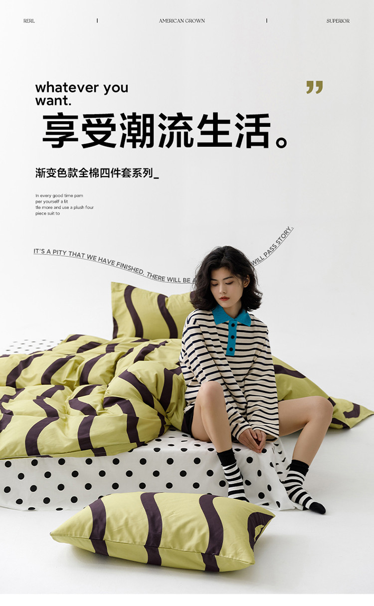 (总)雅居纺家纺 2022新款13070全棉印花四件套,波纹,多彩,简笔画,莓关系,奶油绿豹纹,倾心,数字