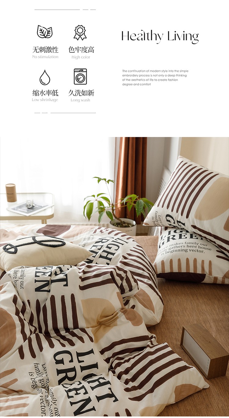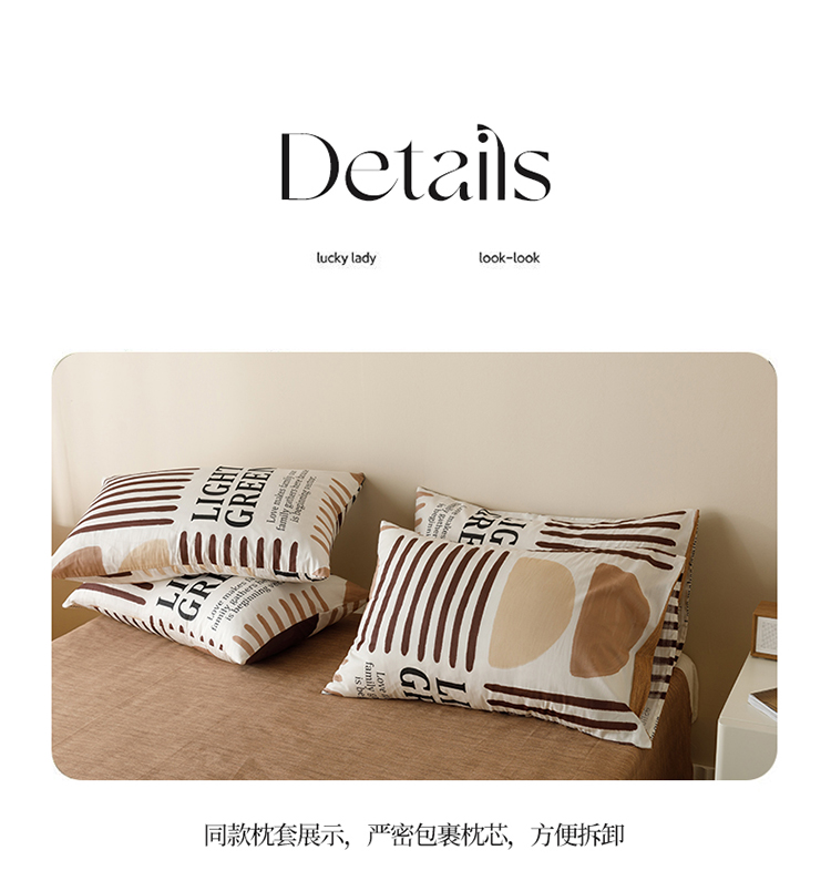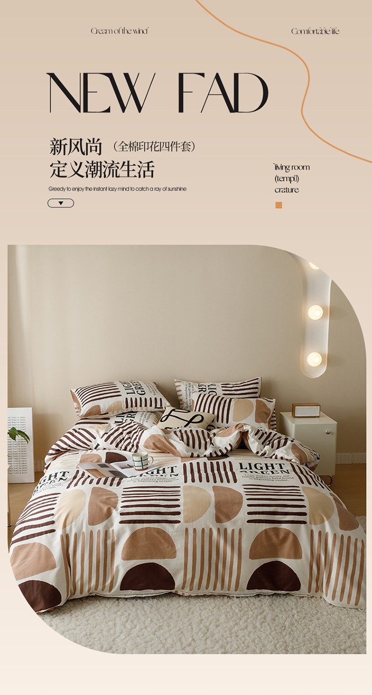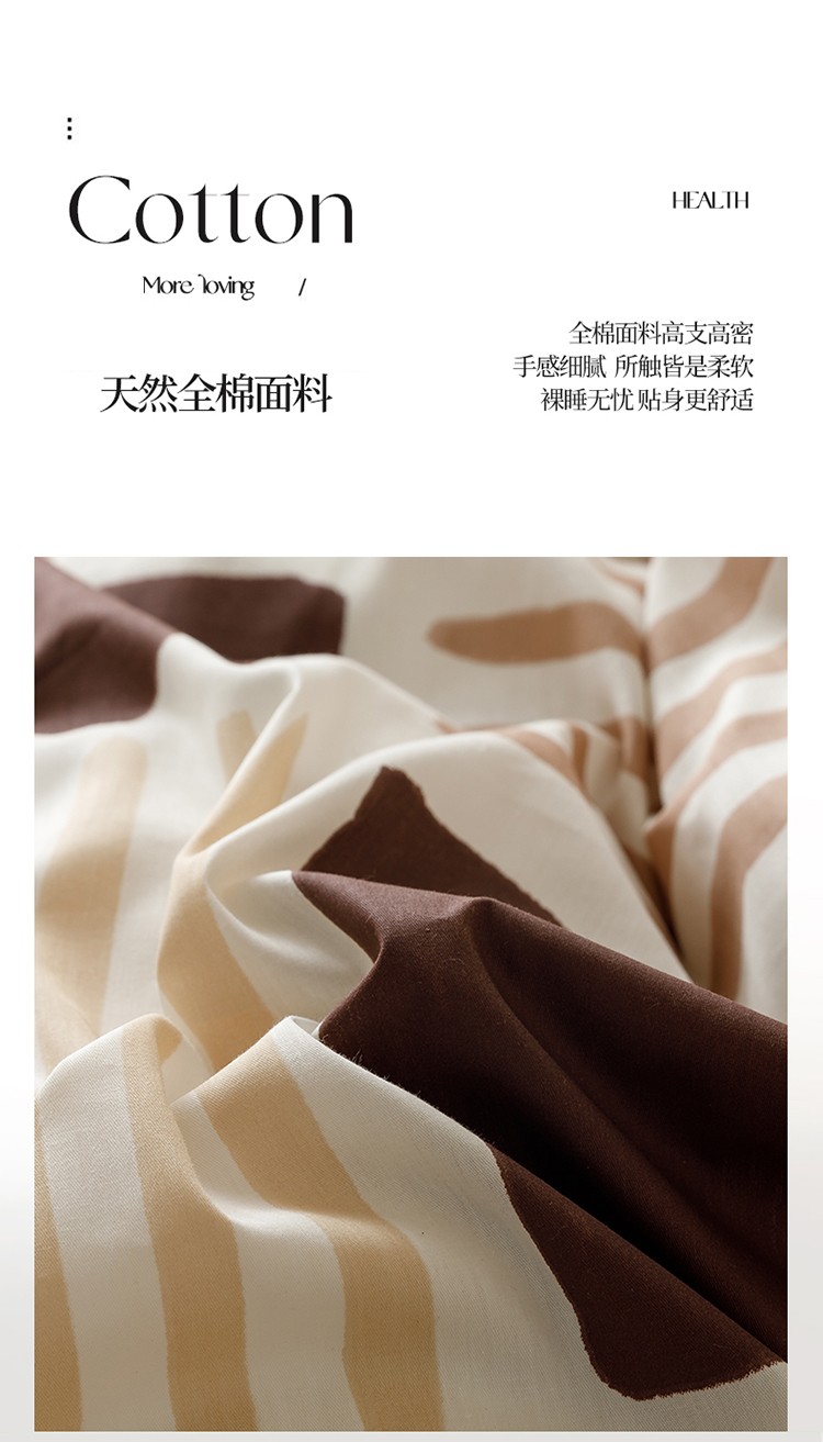 商品名称:蓝邻家纺 2023新款全棉印花四件套简约系类四件套 布亚-咖