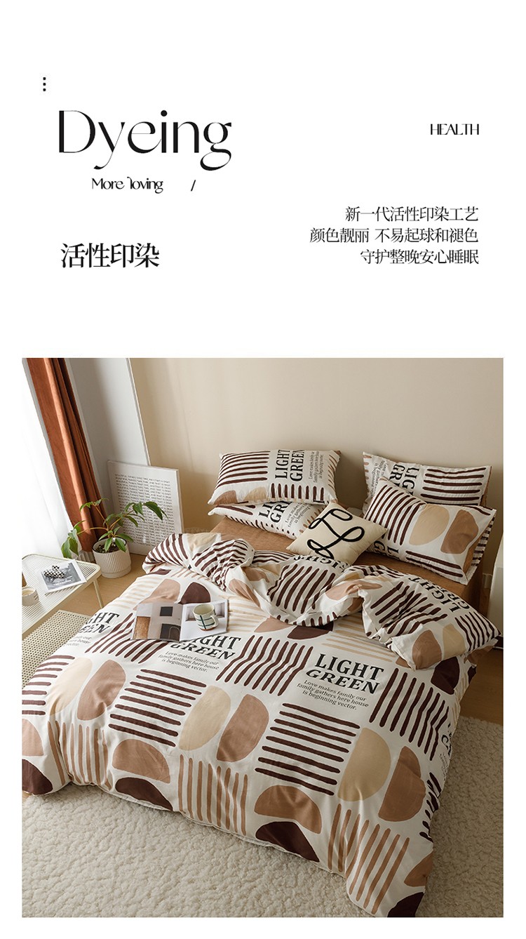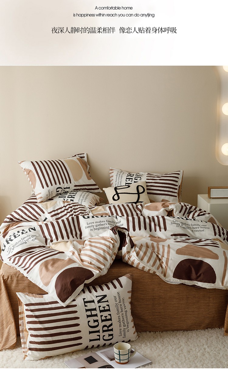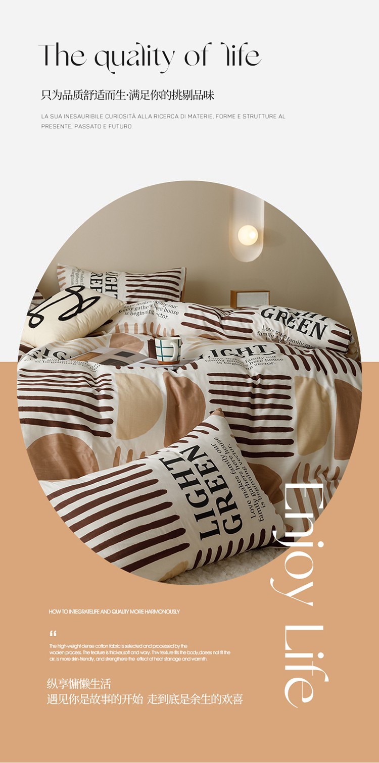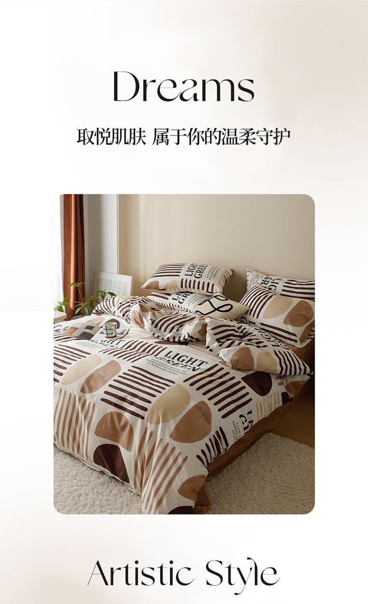 蓝邻家纺 2023新款全棉印花四件套简约系类四件套 布亚-咖