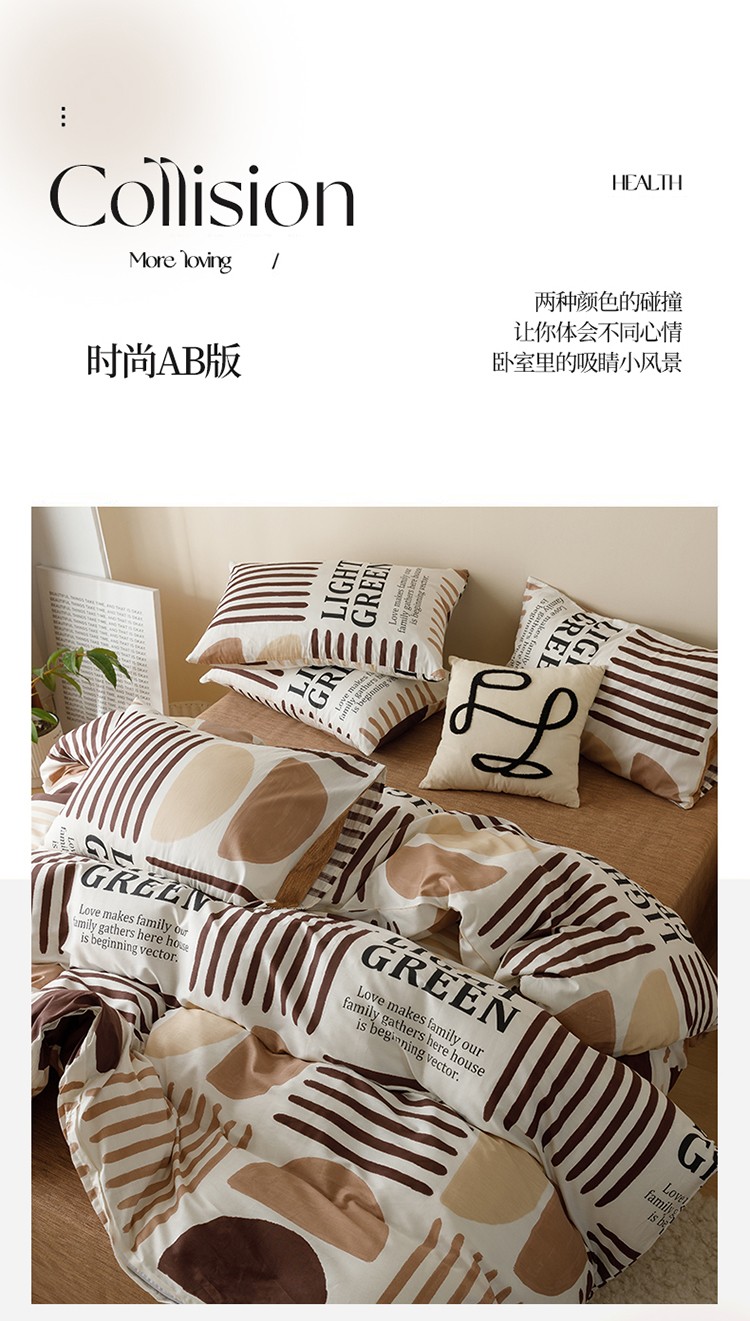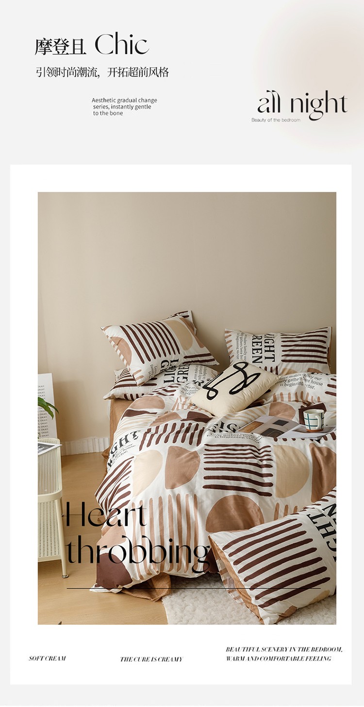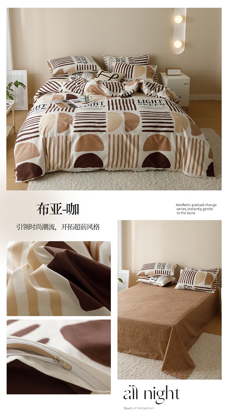 蓝邻家纺 2023新款全棉印花四件套简约系类四件套 布亚-咖