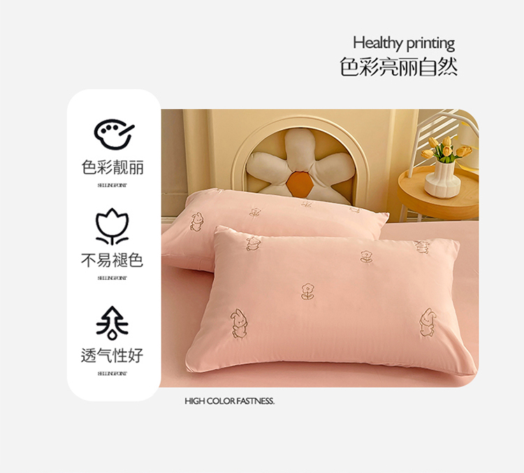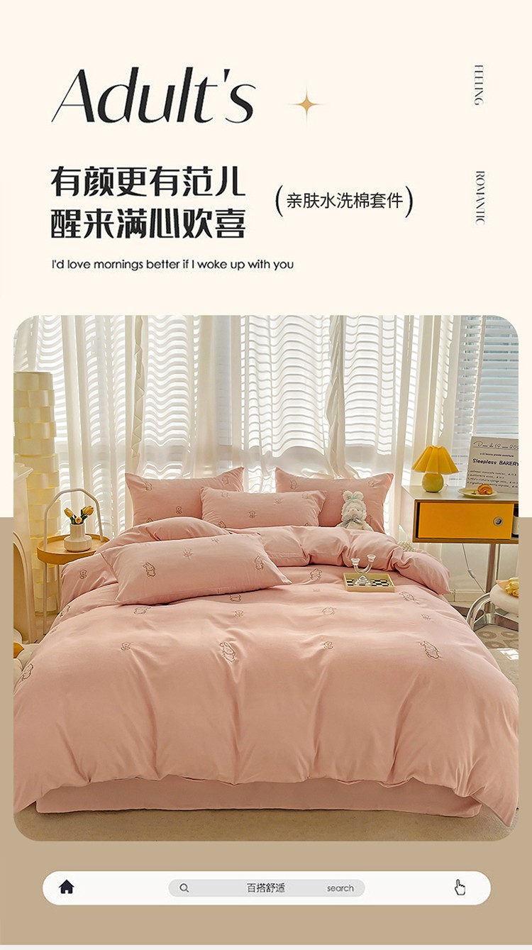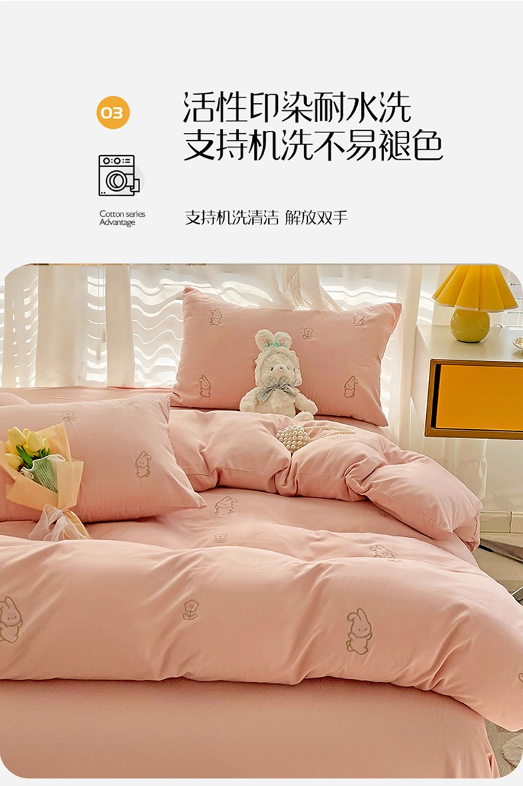 商品名称:N先生 2024新款亲肤水洗棉刺绣四件套-小花兔 小花兔-粉