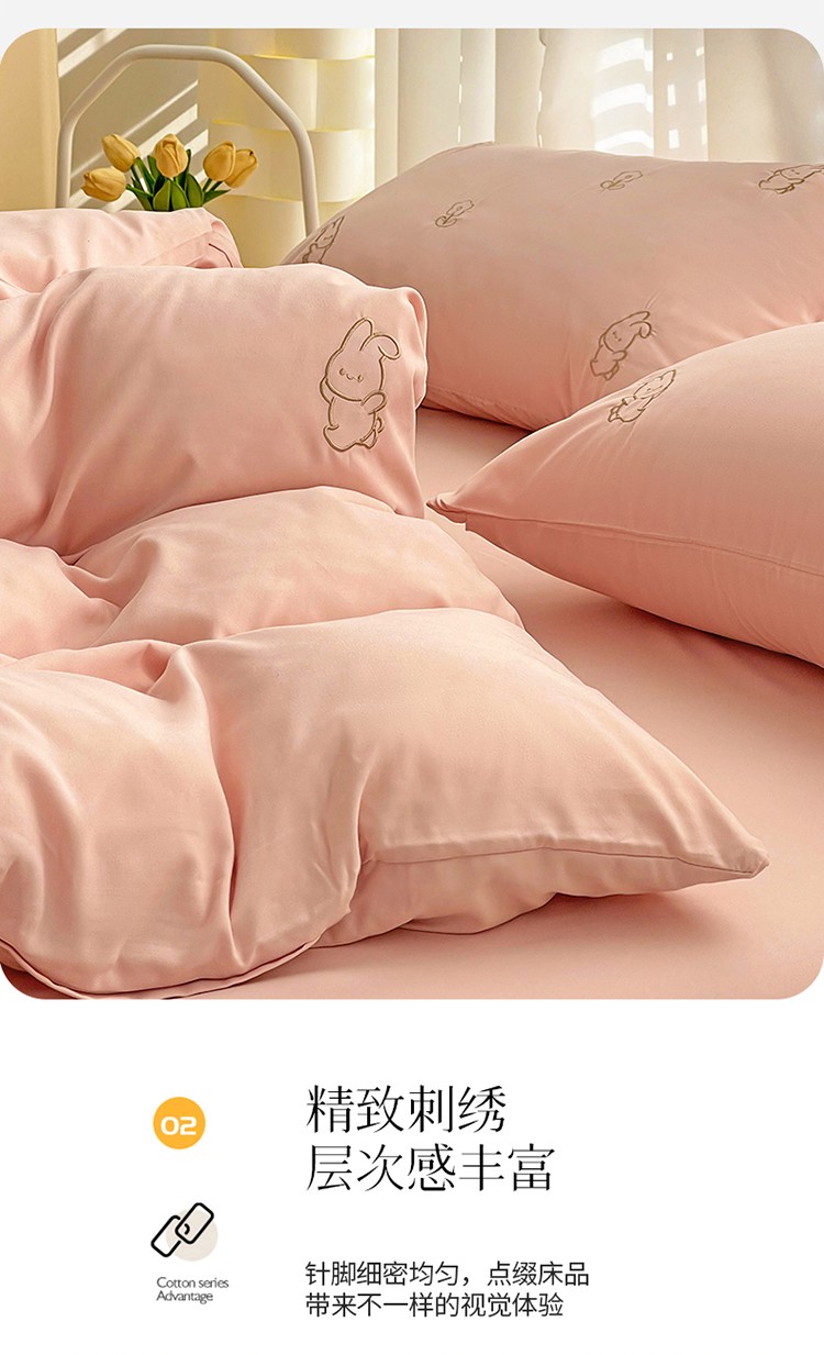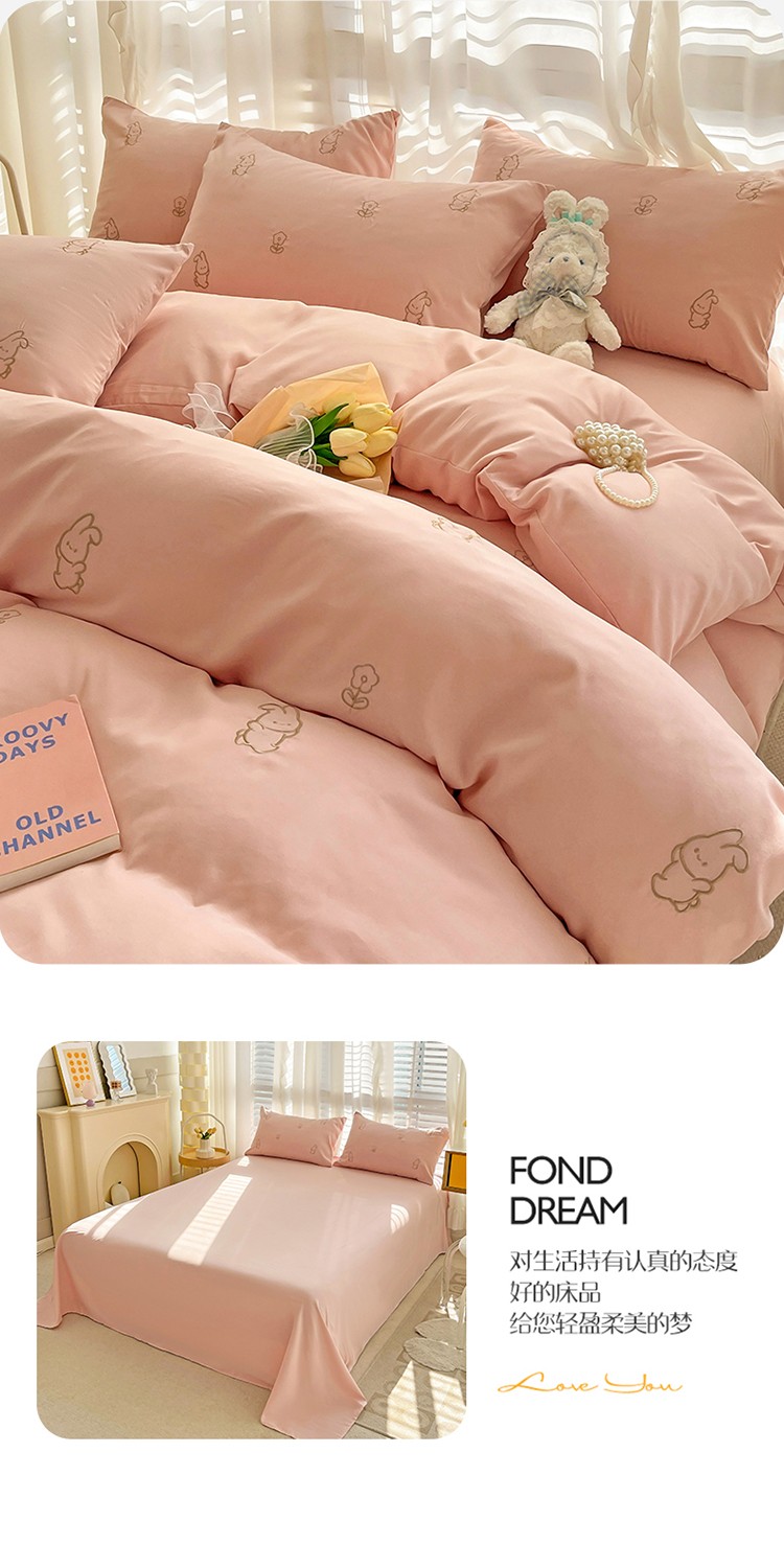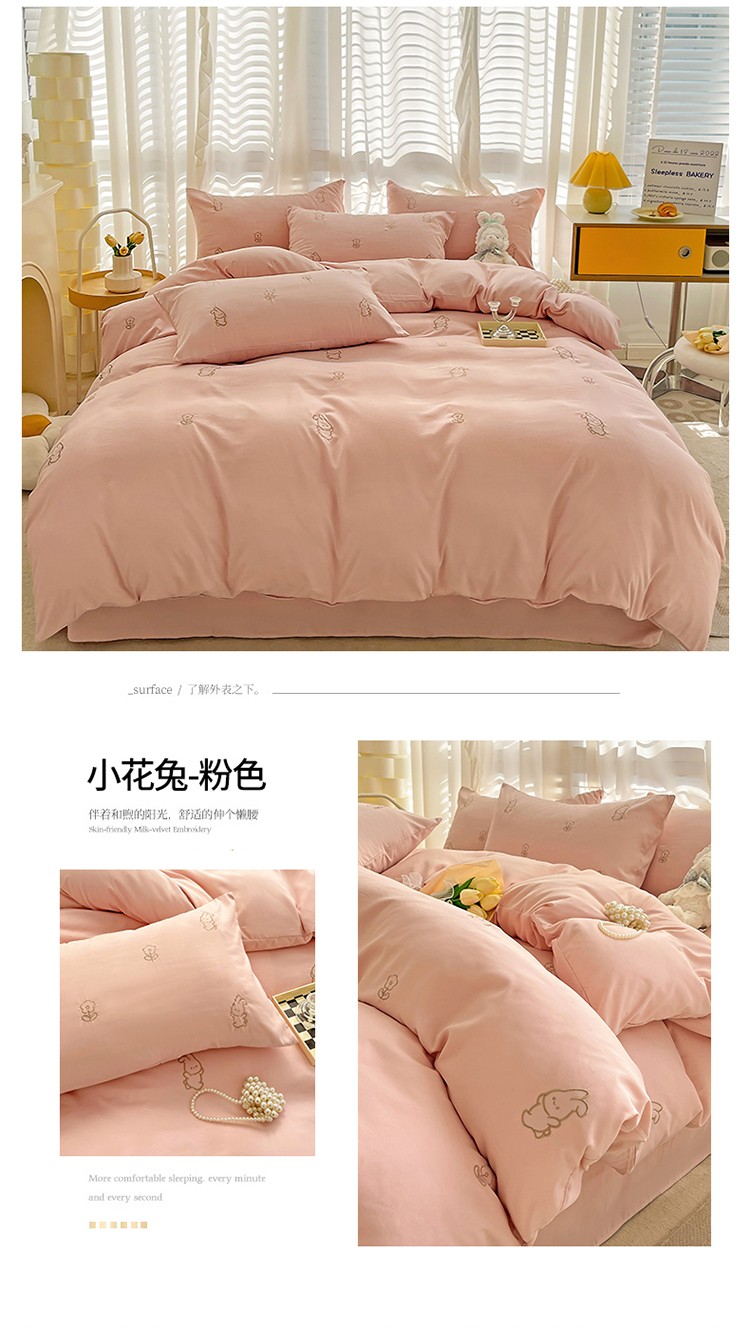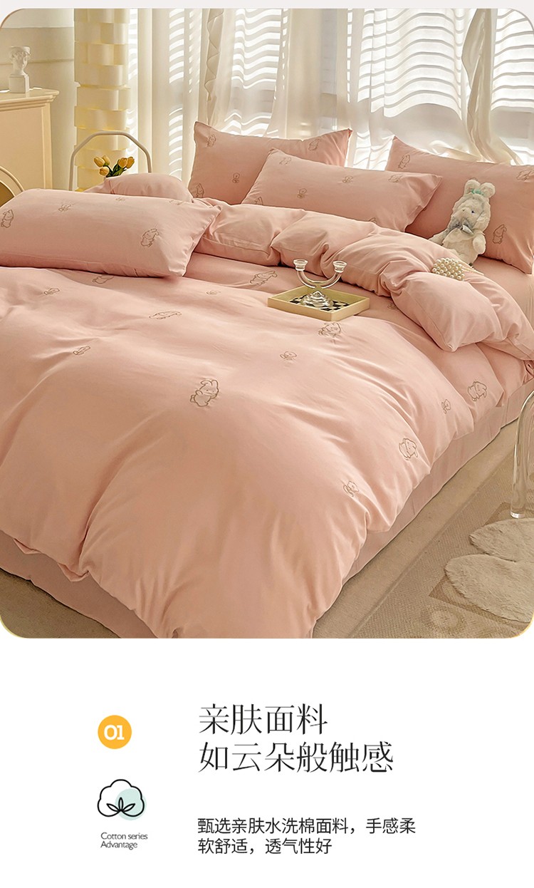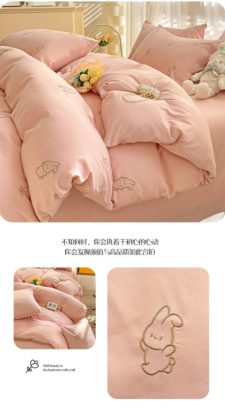 N先生 2024新款亲肤水洗棉刺绣四件套-小花兔 小花兔-粉