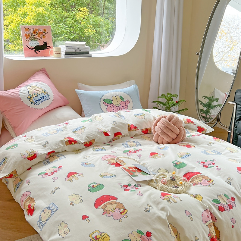 商品名称:柚子 2023新款13372精梳棉治 愈系列四件套 蘑菇女孩