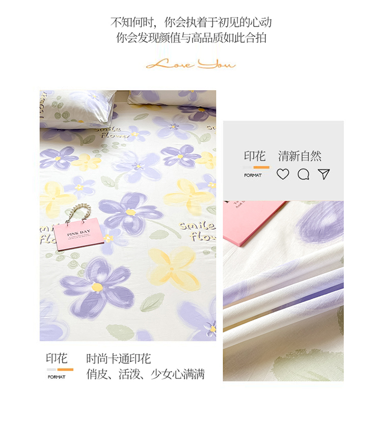 商品名称:2023新款全棉印花小清新系列-单床单 微笑花