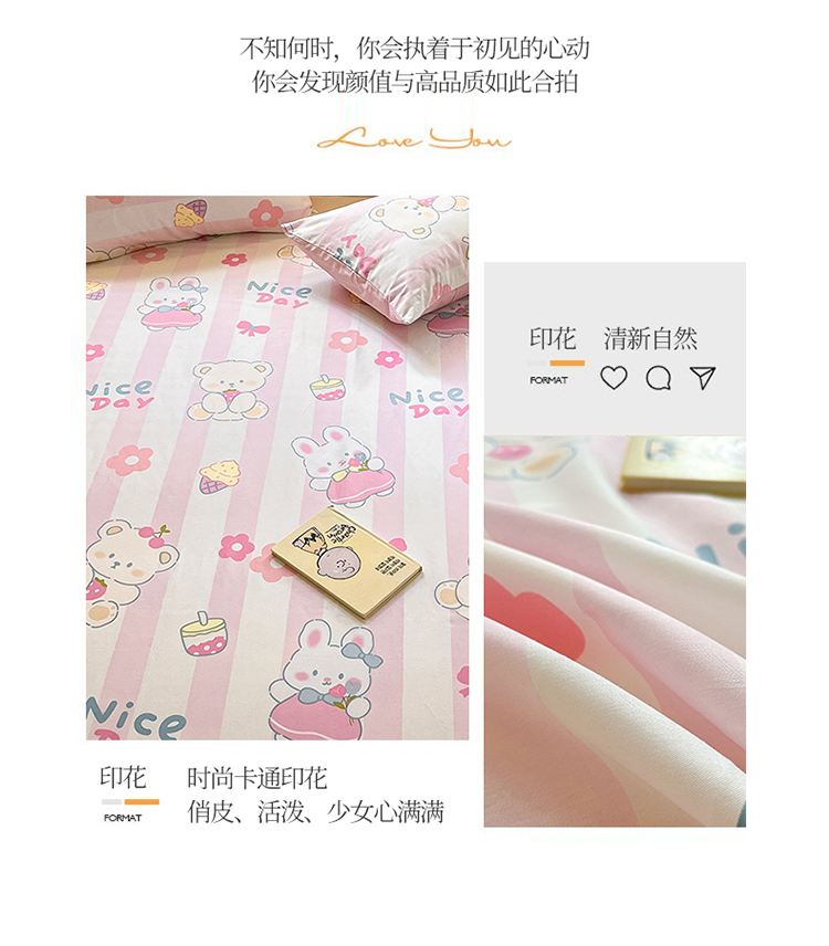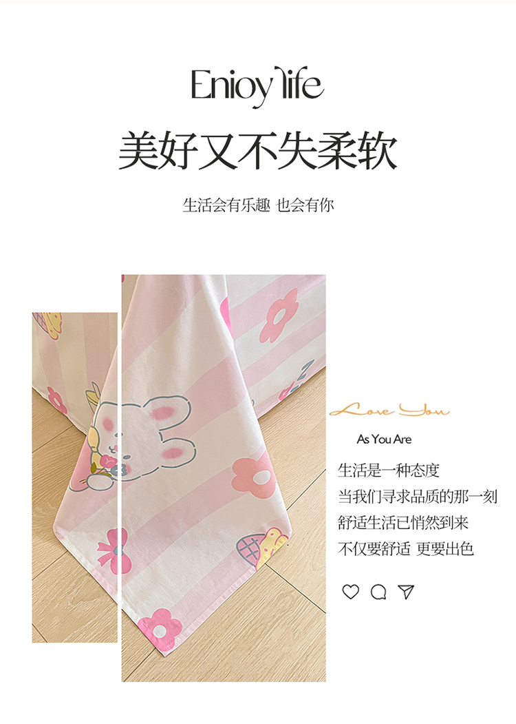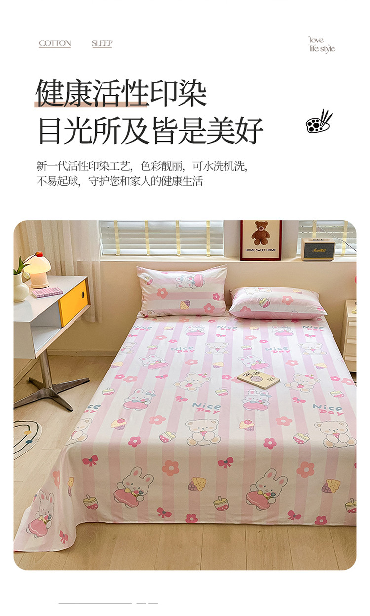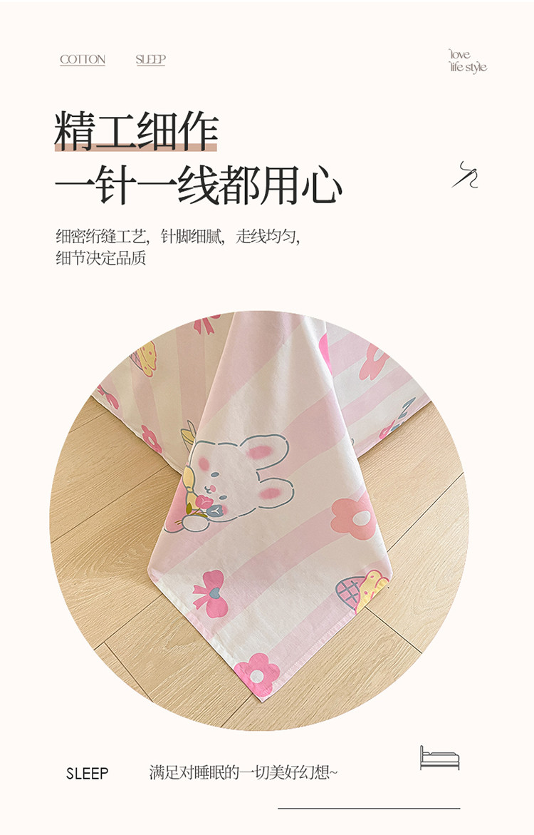 商品名称:2023新款全棉印花小清新系列-单床单 元气小兔