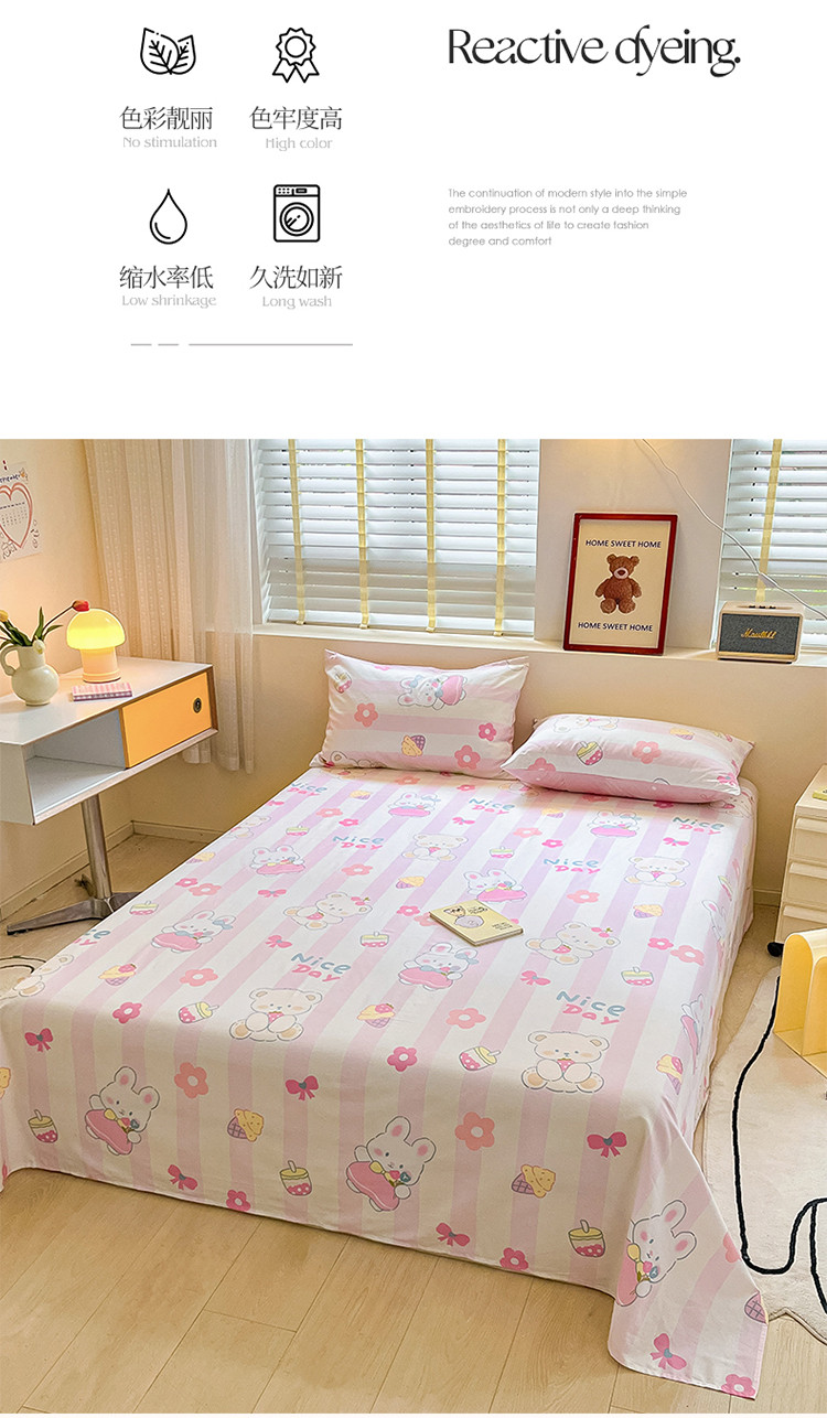 2023新款全棉印花小清新系列-单床单 元气小兔