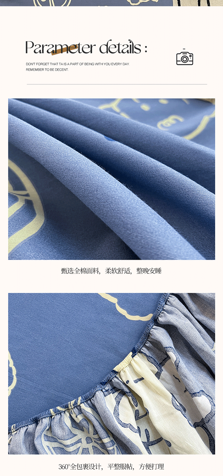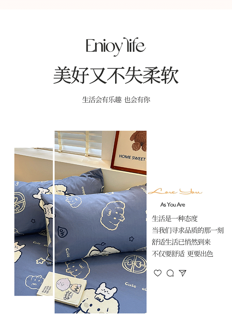 (总)蓝邻家纺 2024新款小清新印花全棉四件套学生宿舍三件套,茶园兔,风翩,机灵兔熊,可妮露,藤蔓兔,筱薇