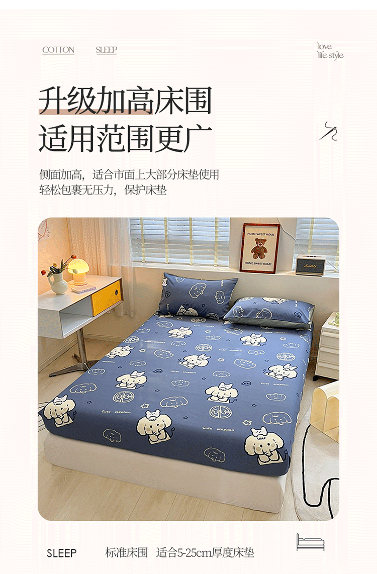 2023年新款全棉印花单品系列-单床笠 甜心小象
