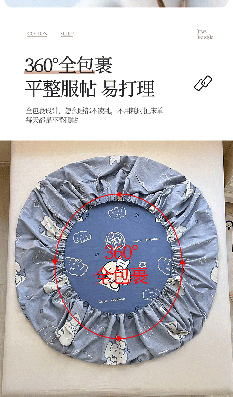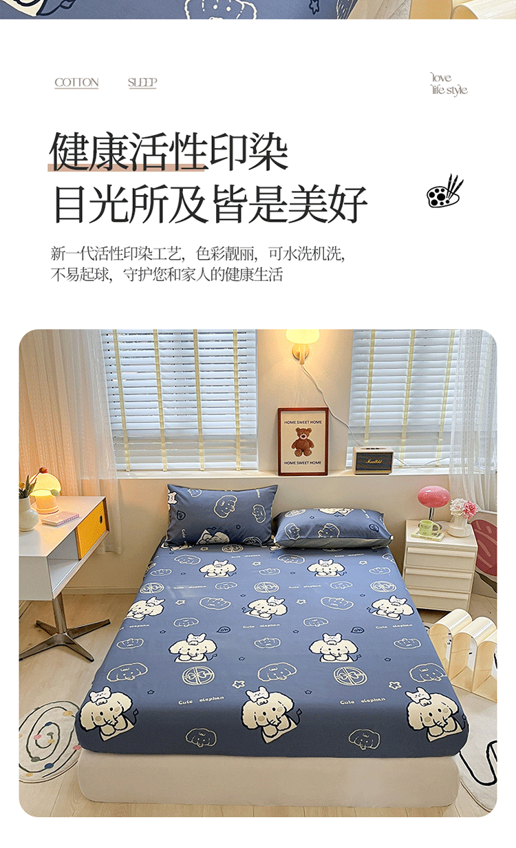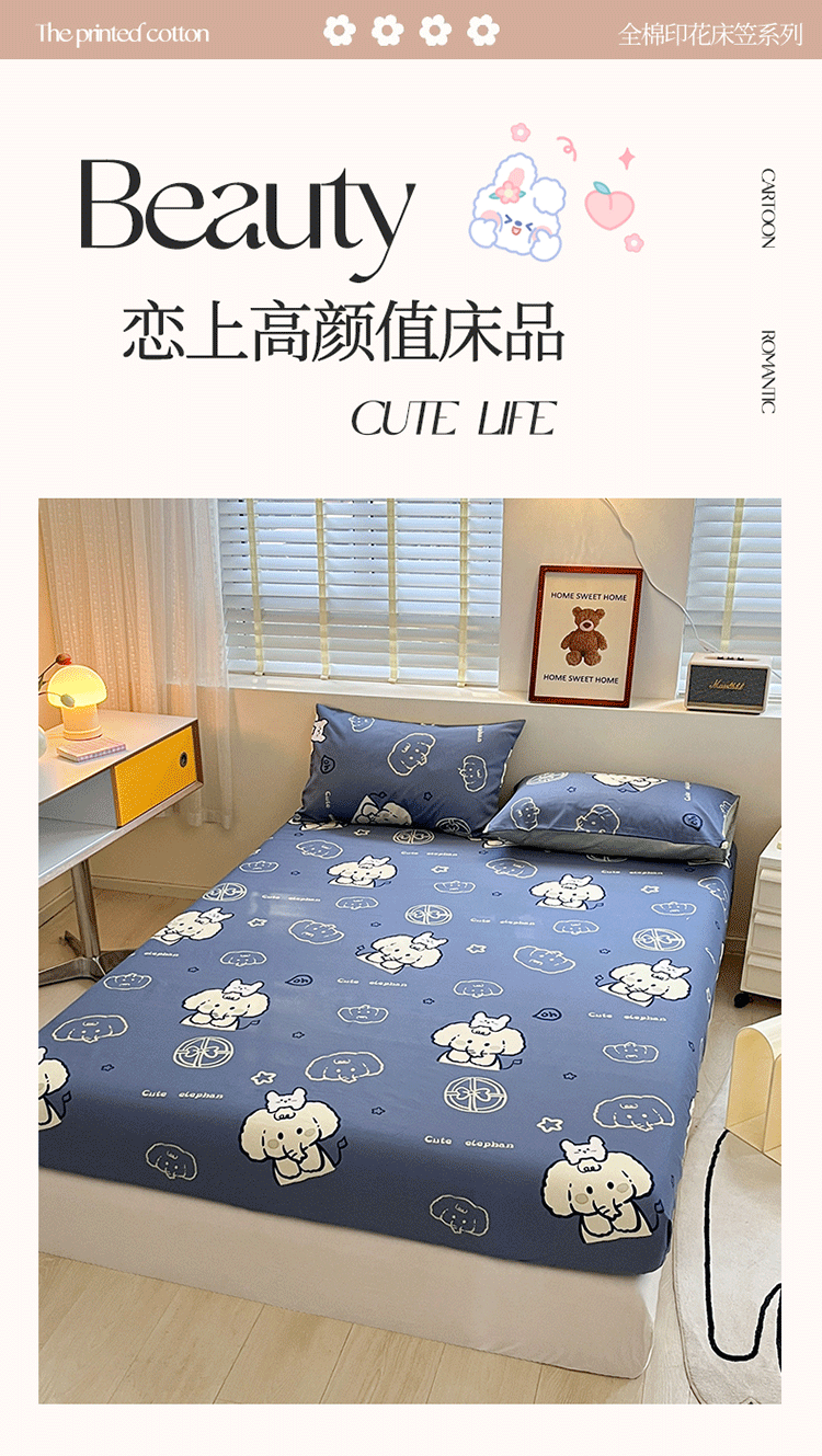 商品名称:2023年新款全棉印花单品系列-单床笠 甜心小象