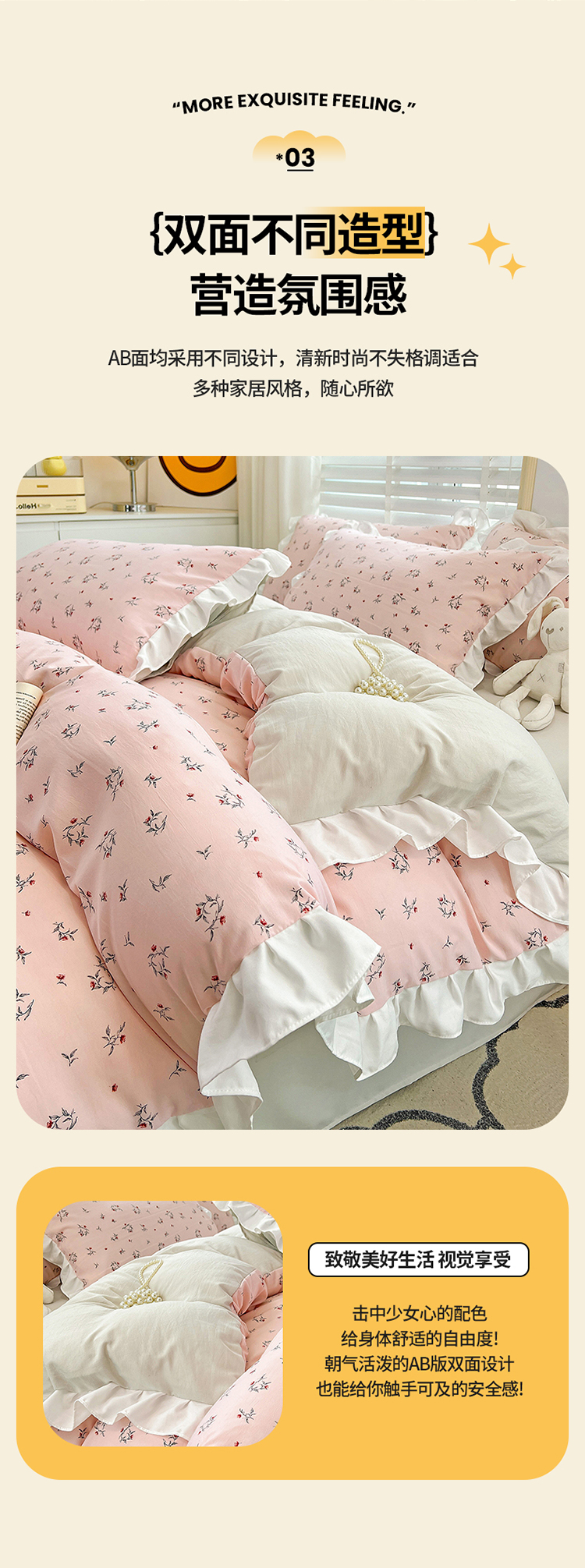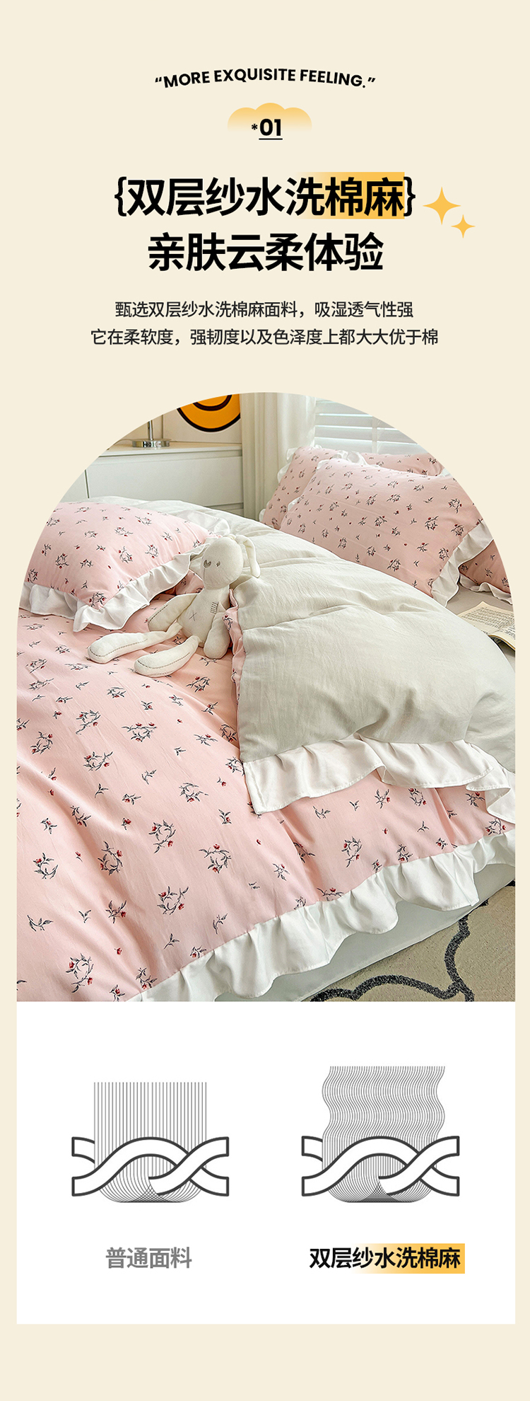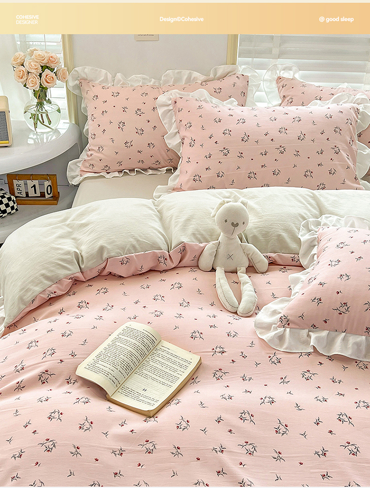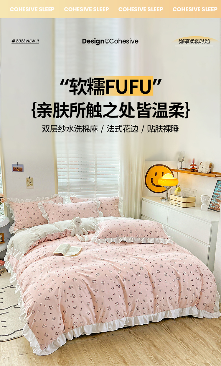 商品名称:澳梵 2023新款【怦然心动】系列-水洗棉麻双层纱四件套 达菲庄园