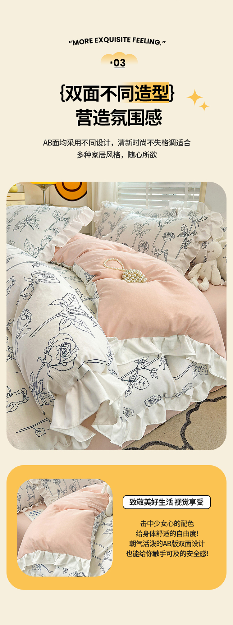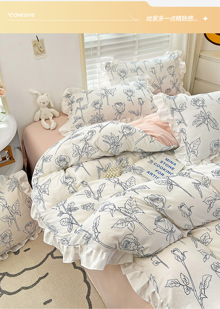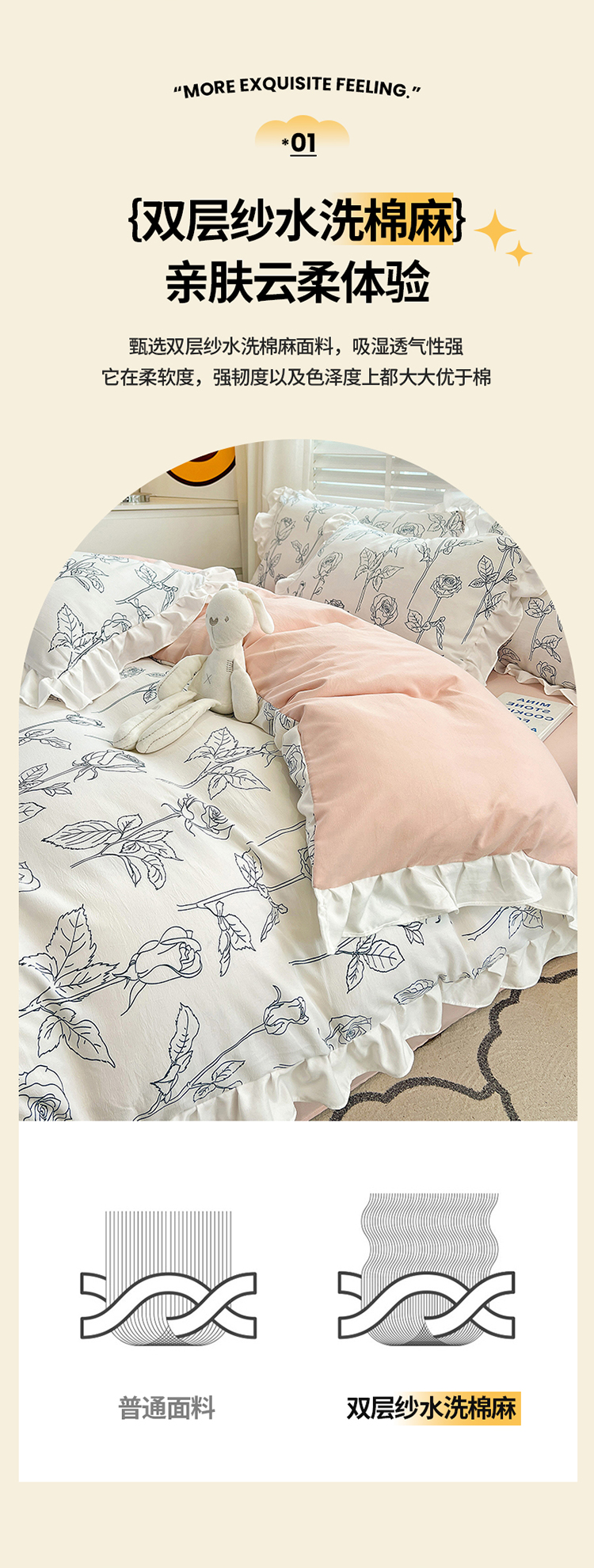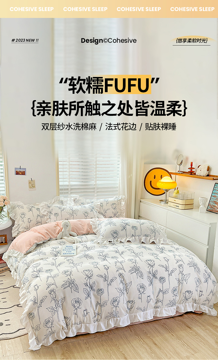 商品名称:澳梵 2023新款【怦然心动】系列-水洗棉麻双层纱四件套 情书