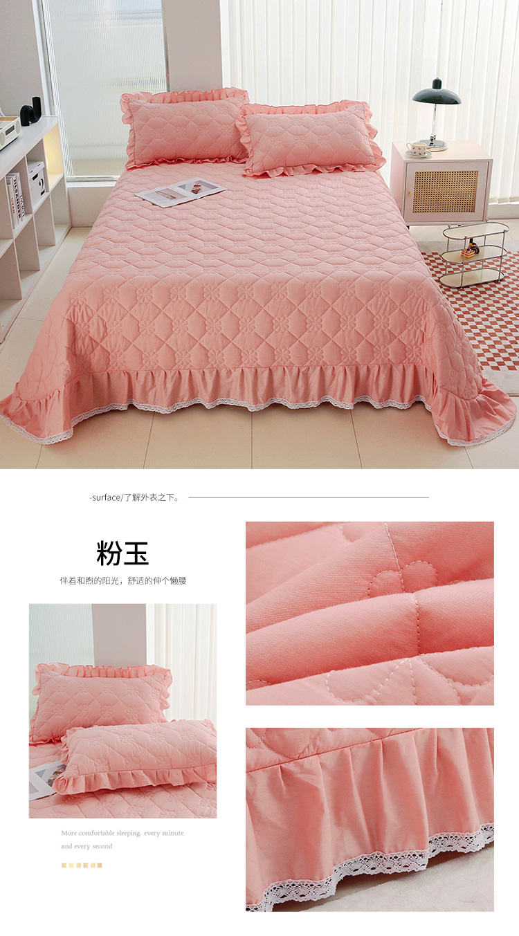 • 91家纺网 家纺一手货源 找家纺 情煊家纺 2023新款全棉夹棉纯色床盖三件套(可定制尺寸) 粉玉