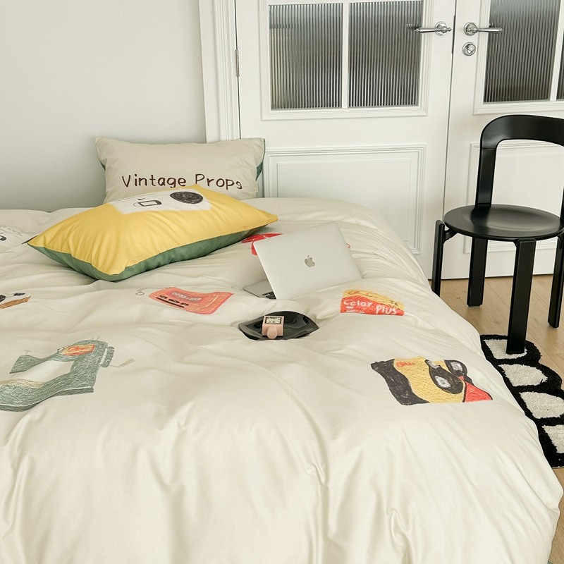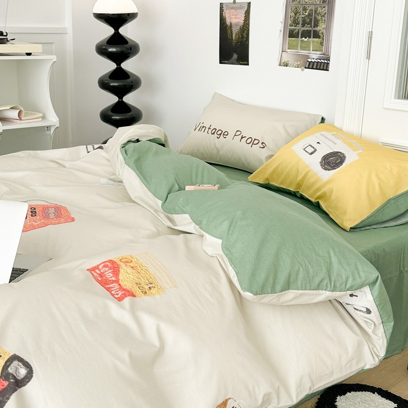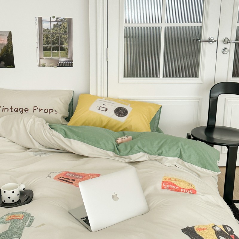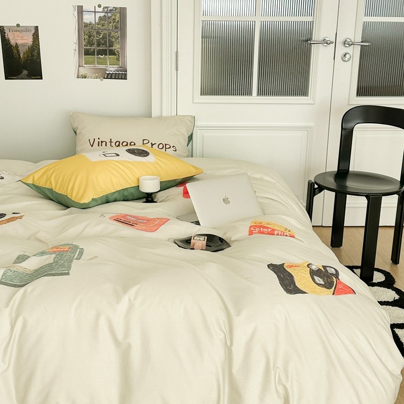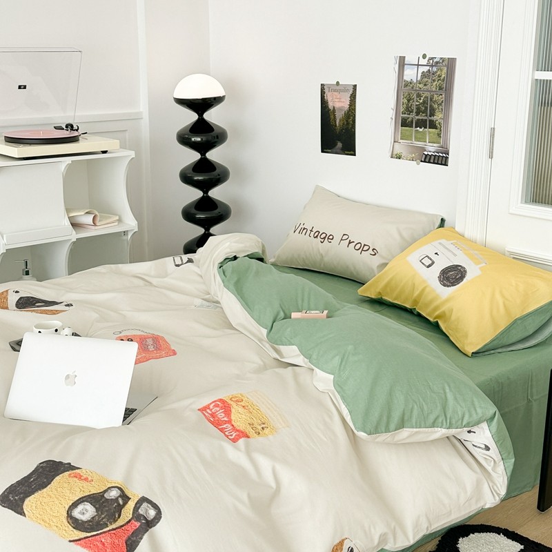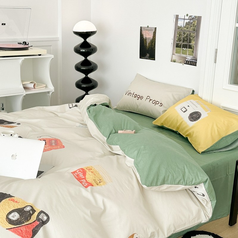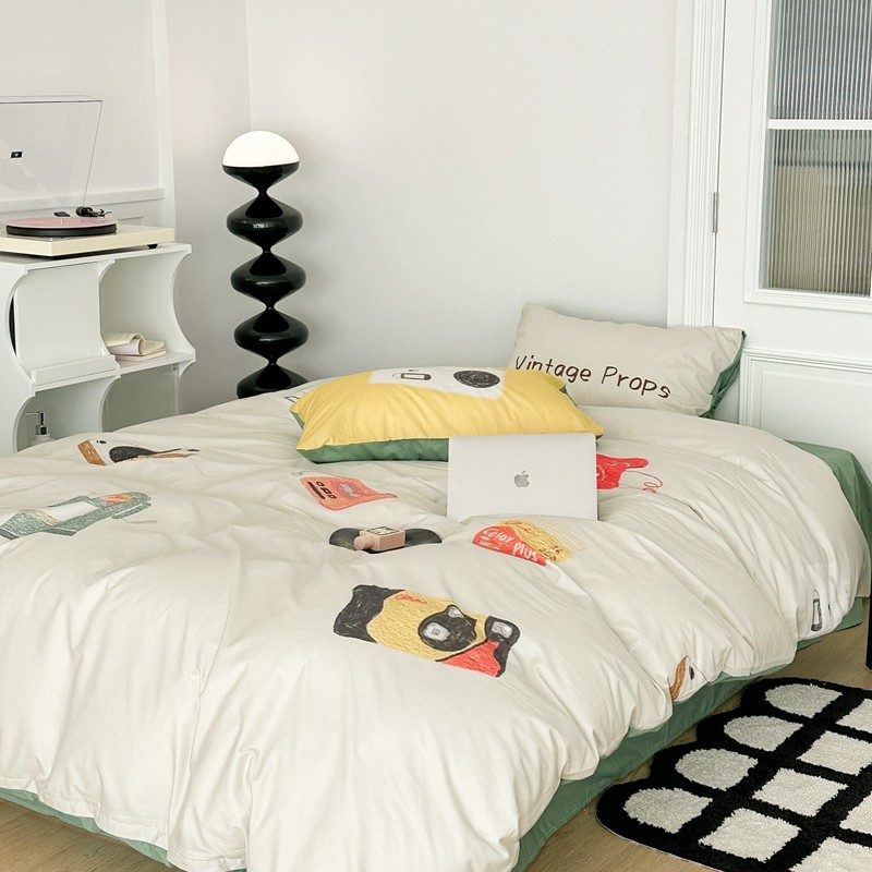 (总)昔可 2023新款学生季卡通普通款四件套,彩色气球熊,彩条恐龙,憨憨熊,花蜜小兔,蘑菇兔,圈圈草莓,蔬菜小兔,郁金香小萌狗