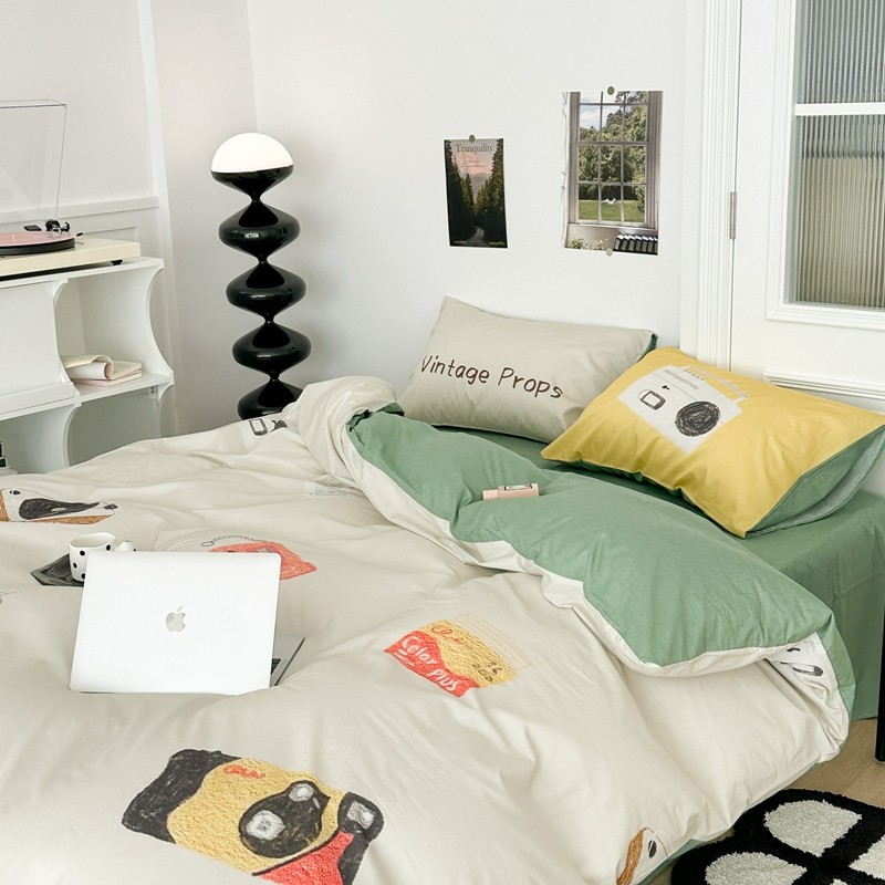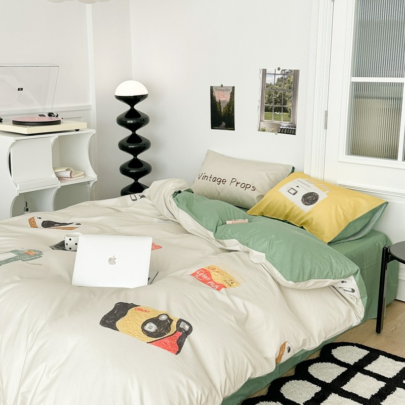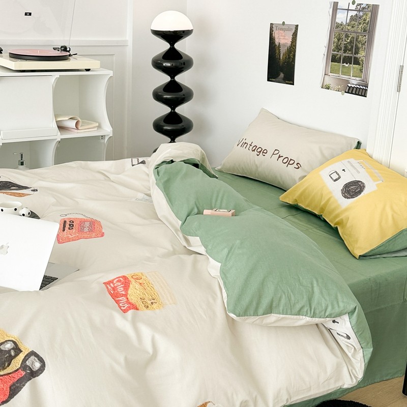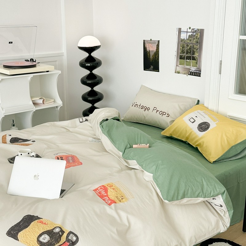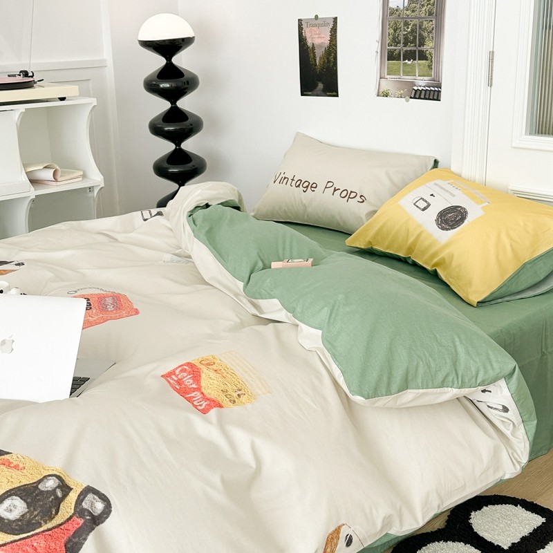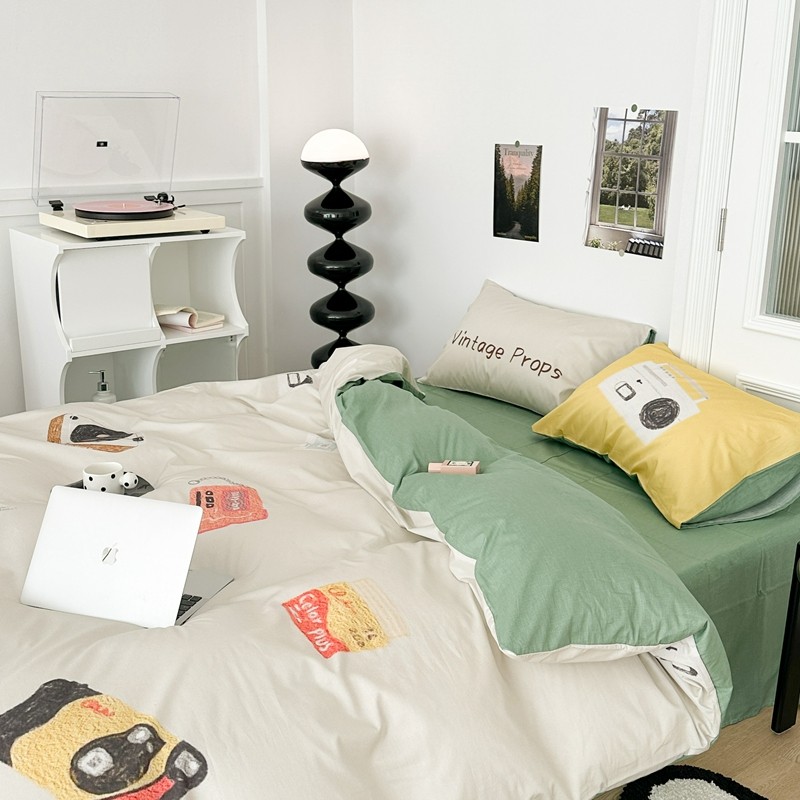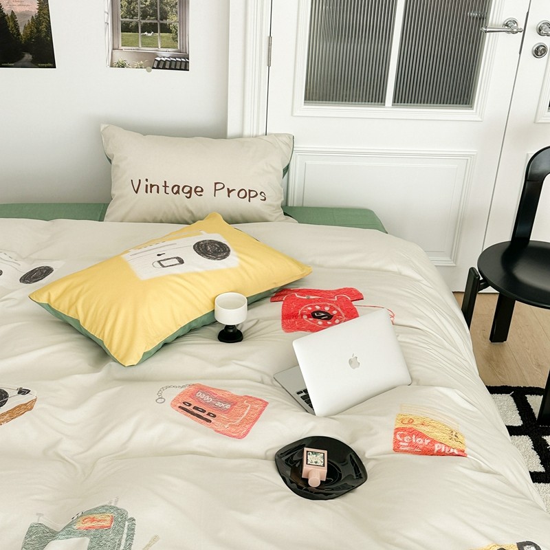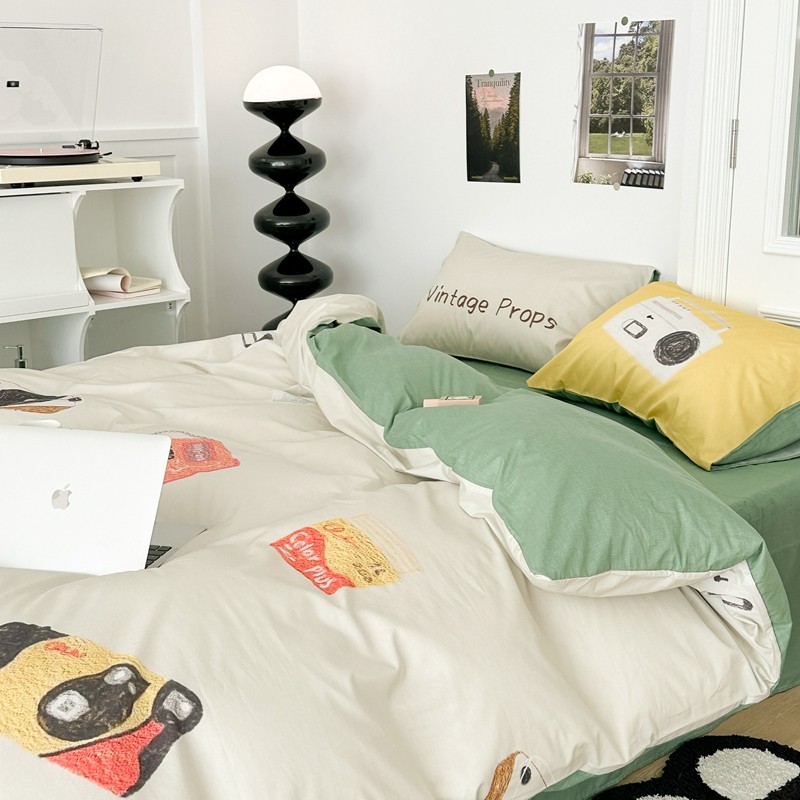 (总)昔可 2023新款学生季卡通普通款四件套,彩色气球熊,彩条恐龙,憨憨熊,花蜜小兔,蘑菇兔,圈圈草莓,蔬菜小兔,郁金香小萌狗