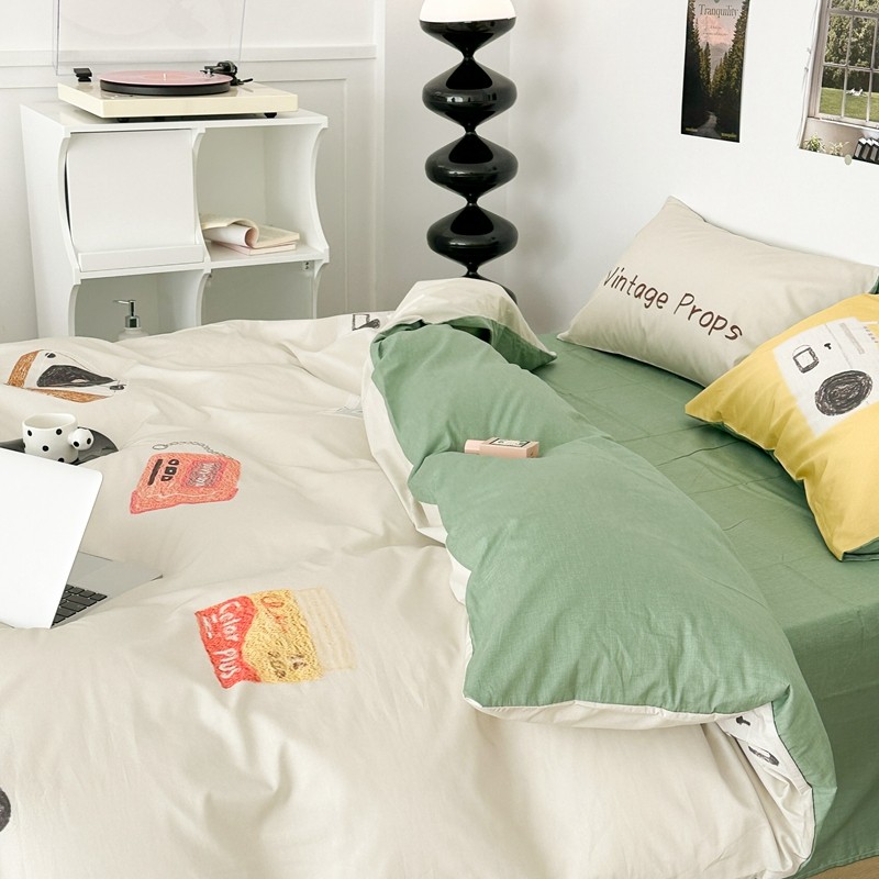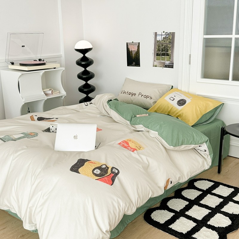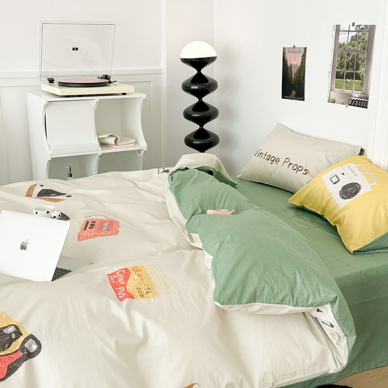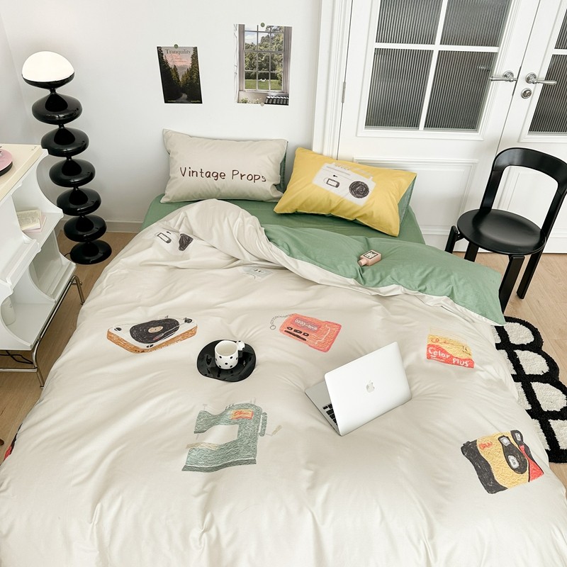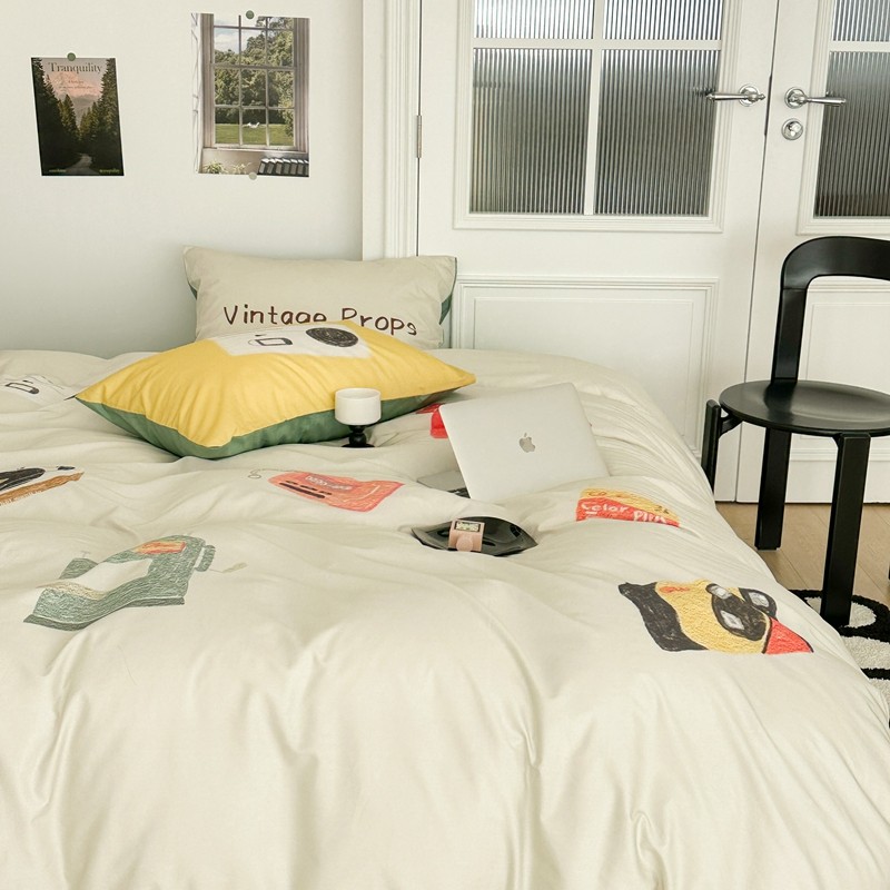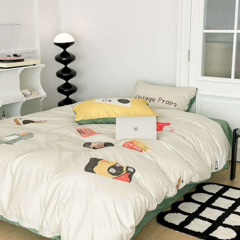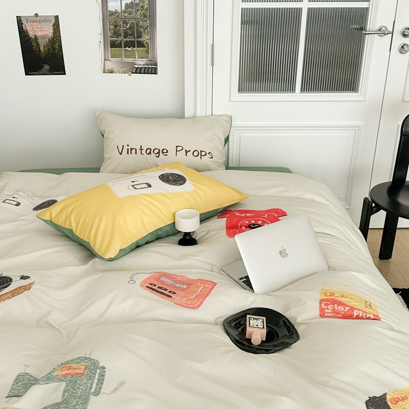 (总)昔可 2023新款学生季卡通普通款四件套,彩色气球熊,彩条恐龙,憨憨熊,花蜜小兔,蘑菇兔,圈圈草莓,蔬菜小兔,郁金香小萌狗