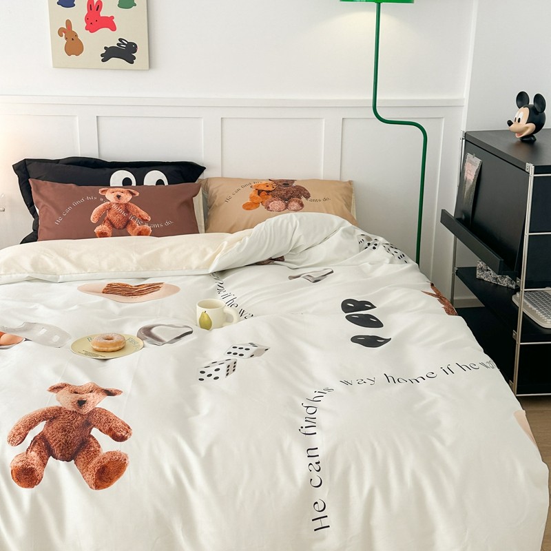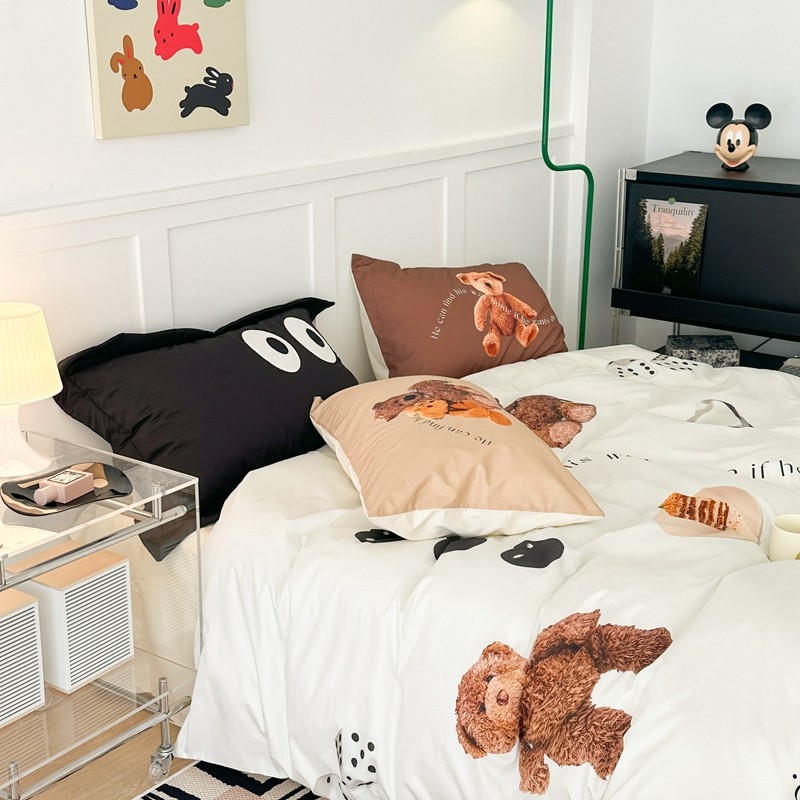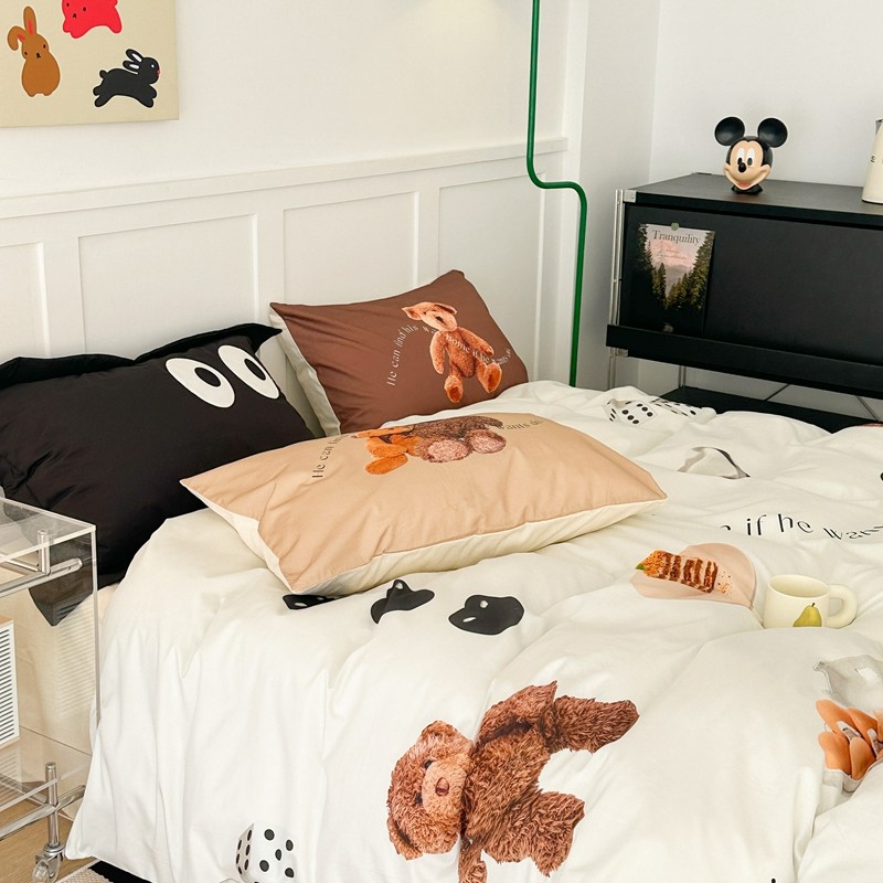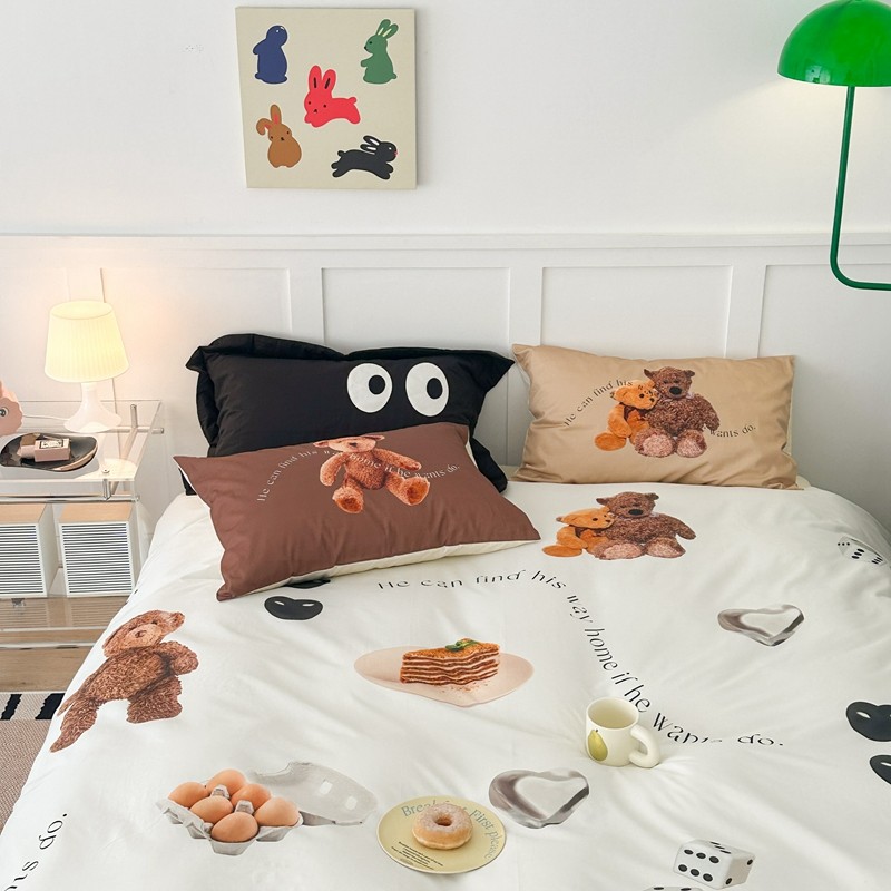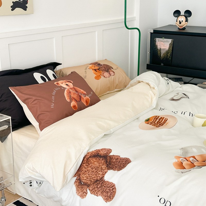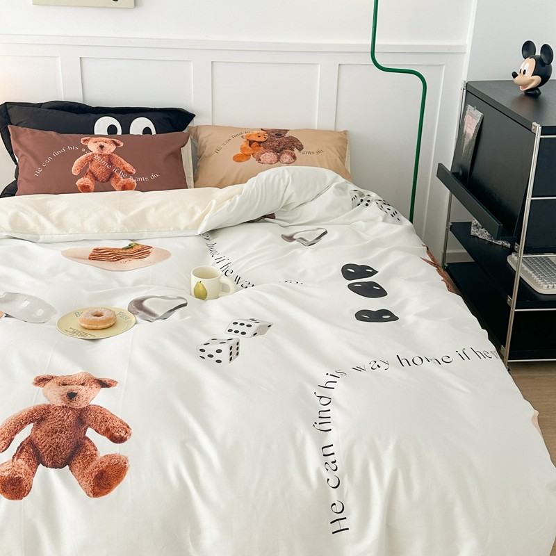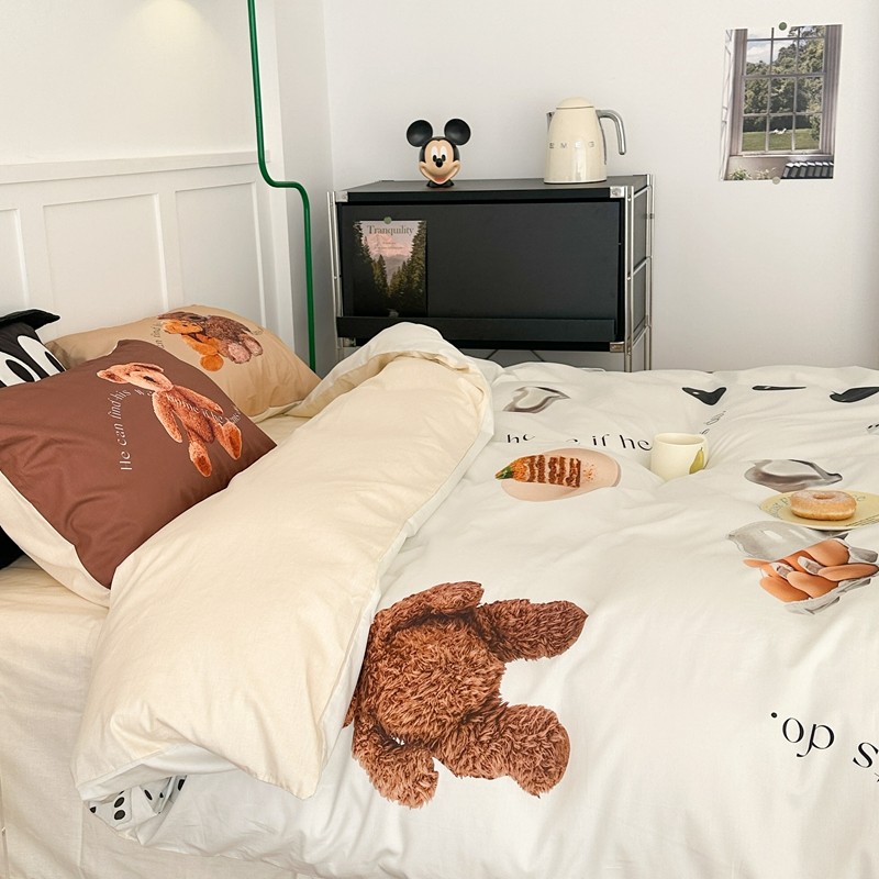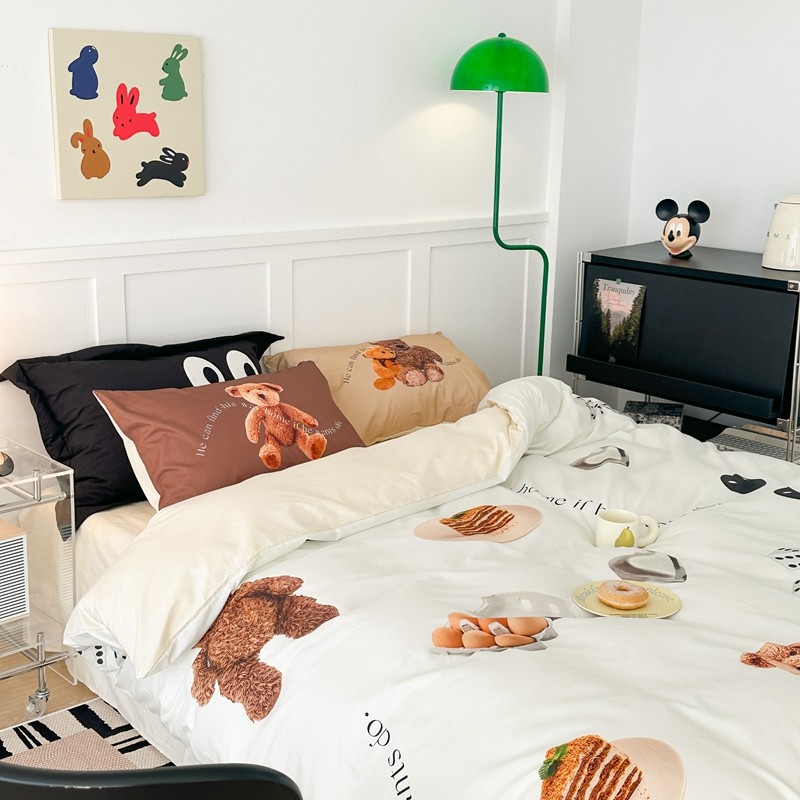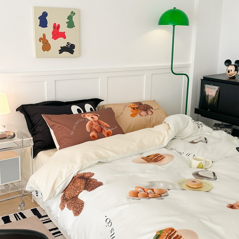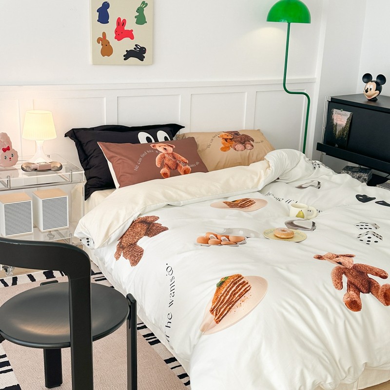 (总)昔可 2023新款学生季卡通普通款四件套,彩色气球熊,彩条恐龙,憨憨熊,花蜜小兔,蘑菇兔,圈圈草莓,蔬菜小兔,郁金香小萌狗