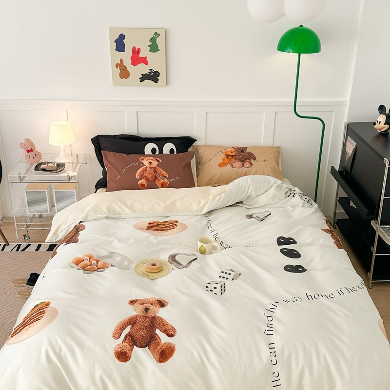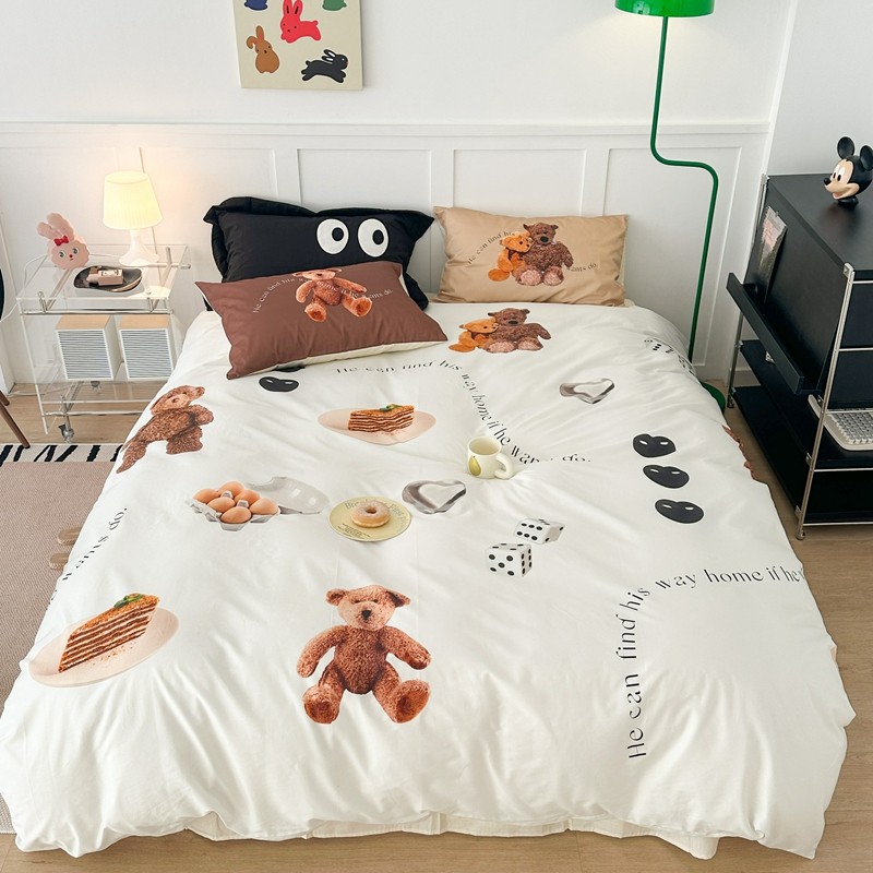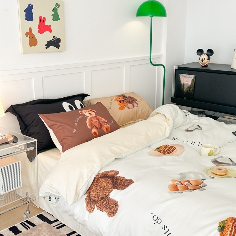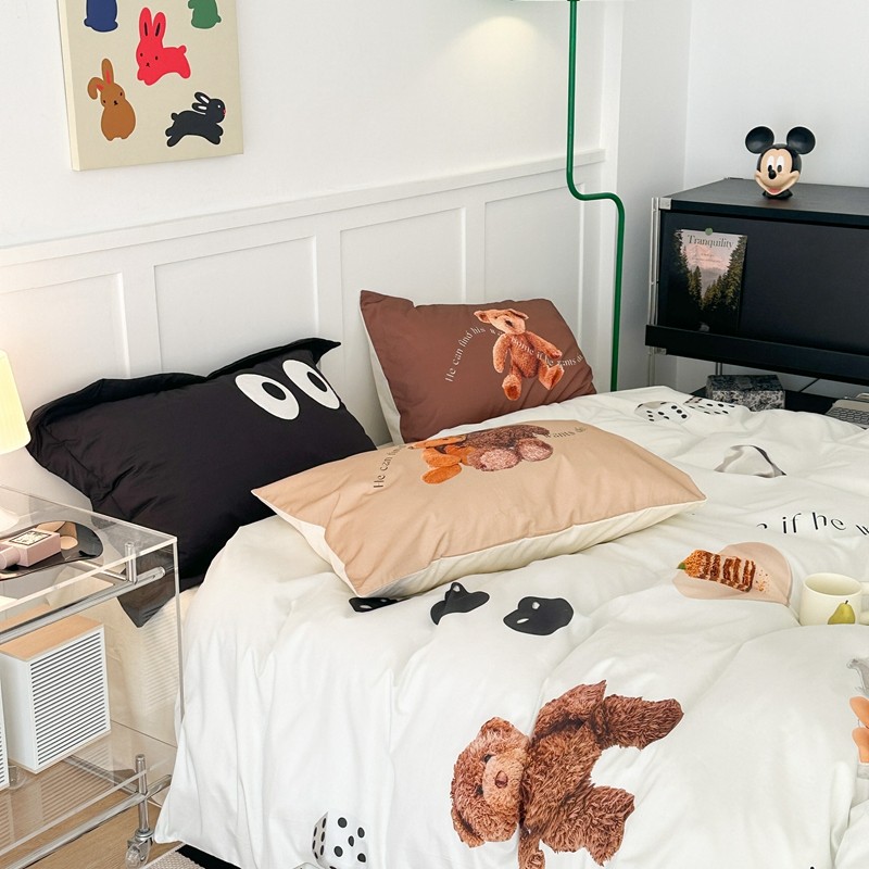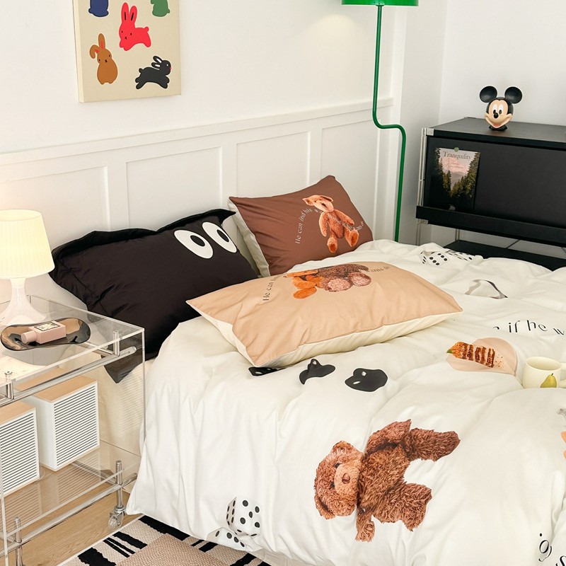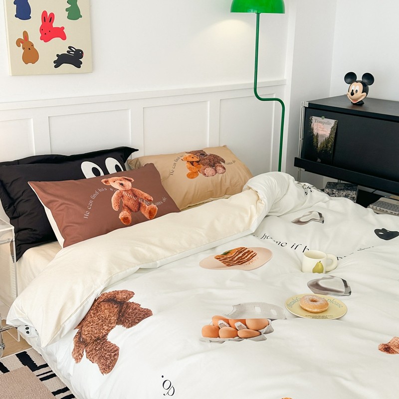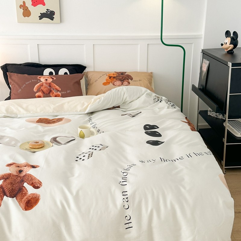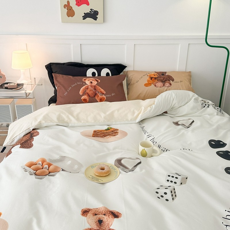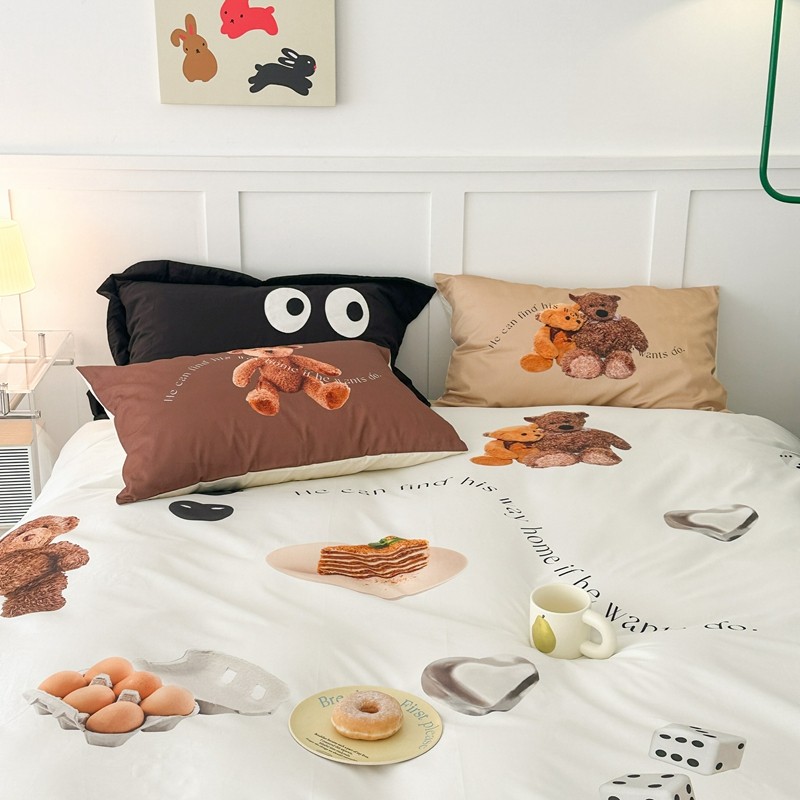 (总)昔可 2023新款学生季卡通普通款四件套,彩色气球熊,彩条恐龙,憨憨熊,花蜜小兔,蘑菇兔,圈圈草莓,蔬菜小兔,郁金香小萌狗