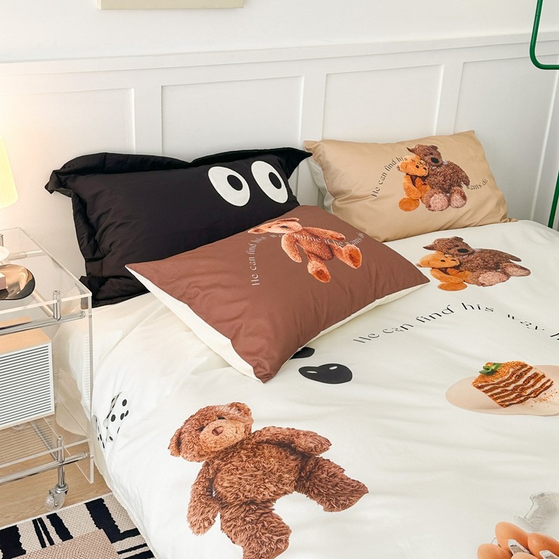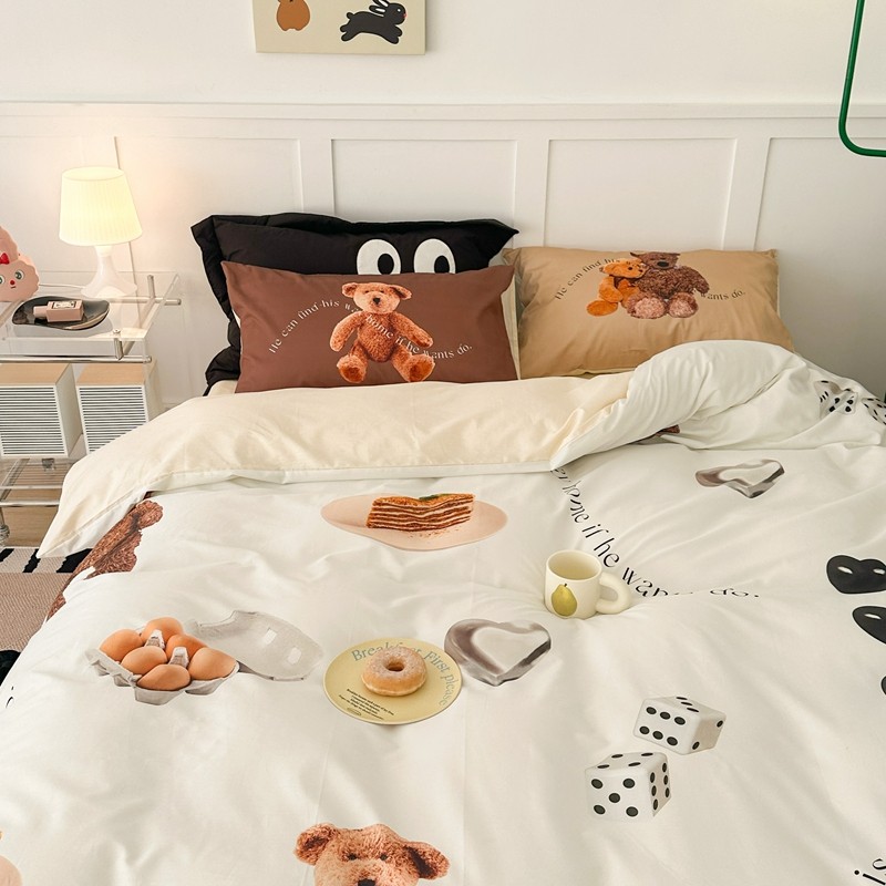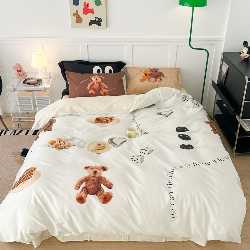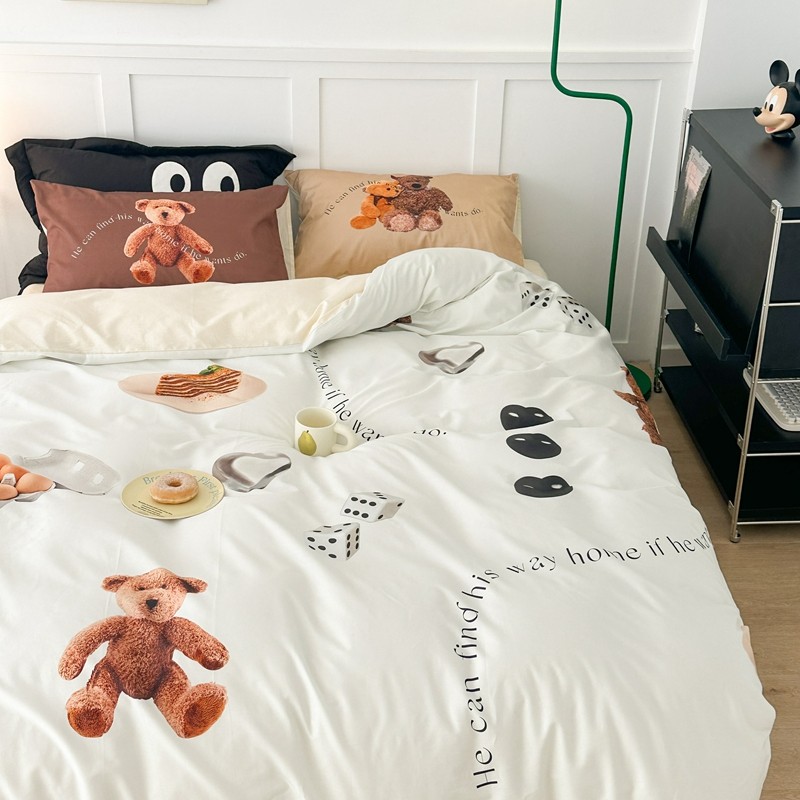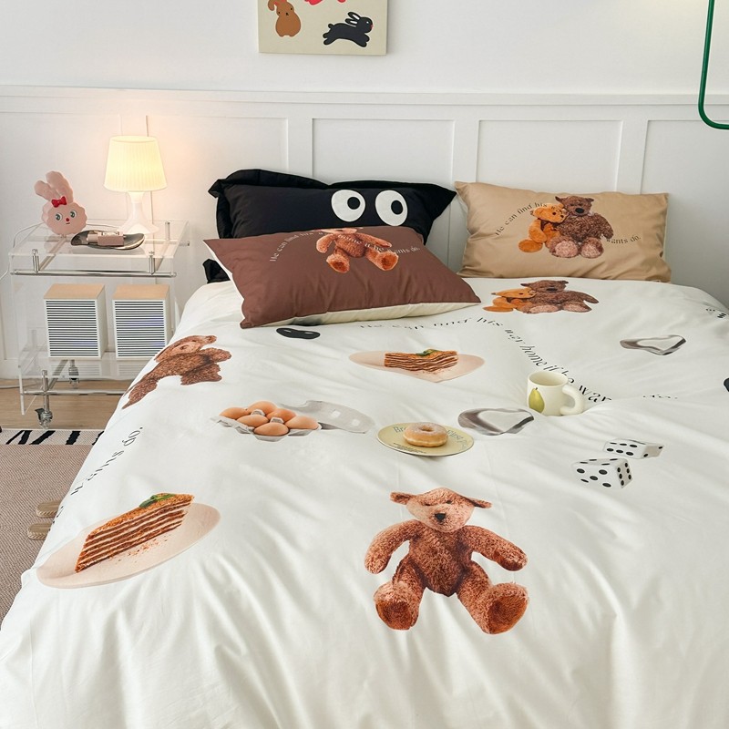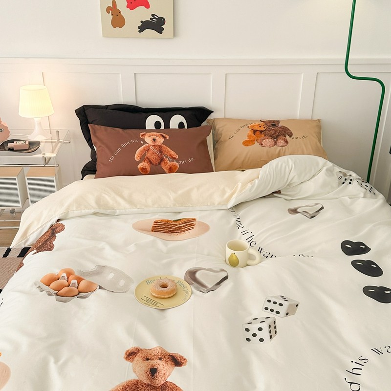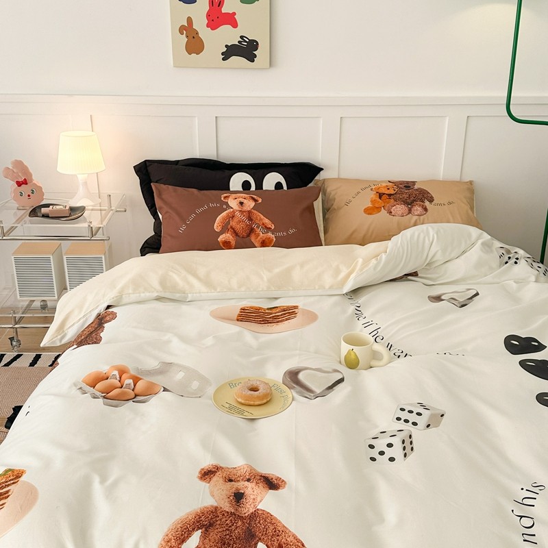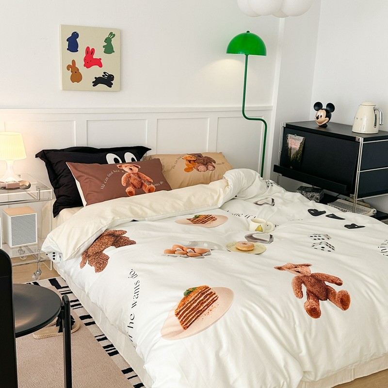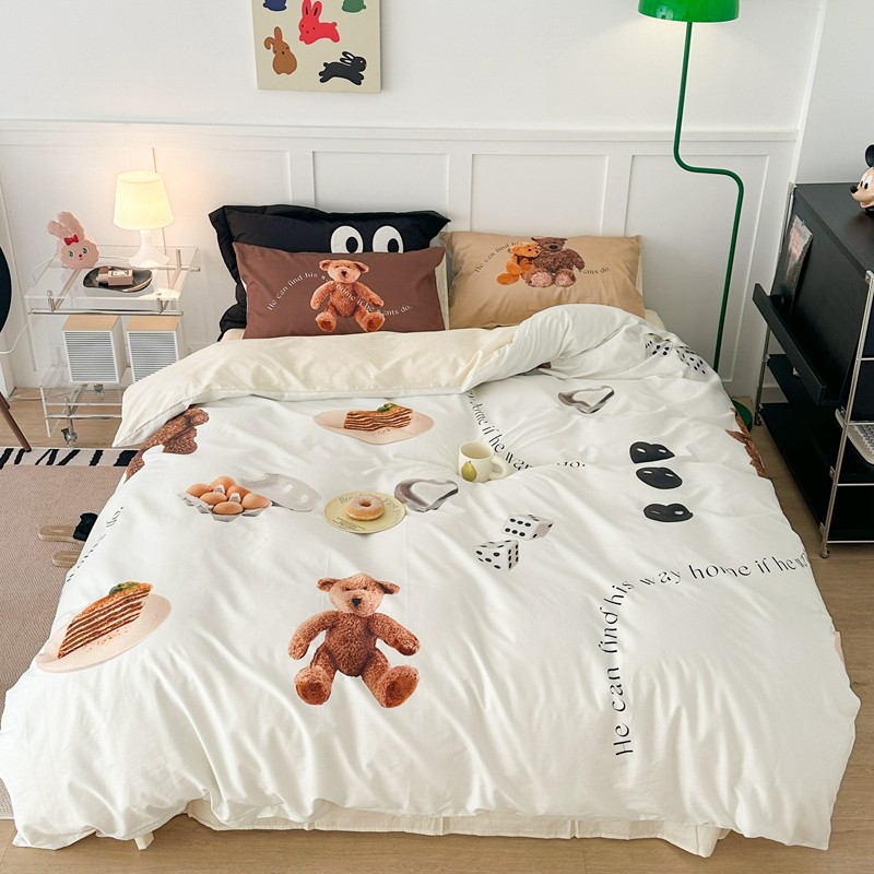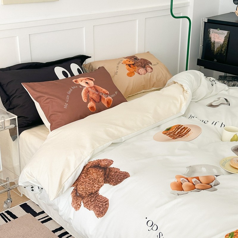 (总)昔可 2023新款学生季卡通普通款四件套,彩色气球熊,彩条恐龙,憨憨熊,花蜜小兔,蘑菇兔,圈圈草莓,蔬菜小兔,郁金香小萌狗