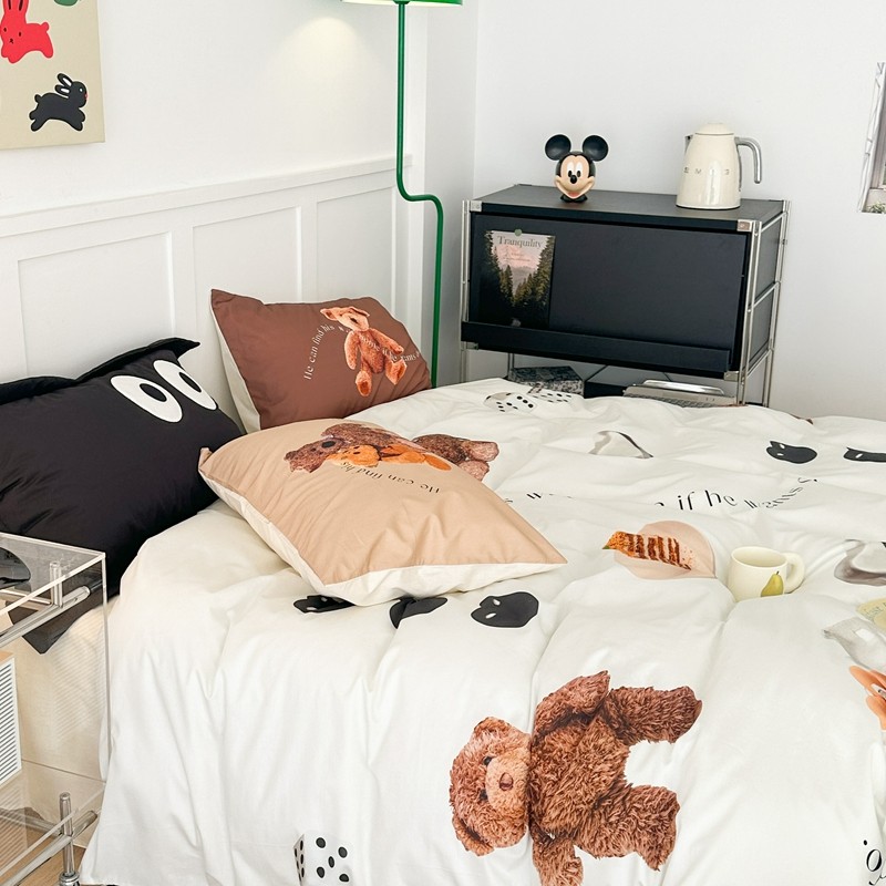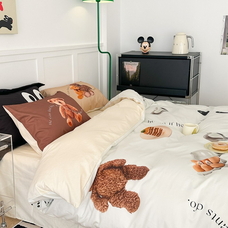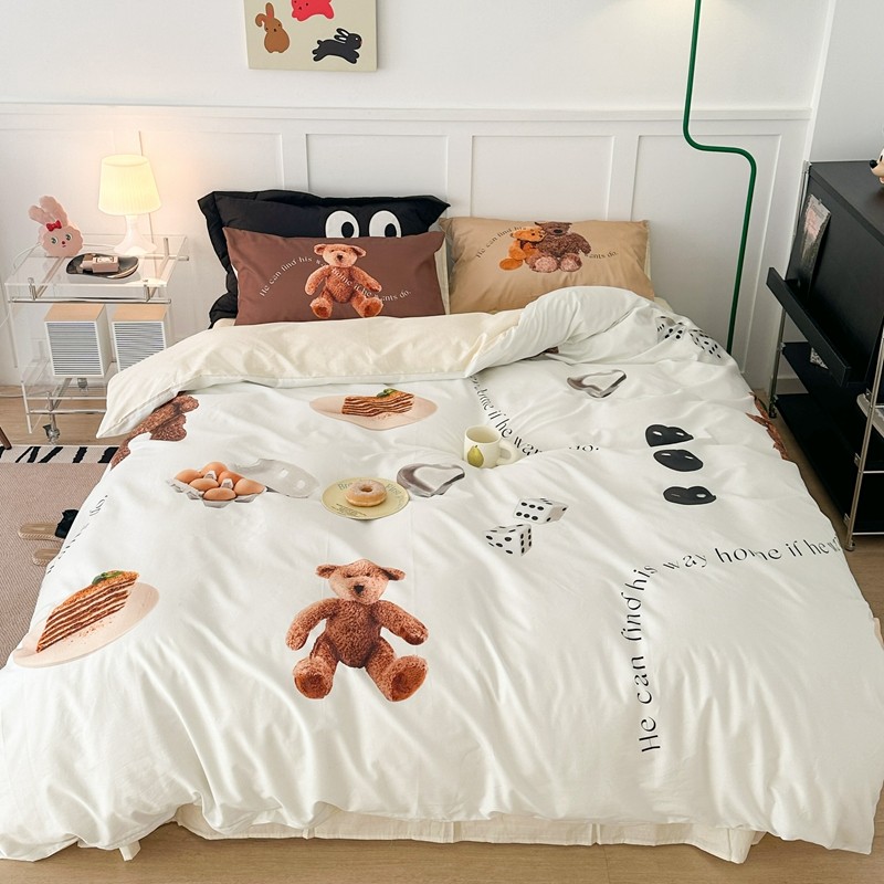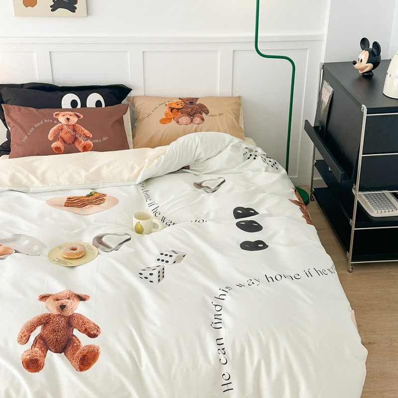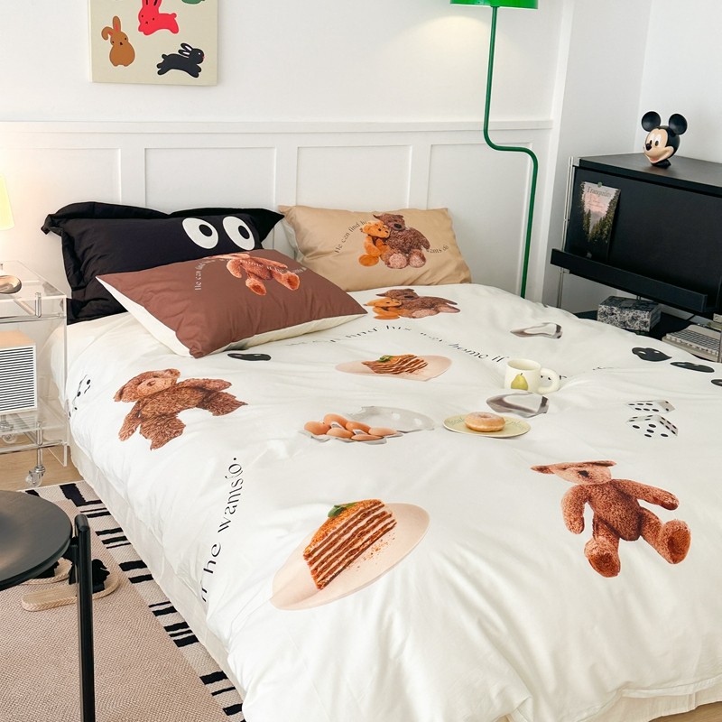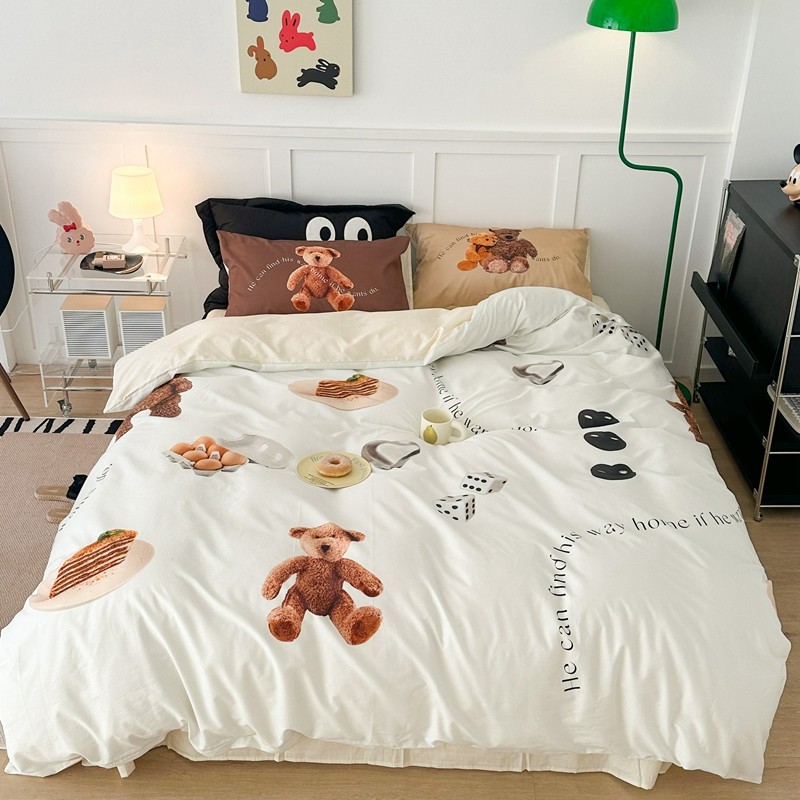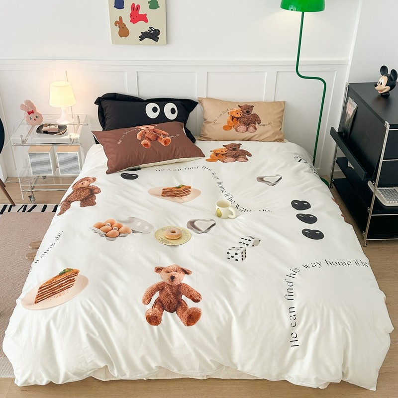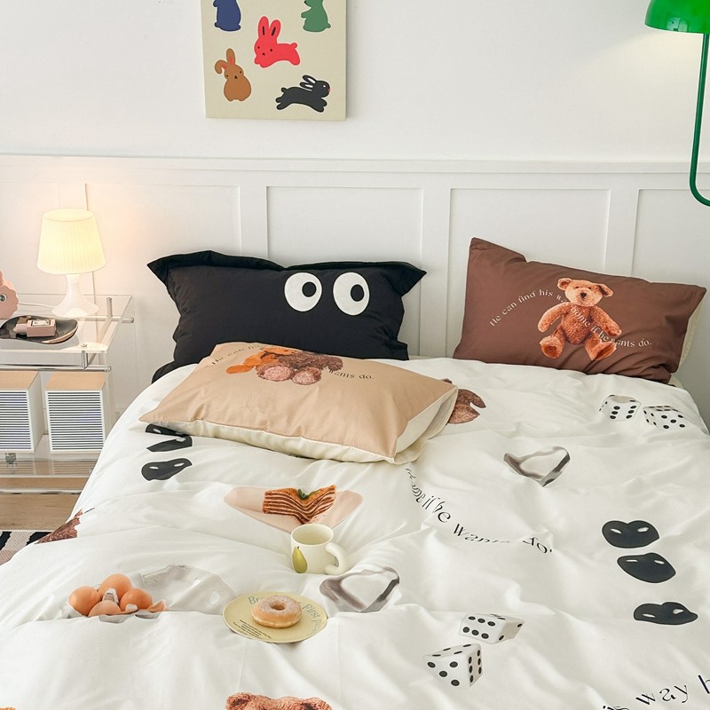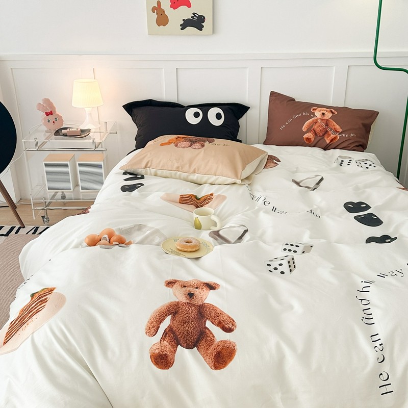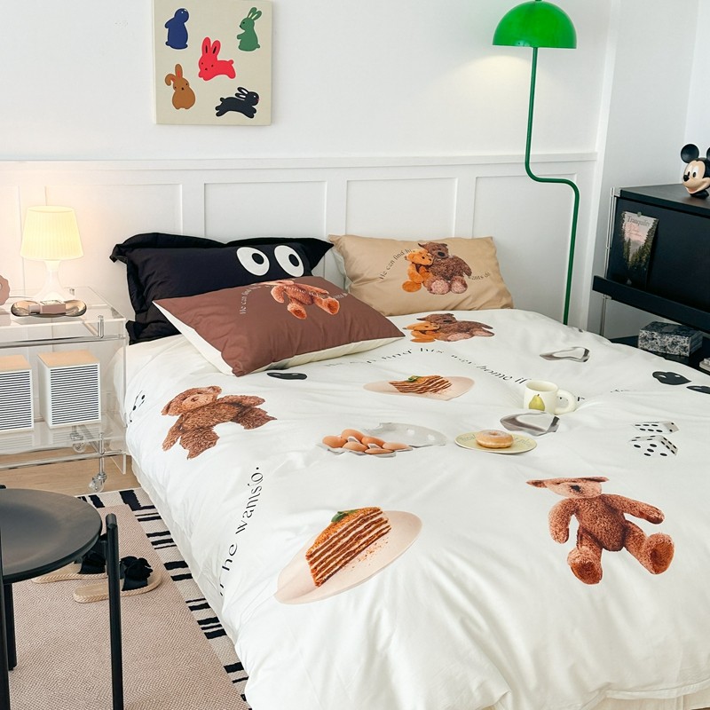 (总)昔可 2023新款学生季卡通普通款四件套,彩色气球熊,彩条恐龙,憨憨熊,花蜜小兔,蘑菇兔,圈圈草莓,蔬菜小兔,郁金香小萌狗