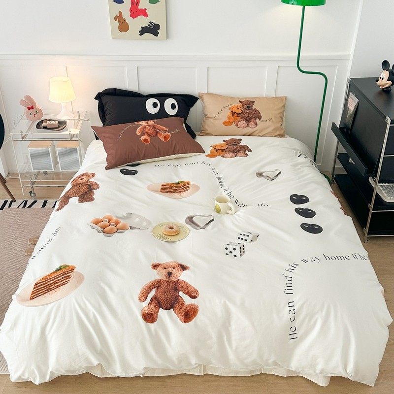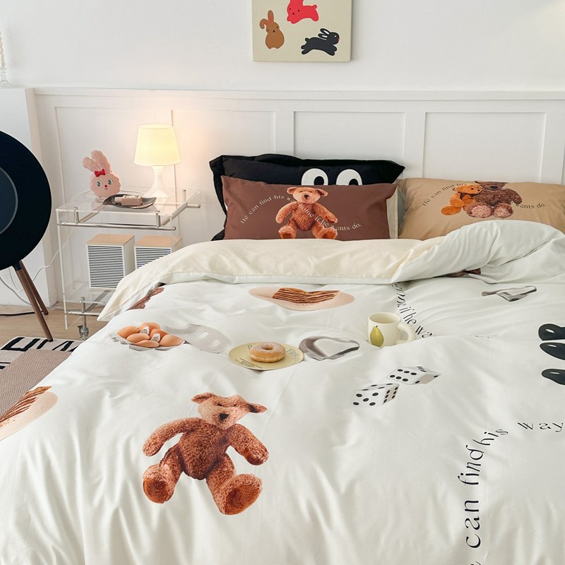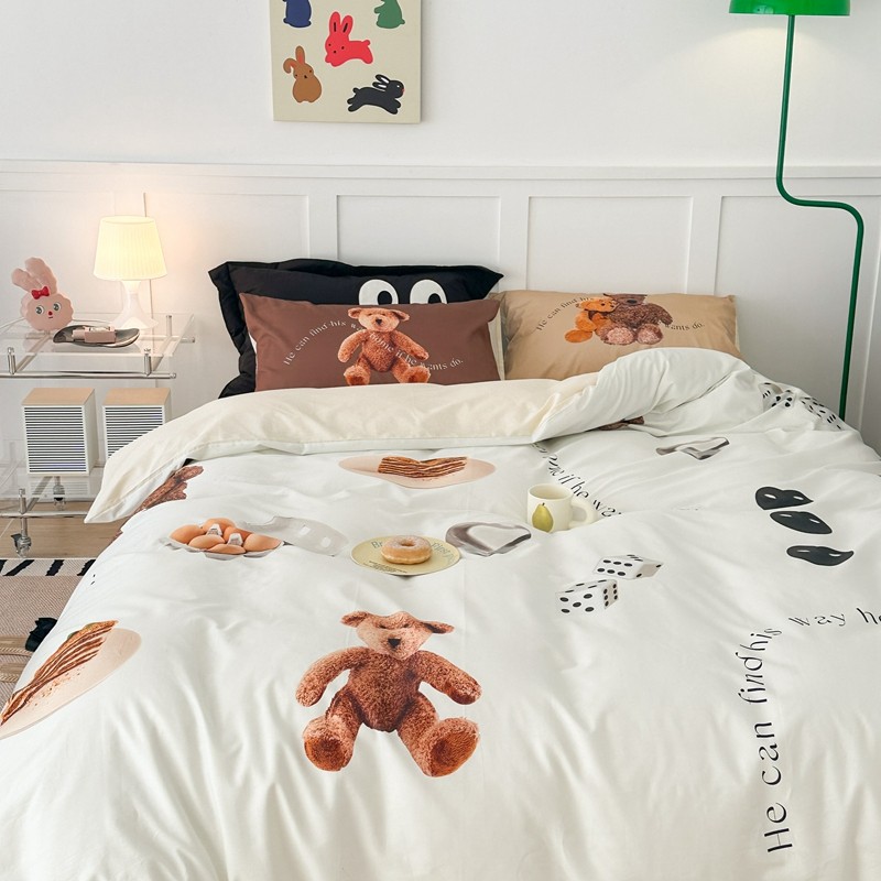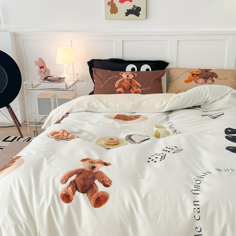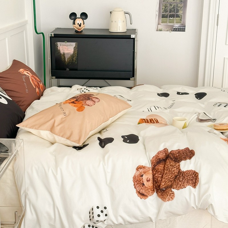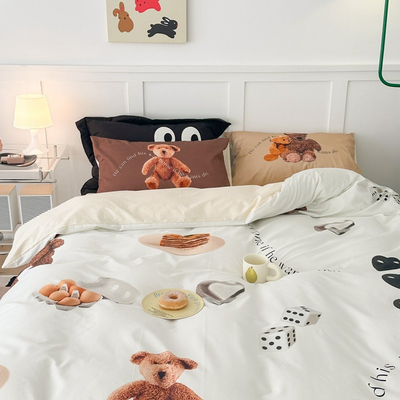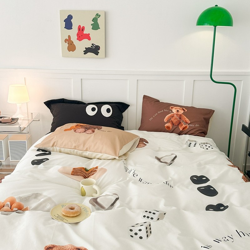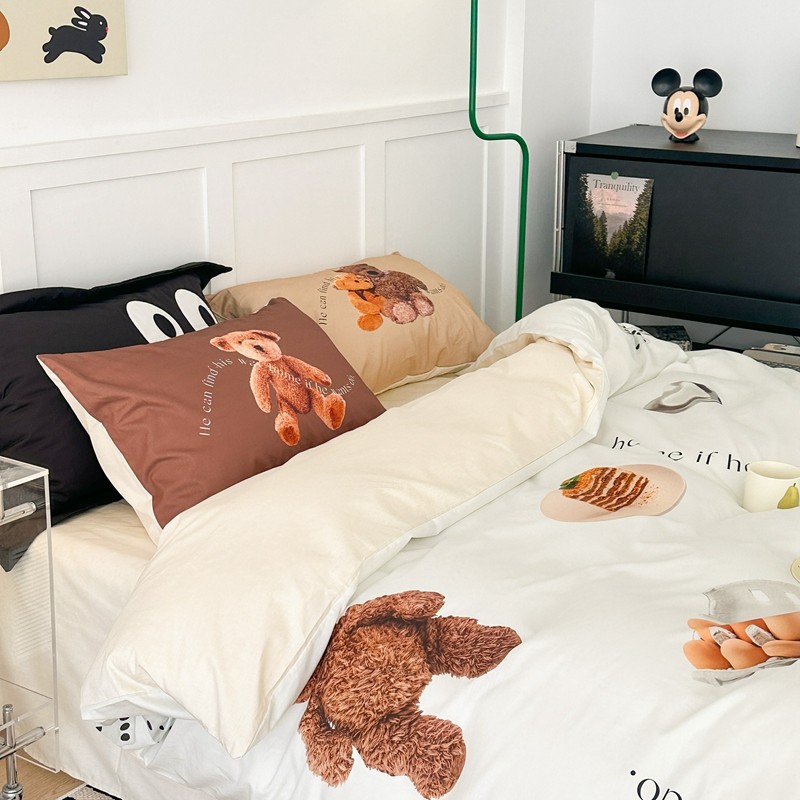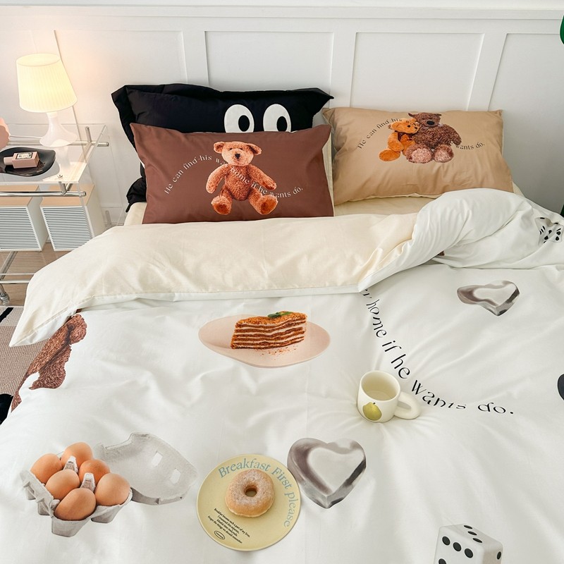 (总)昔可 2023新款学生季卡通普通款四件套,彩色气球熊,彩条恐龙,憨憨熊,花蜜小兔,蘑菇兔,圈圈草莓,蔬菜小兔,郁金香小萌狗