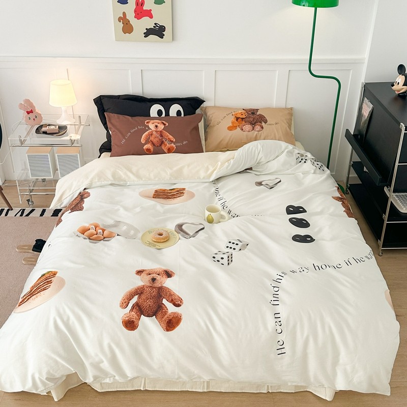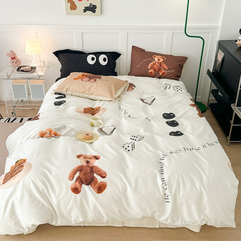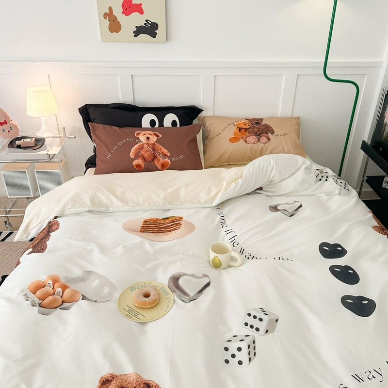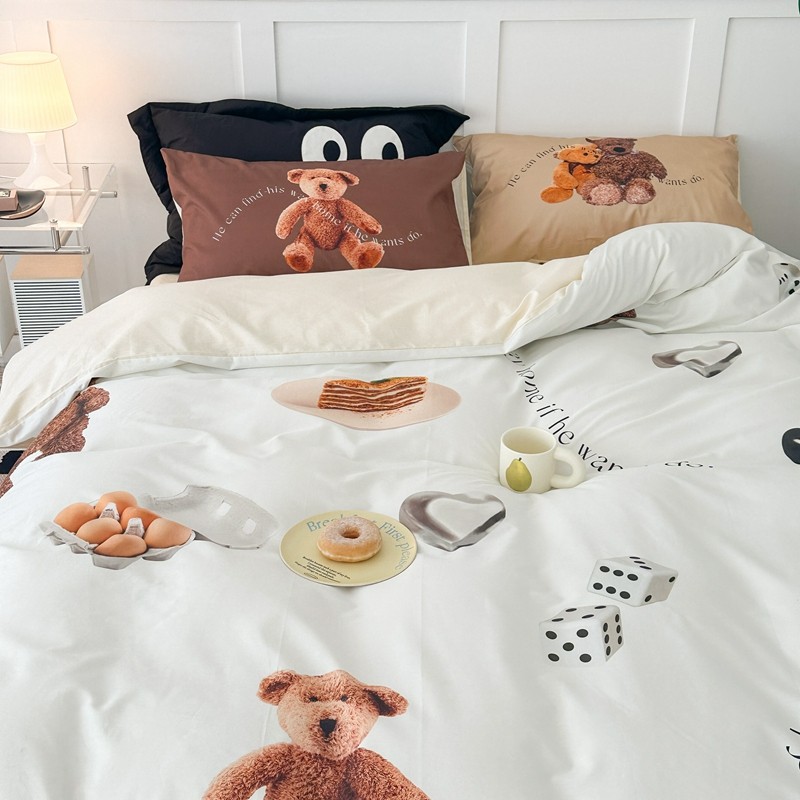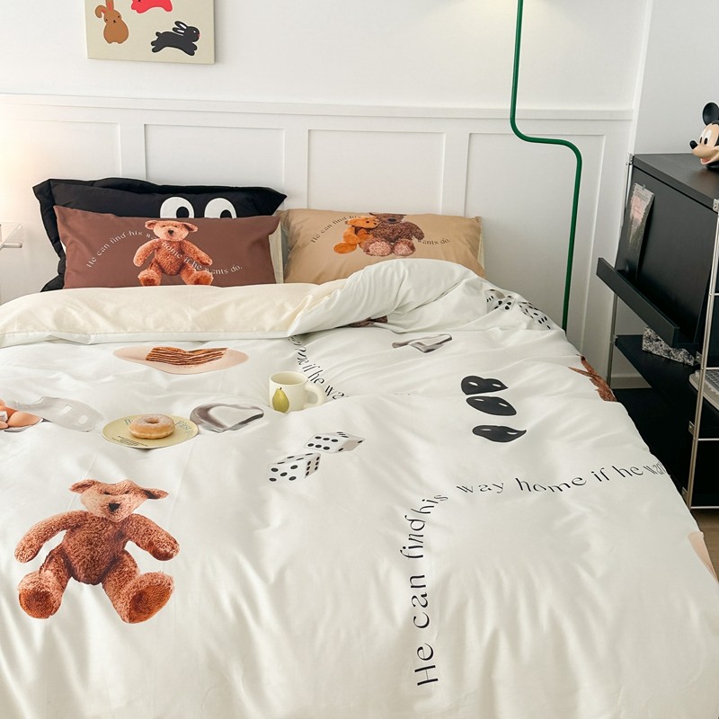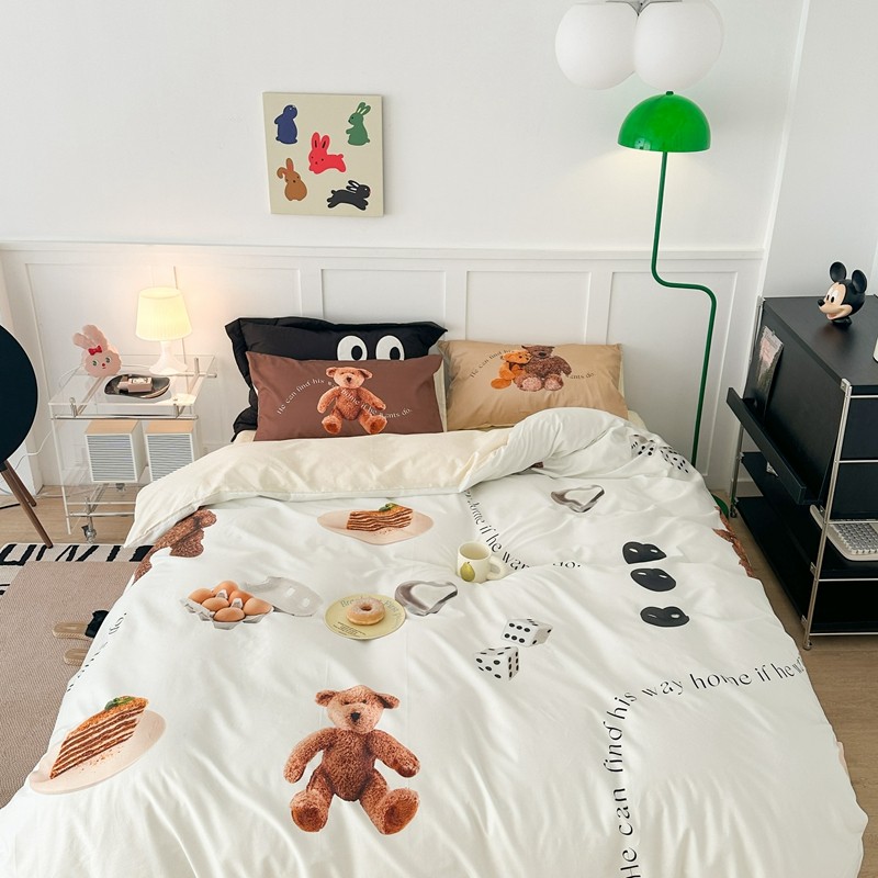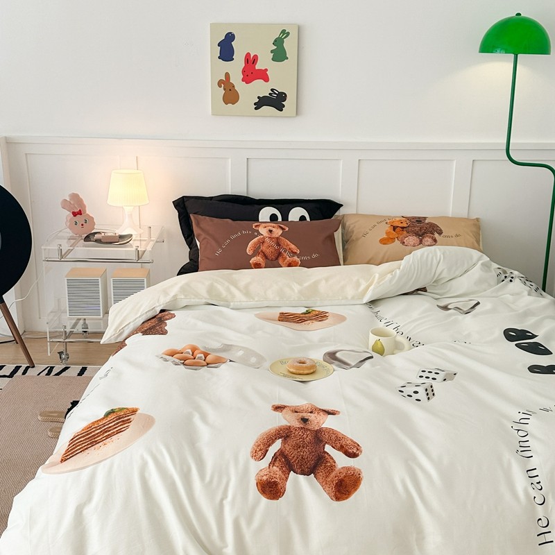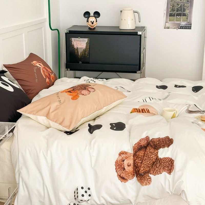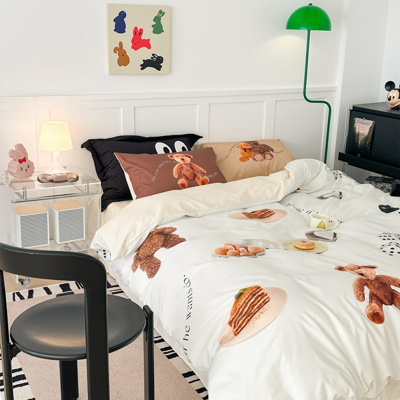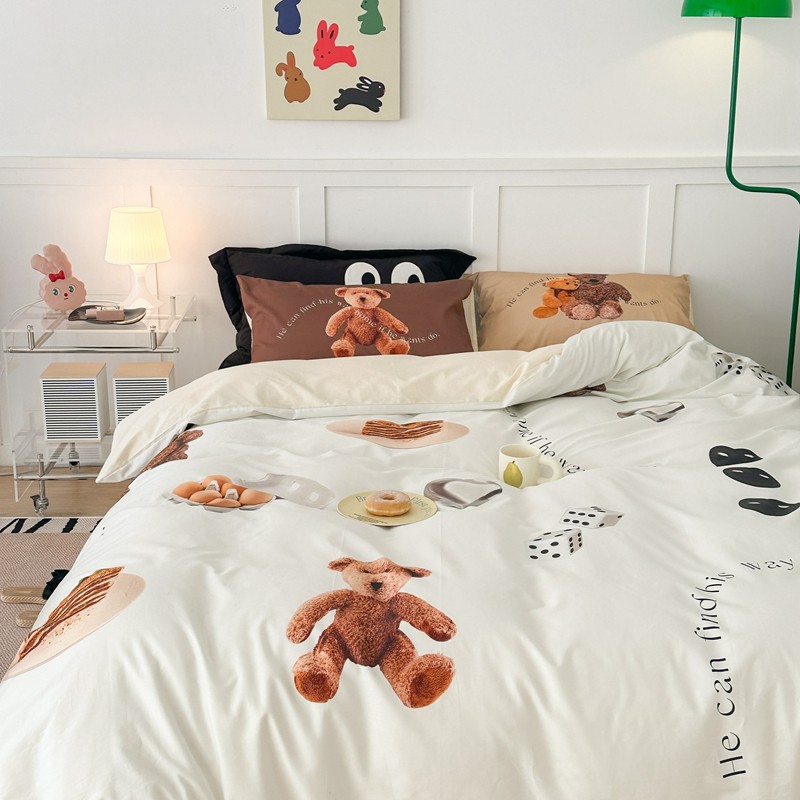 (总)昔可 2023新款学生季卡通普通款四件套,彩色气球熊,彩条恐龙,憨憨熊,花蜜小兔,蘑菇兔,圈圈草莓,蔬菜小兔,郁金香小萌狗