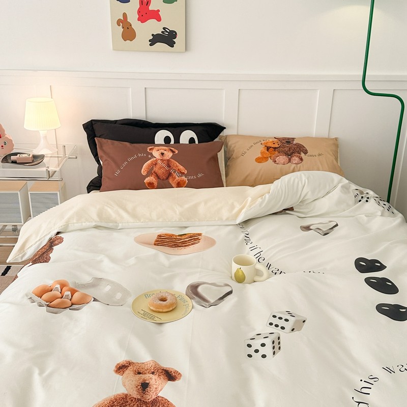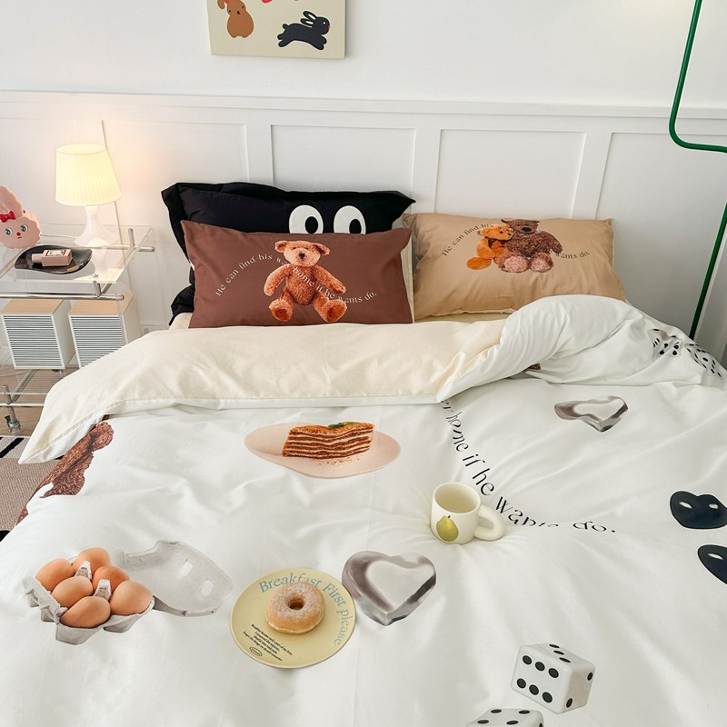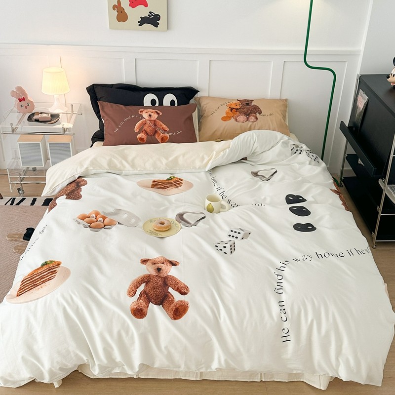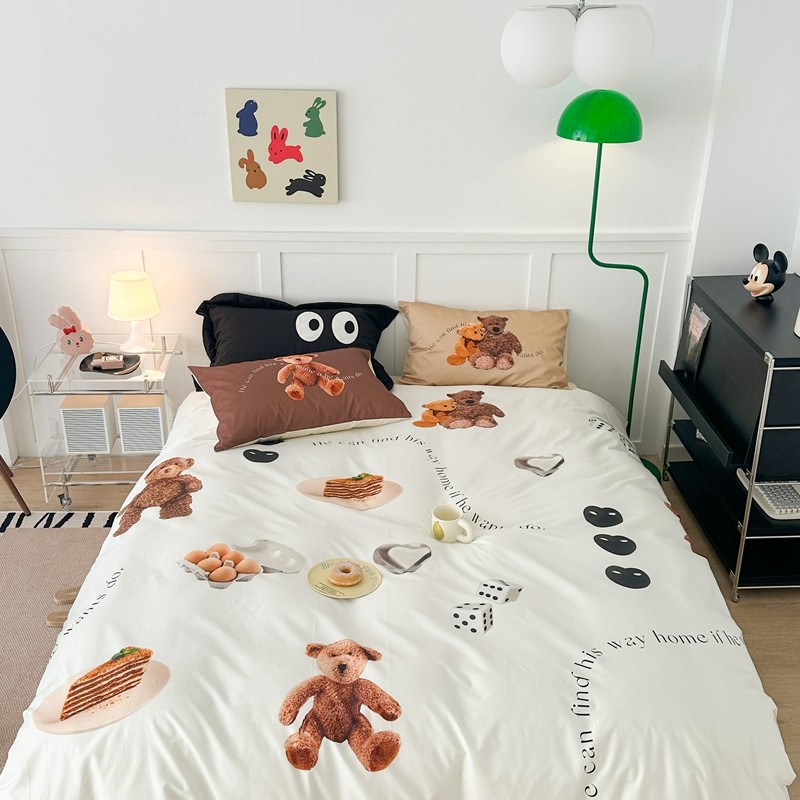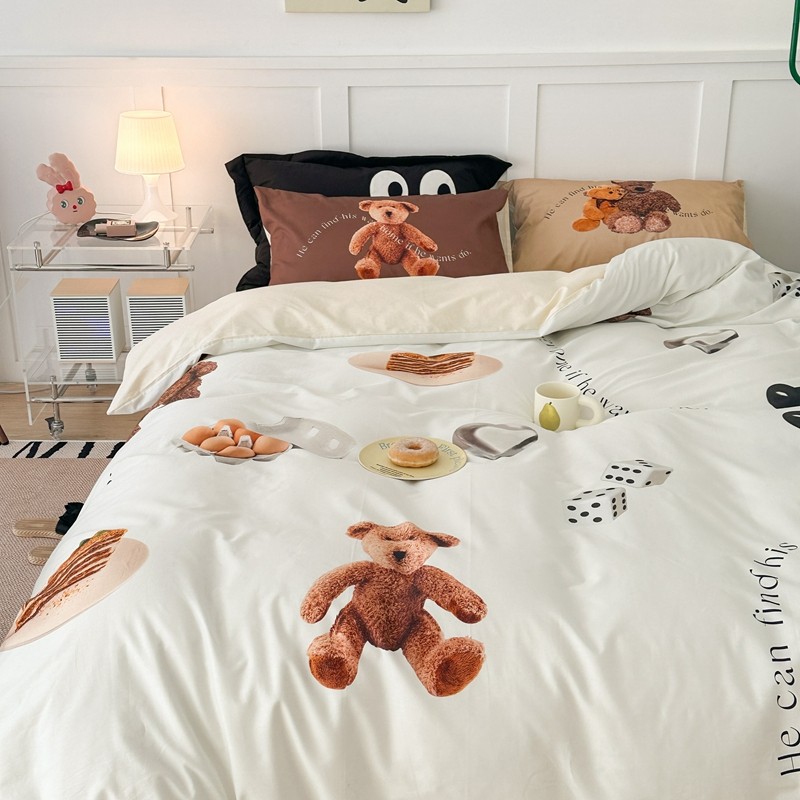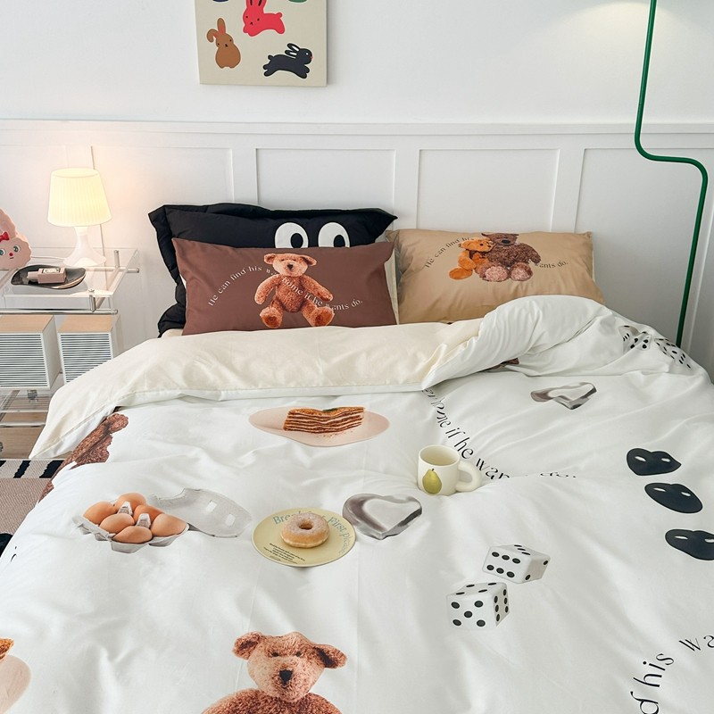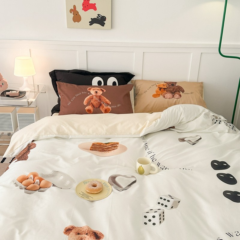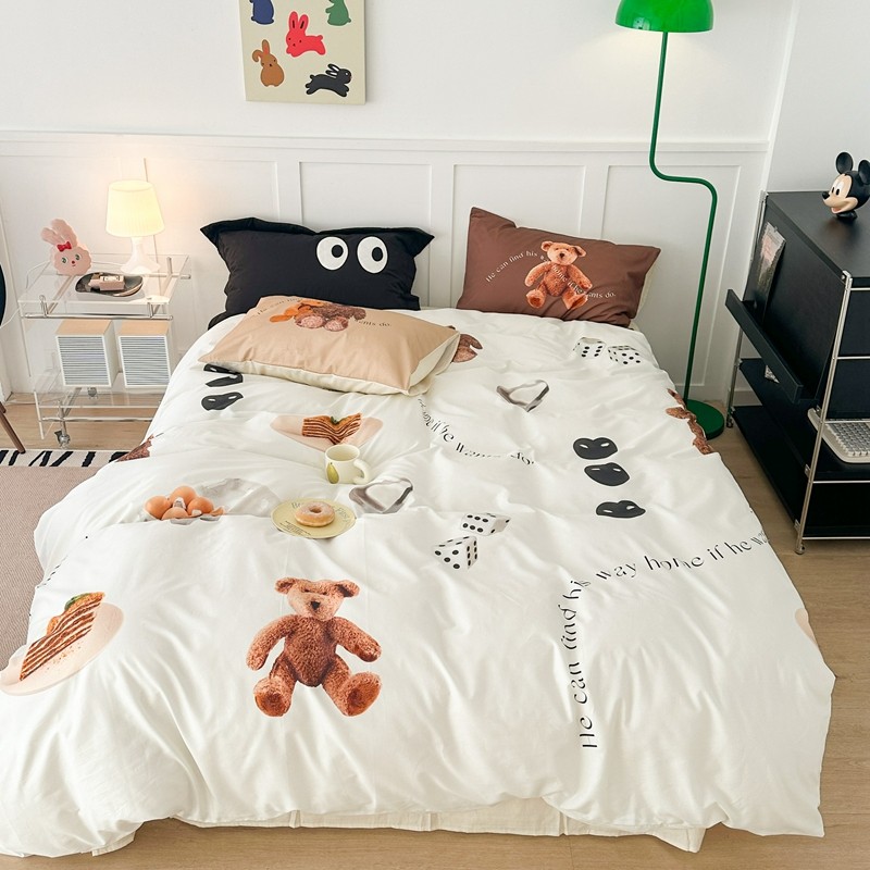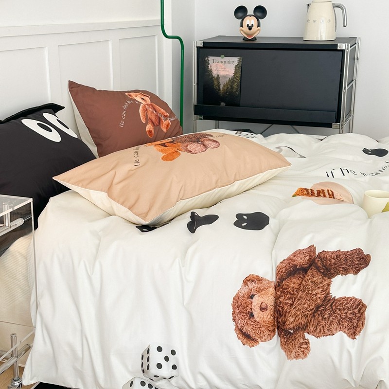 (总)昔可 2023新款学生季卡通普通款四件套,彩色气球熊,彩条恐龙,憨憨熊,花蜜小兔,蘑菇兔,圈圈草莓,蔬菜小兔,郁金香小萌狗